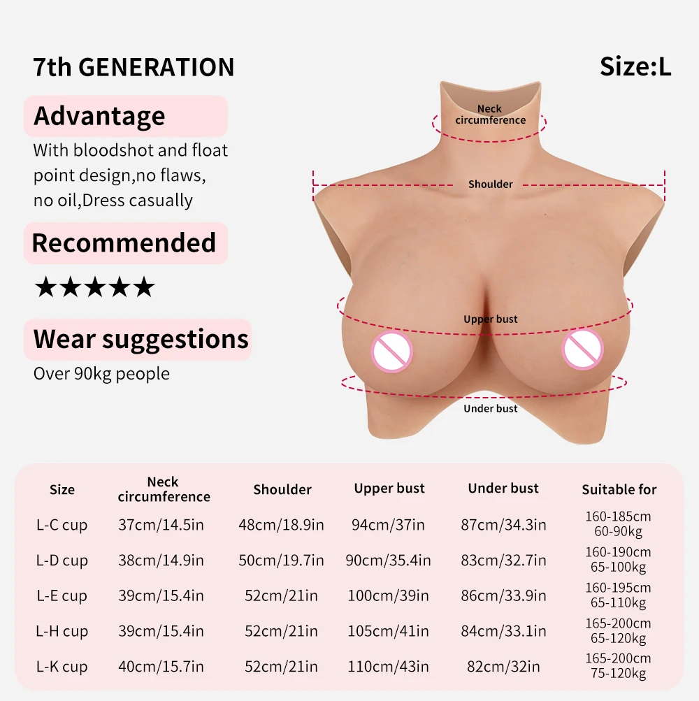 Силиконовые формы груди, предназначенные для мужчин, которые хотят быть женщинами, трансвеститов, трансгендеров, трансвеститов, косплея или просто для развлечения. Также для женщин после мастэктомии, чтобы восстановить хорошую форму тела