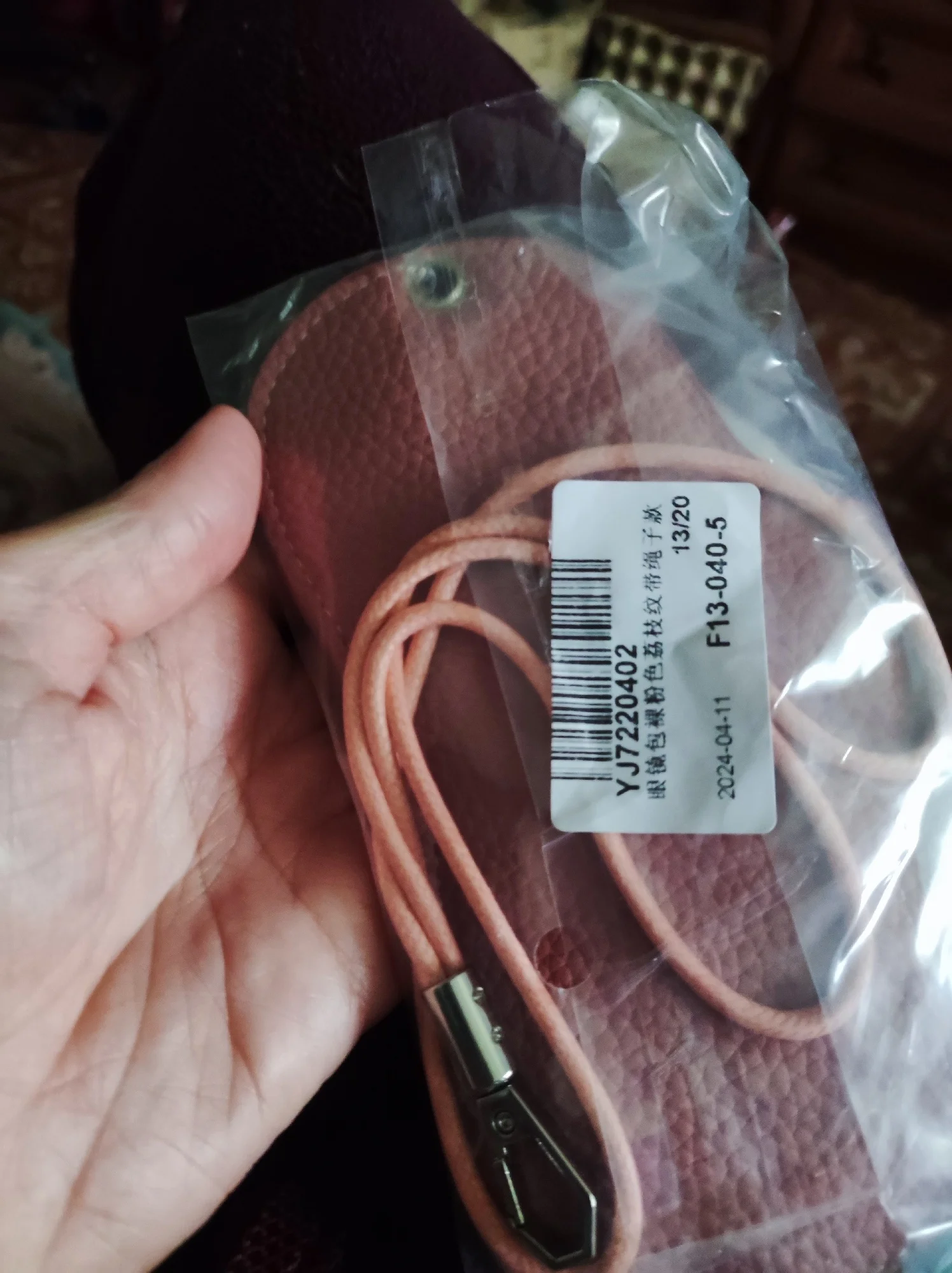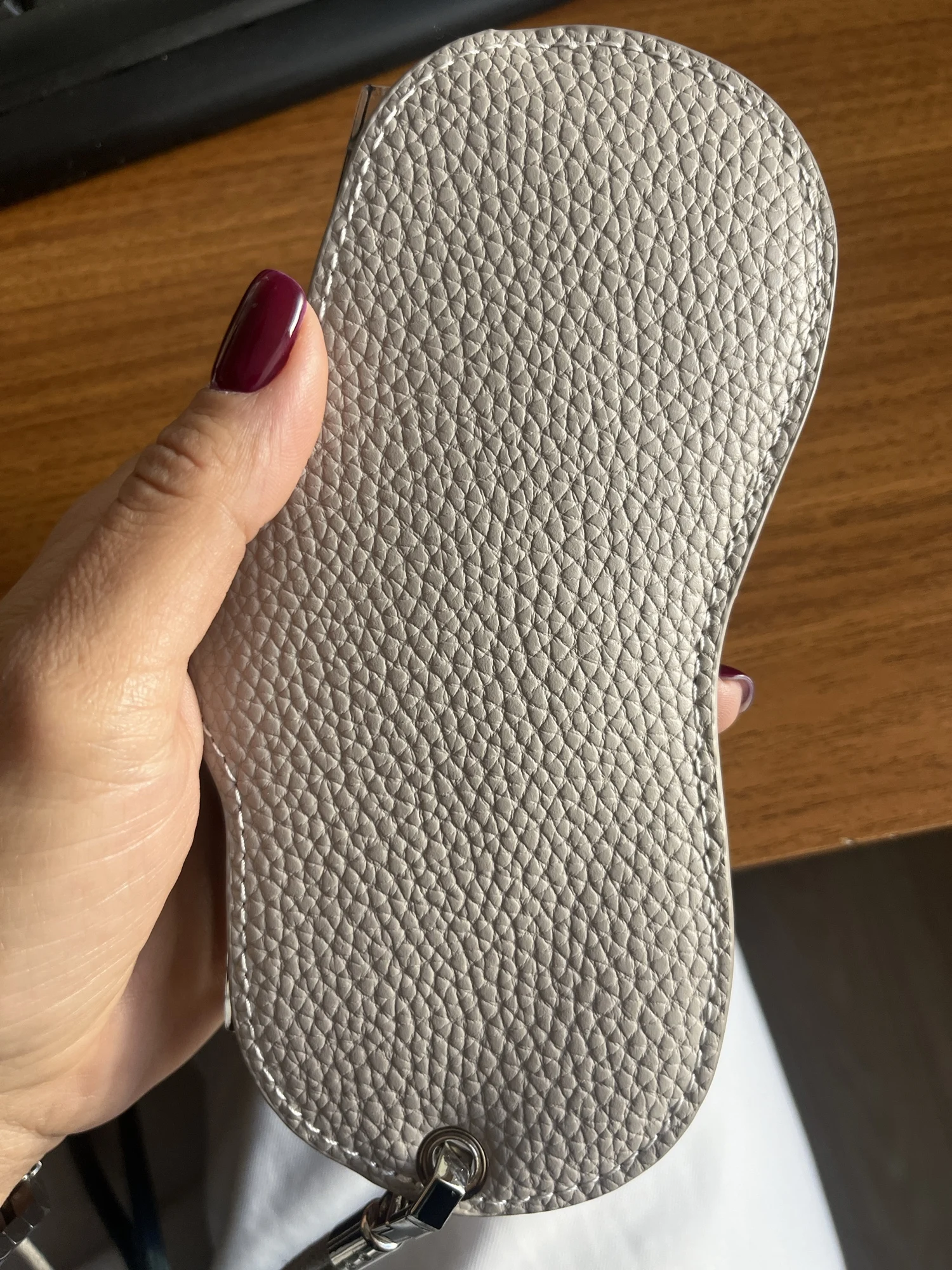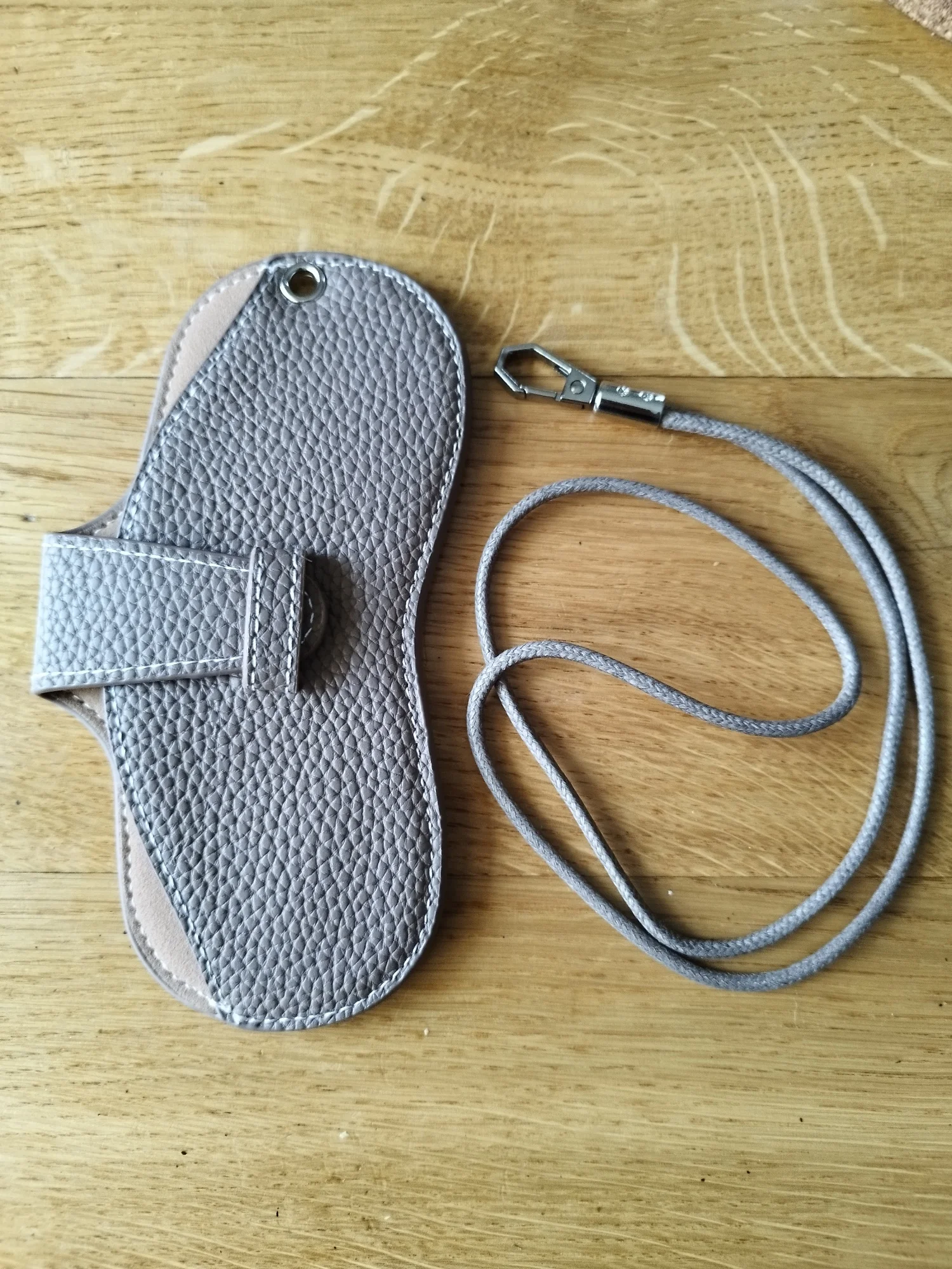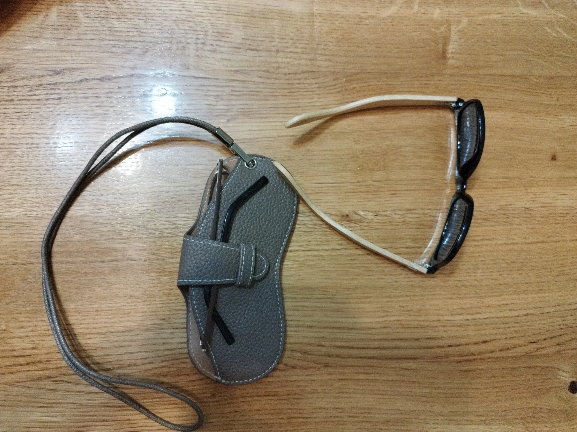 супер вещица. цвет совпадает. длина что надо. прошито аккуратно. очки с линзами побольше еще не пыталась уместить, не знаю войдут ли. единственное, была проблема вдеть шнурок в это маленькое отверстие. карабином поцарапала кожу, иначе не проходило никак.