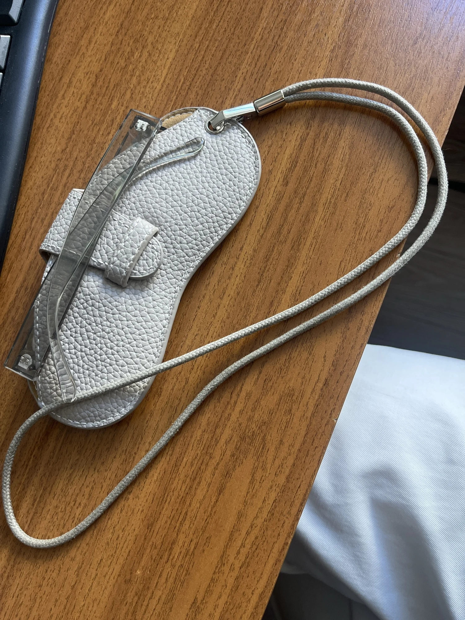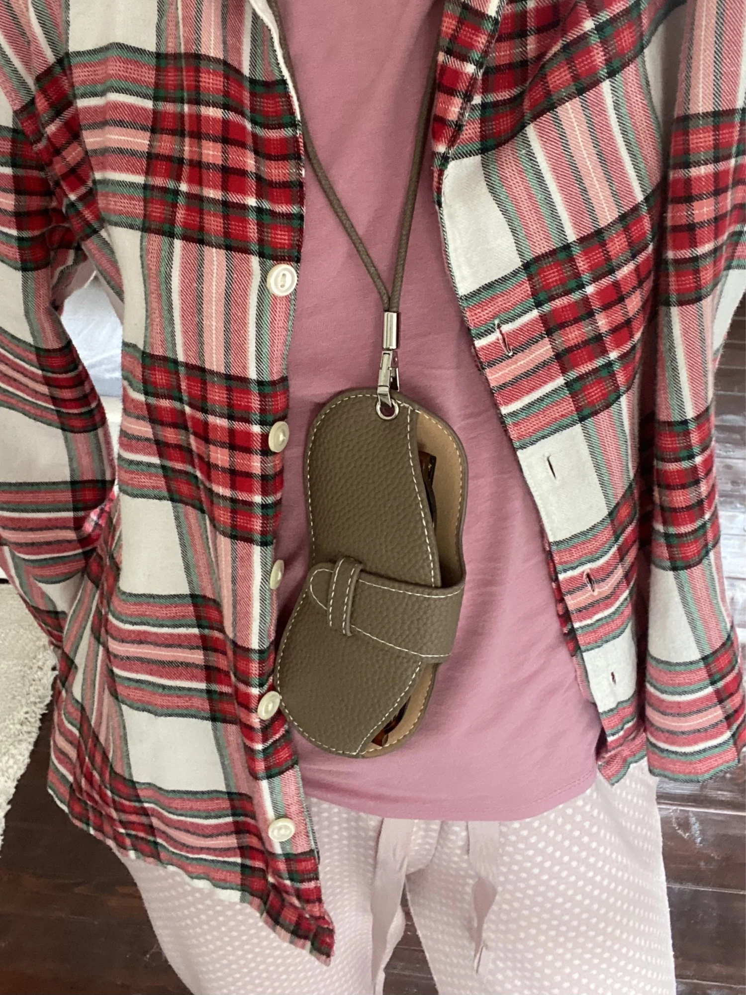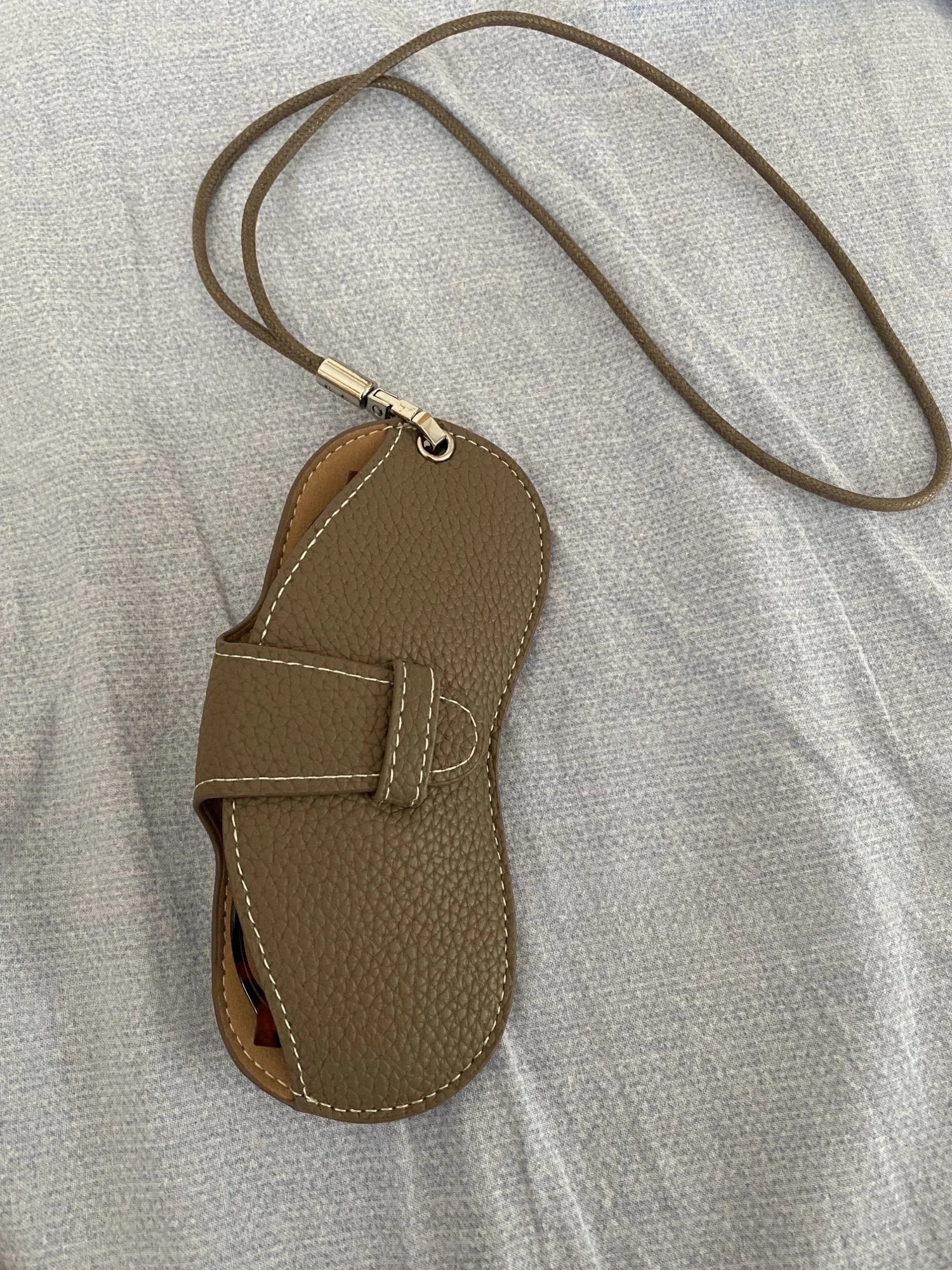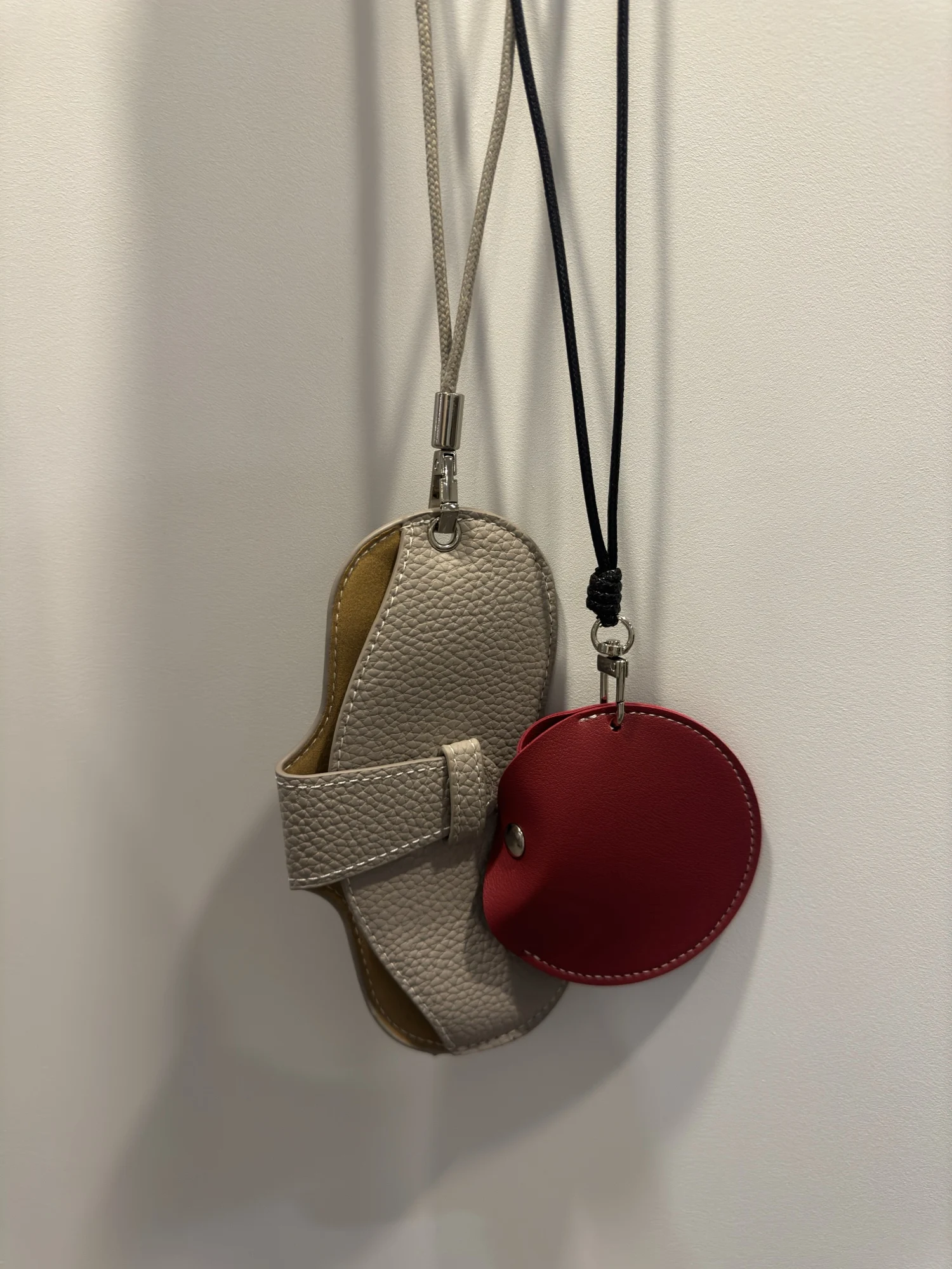 супер вещица. цвет совпадает. длина что надо. прошито аккуратно. очки с линзами побольше еще не пыталась уместить, не знаю войдут ли. единственное, была проблема вдеть шнурок в это маленькое отверстие. карабином поцарапала кожу, иначе не проходило никак.