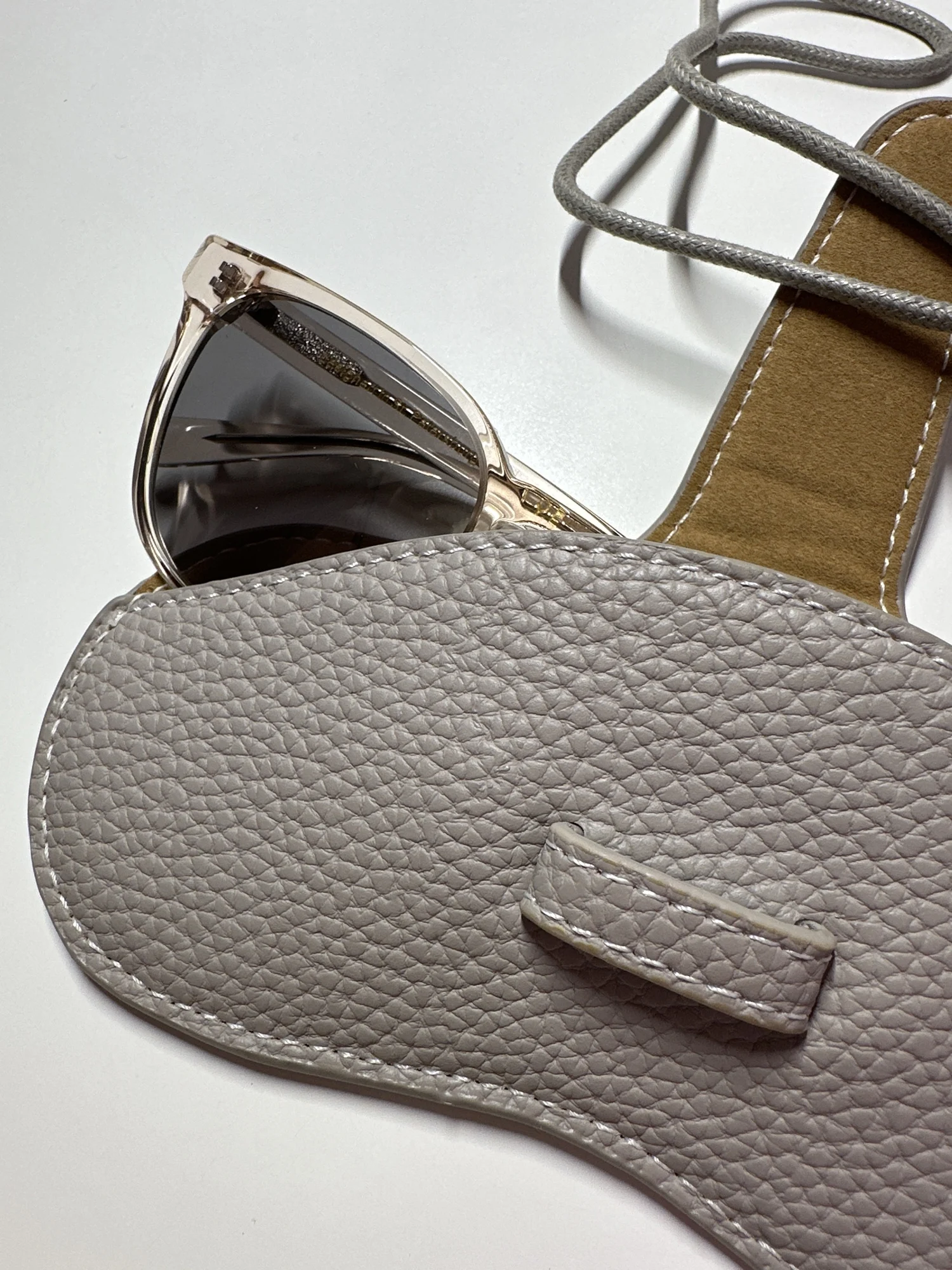 шикарный очешник, выполнен очень качественно, текстура кожи зернистая, смотрится натурально, однозначно рекомендую. доставка была очень быстрая в москву, меньше 10 дней. заказала еще черный в подарок и себе)