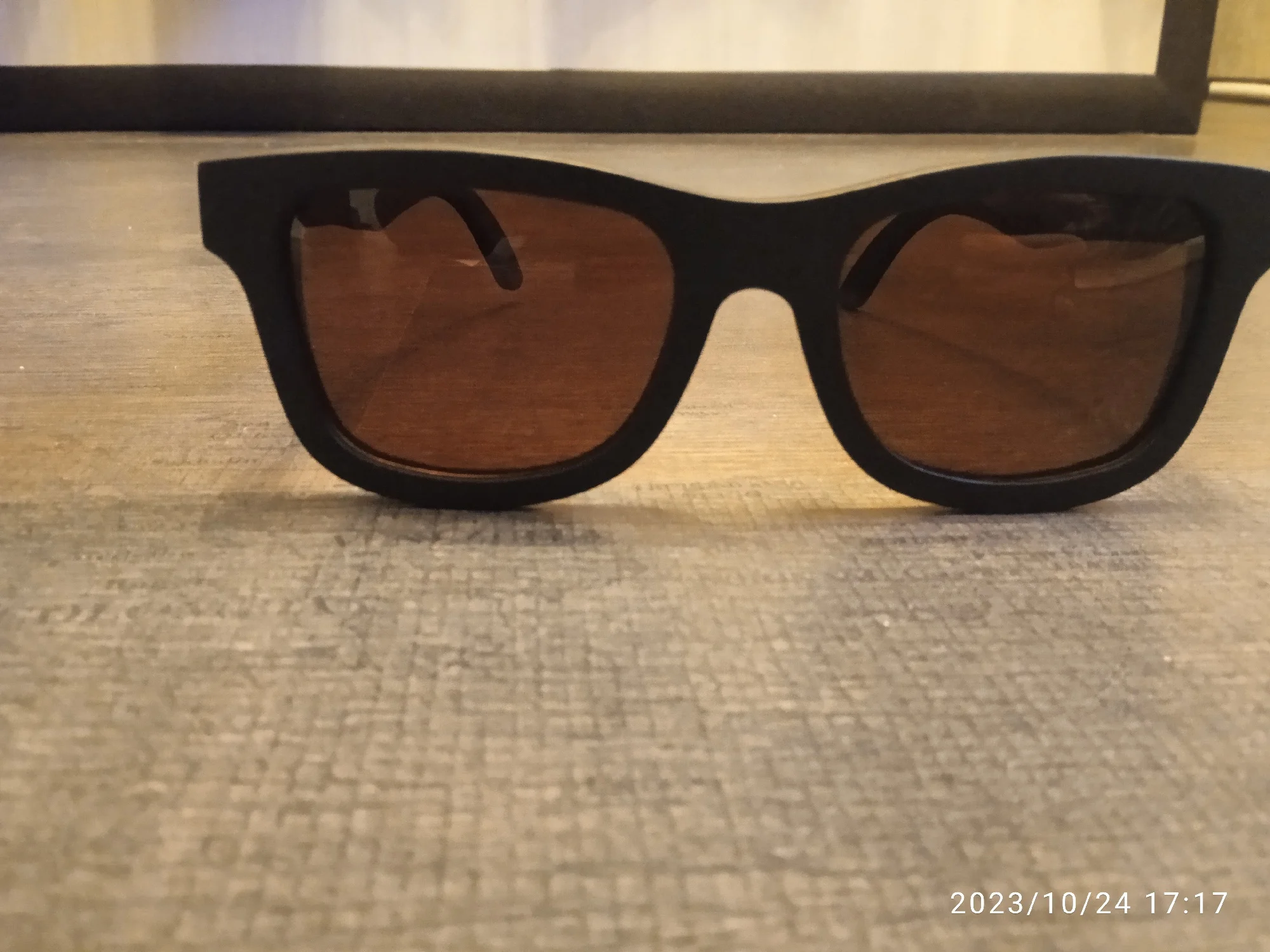 Очки полностью соответствуют описанию, только вот в жизни выглядит так, как будто это пластик со структурой дерева, так что, конечно, деревянные очки не заменит :( Но по качеству никаких замечаний нет, продавец всё честно показал на своих фото, просто не думала, что будет так заметно. Стекло - пластик. Очки аккуратные, сидят хорошо, удобные, легкие. Правда, создается впечатление, что платишь больше за упаковку :)) К очкам прилагаются: добротный бамбуковый футляр, мешочек для хранения, салфеточка для чистки и даже маленькая отвертка! Так вот… Еще немного пожалела, что взяла классические черные, нужно было коричневые или зеркальные стекла, чтобы подчеркнуть оправу, эти смотрятся скучновато. Для женского лица мне размер показался отличным, если только вы не любители маленьких очков. В целом, неплохие очки, но явно для молодежи, учитывая качество материалов.