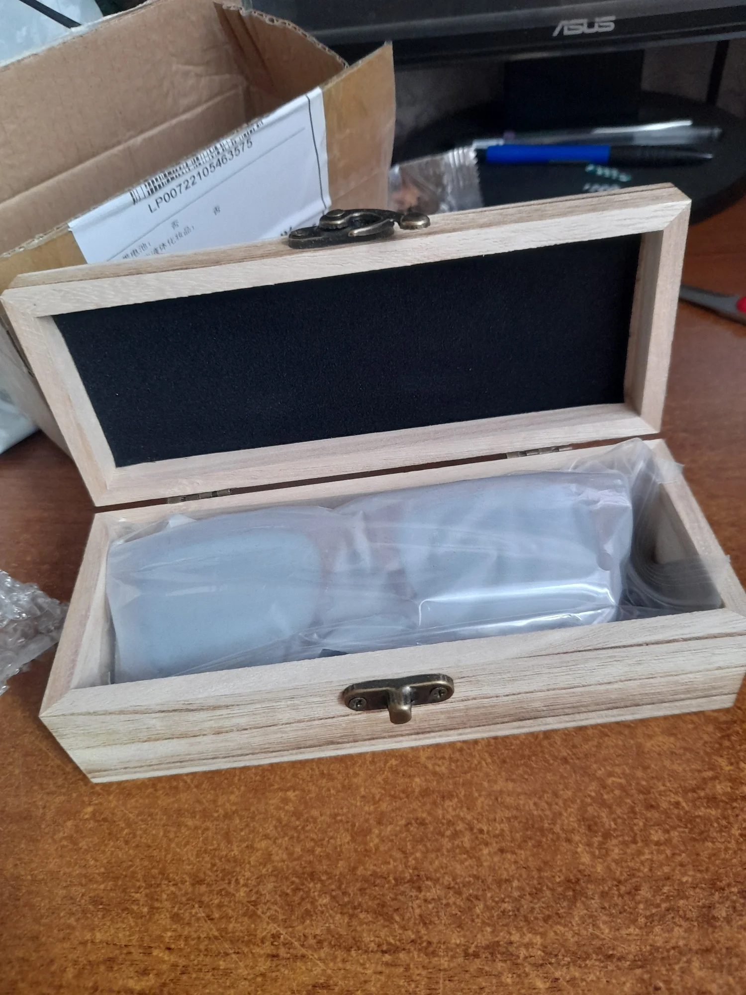Пришли в общей посылке за 14 дней в Калининград. Очки нереально крутые.🎉🎉🎉👍🏻🔥 Действительно polaroid, я проверила по карточке соответствия. В комплекте деревянный сундучок, чехол тряпочный, салфетка для протирки стёкол. Положили мини отверточку - на одном конце крестик, на другом лопатка. Пришли очки того цвета, которого и заказывала. Стекла пластиковые. Качество - просто огонь!!! 🔥🔥🔥👍🏻‼️Я очень довольна. Спасибо большое продавцу за отличный товар! Рекомендую всем к покупке на 100%.