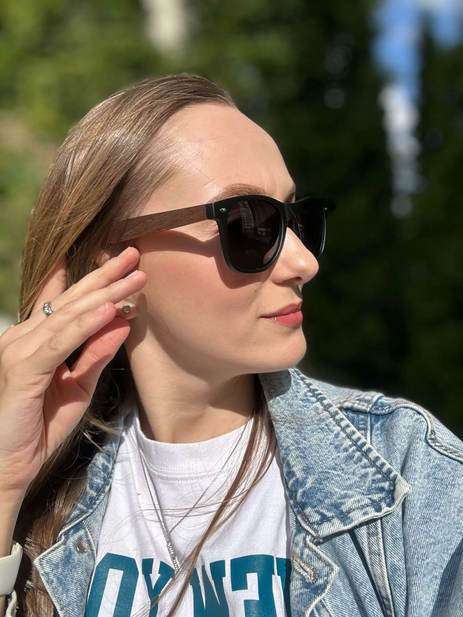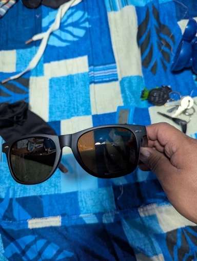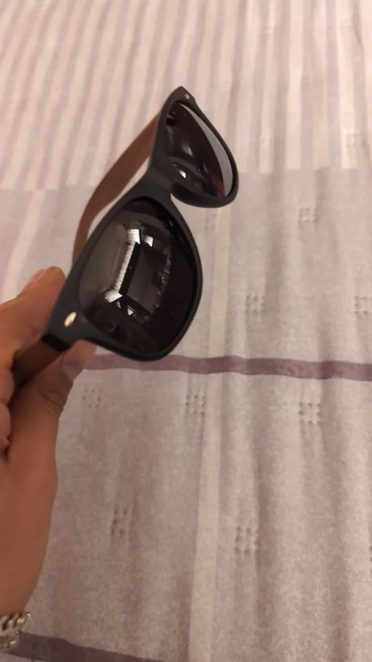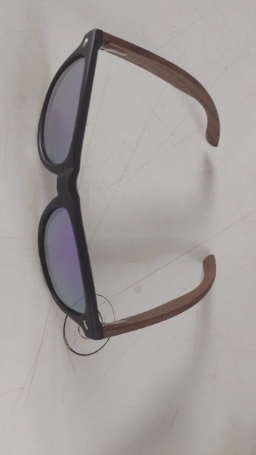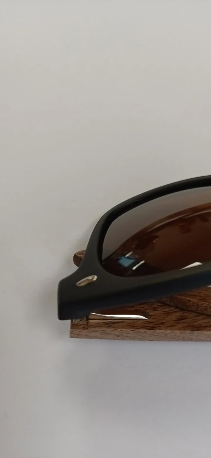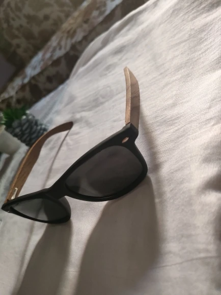 Эти солнцезащитные очки имеют классический дизайн Wayfarer, объединяющий матово-черную переднюю часть и ушечки из имитации дерева, что придает им современный и элегантный вид. Структура кажется прочной и легкой, идеально подходит для ежедневного использования. Петли кажутся прочными, а передние металлические винты добавляют привлекательную визуальную деталь. Темные линзы обеспечивают хорошую защиту от солнечных лучей, хотя не подтверждено, что они поляризованные. Они хорошо сидят на лице и не оказывают слишком сильного давления на скулы. Идеально подходит для тех, кто ищет повседневный стиль с натуральным оттенком. Хотя они не от известного бренда, они выполняют свою функцию благодаря хорошему дизайну и приличным материалам. Рекомендуется для тех, кто ценит эстетику и комфорт по хорошей цене.