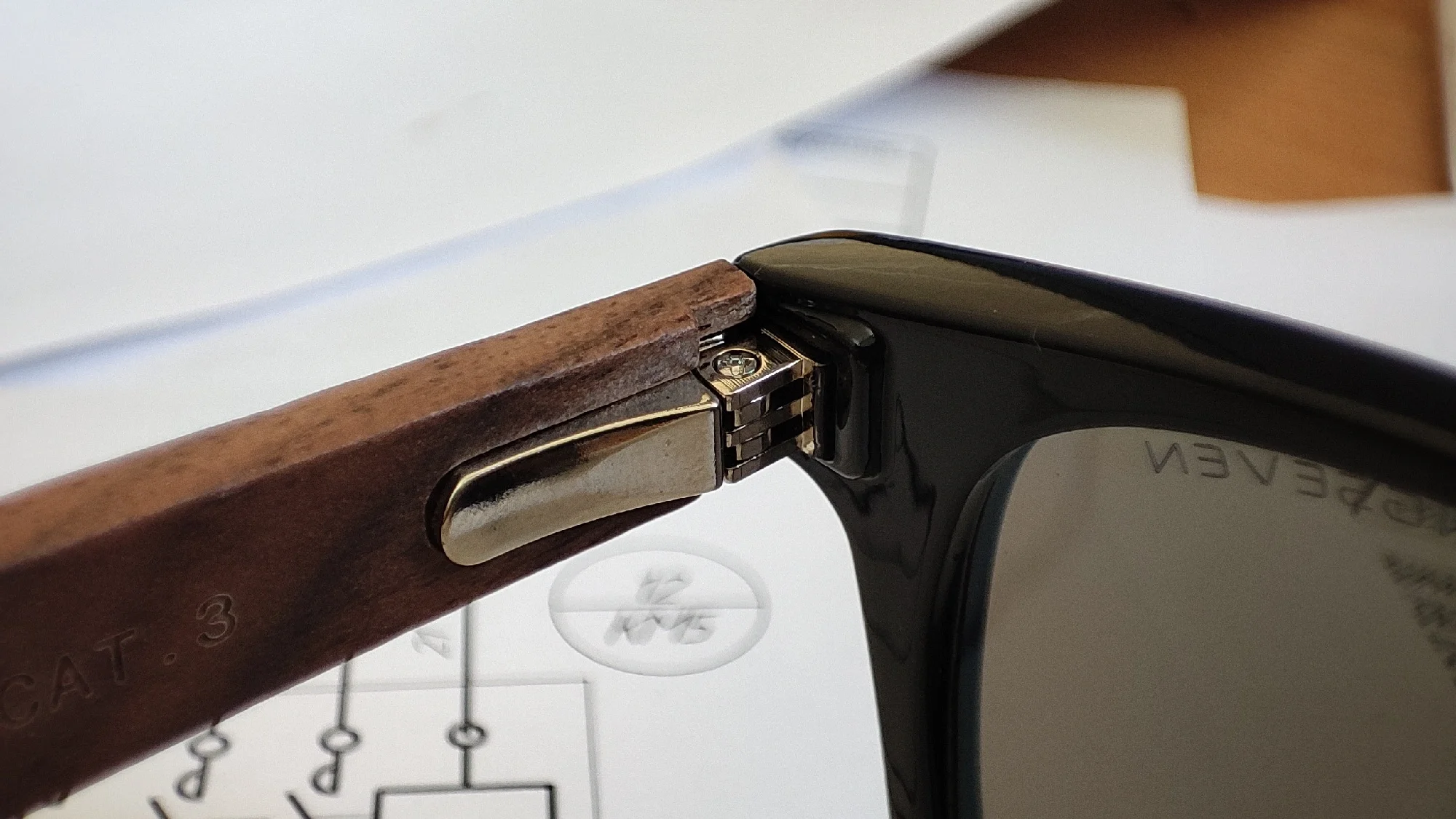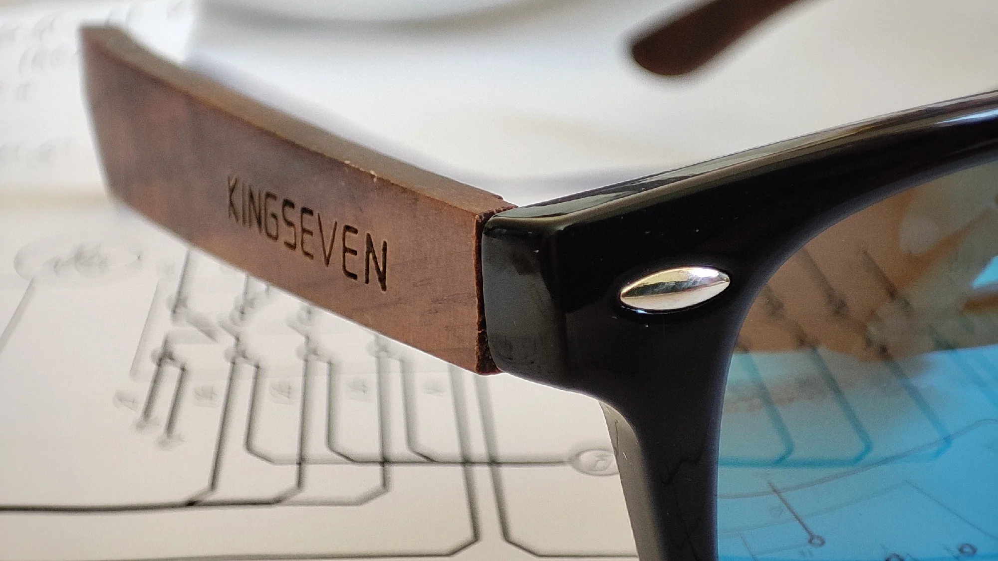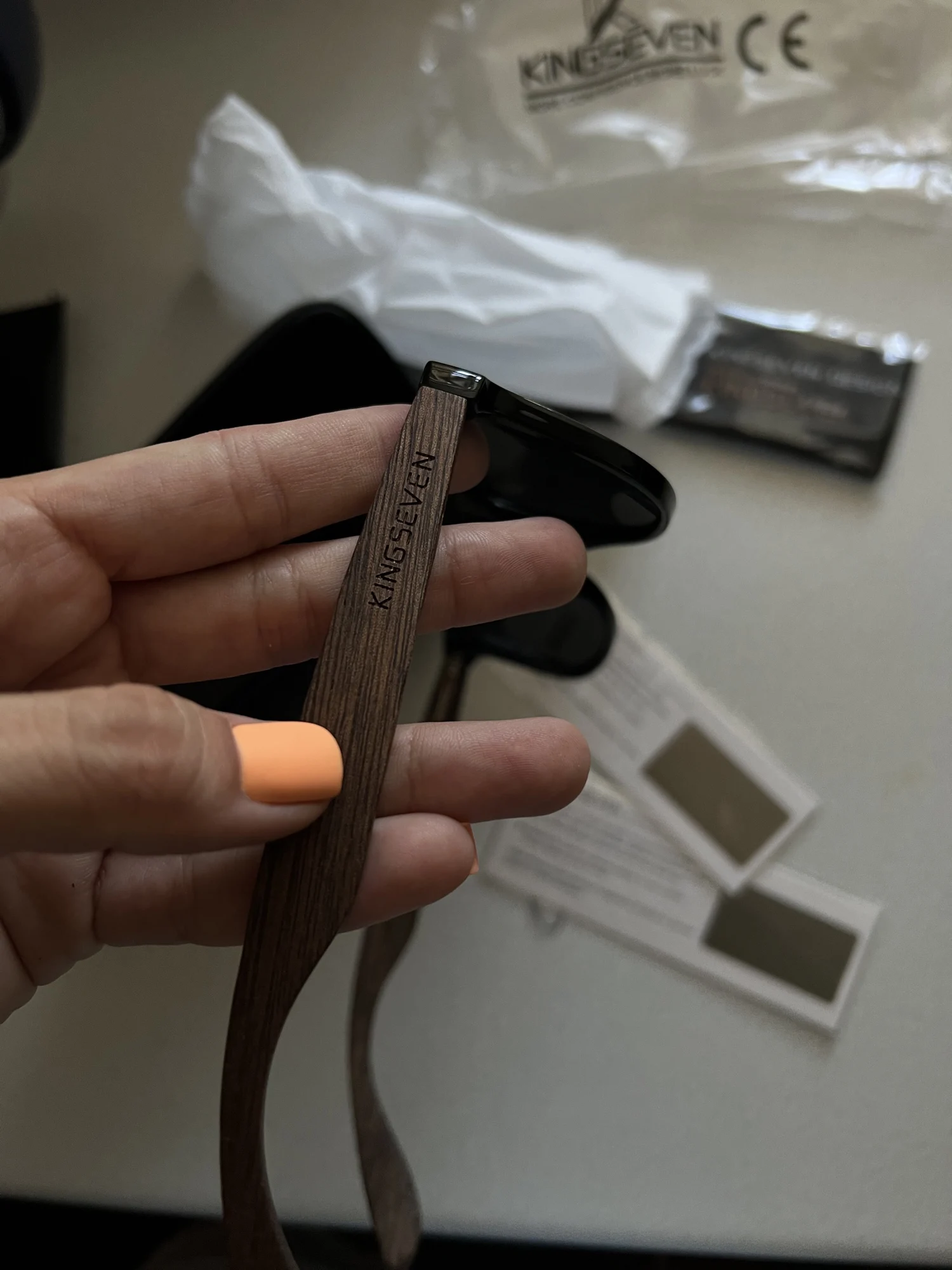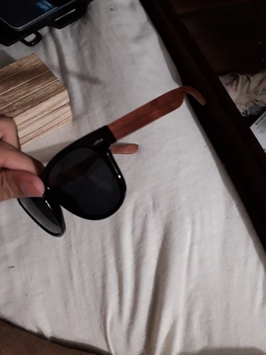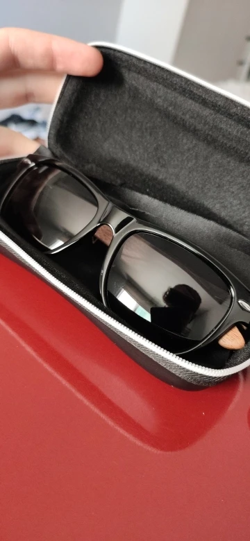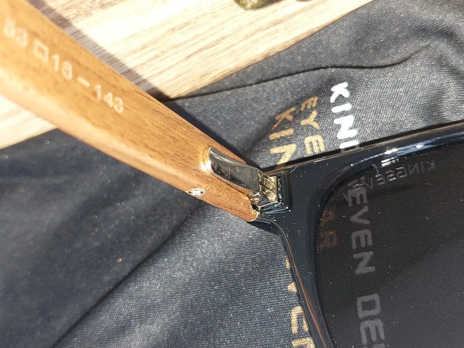 Качество очков нормальное. На среднее лицо, на женском смотрятся нормально. По размеру оправа меньше чем у аналогичной модели, выполненной полностью из дерева. В комплекте к очкам: деревянная коробка с замком, тканевый мешочек, салфетка, отвертка, тест на поляризацию, и упаковка. Пришли за 2 недели в пункт выдачи.