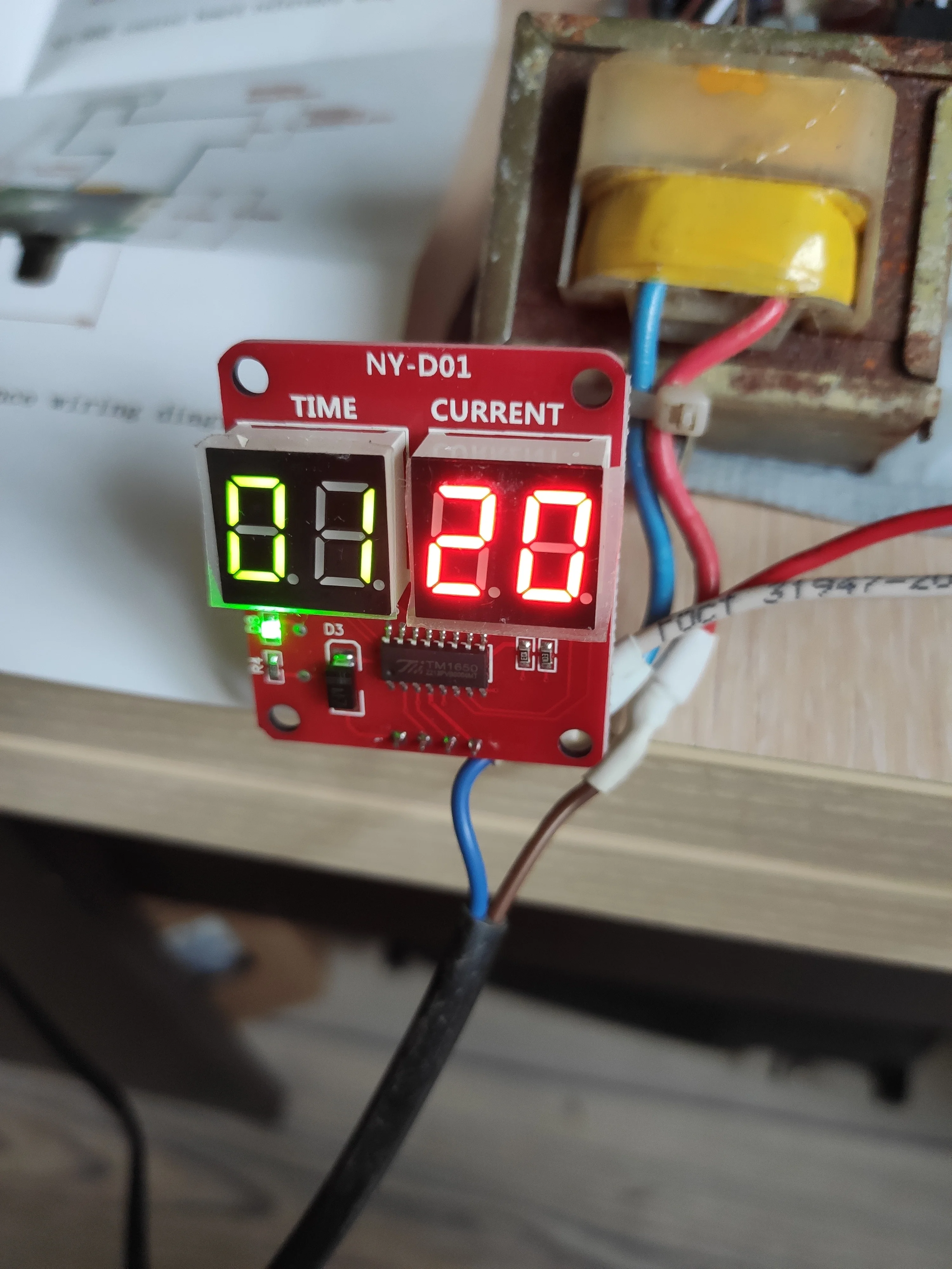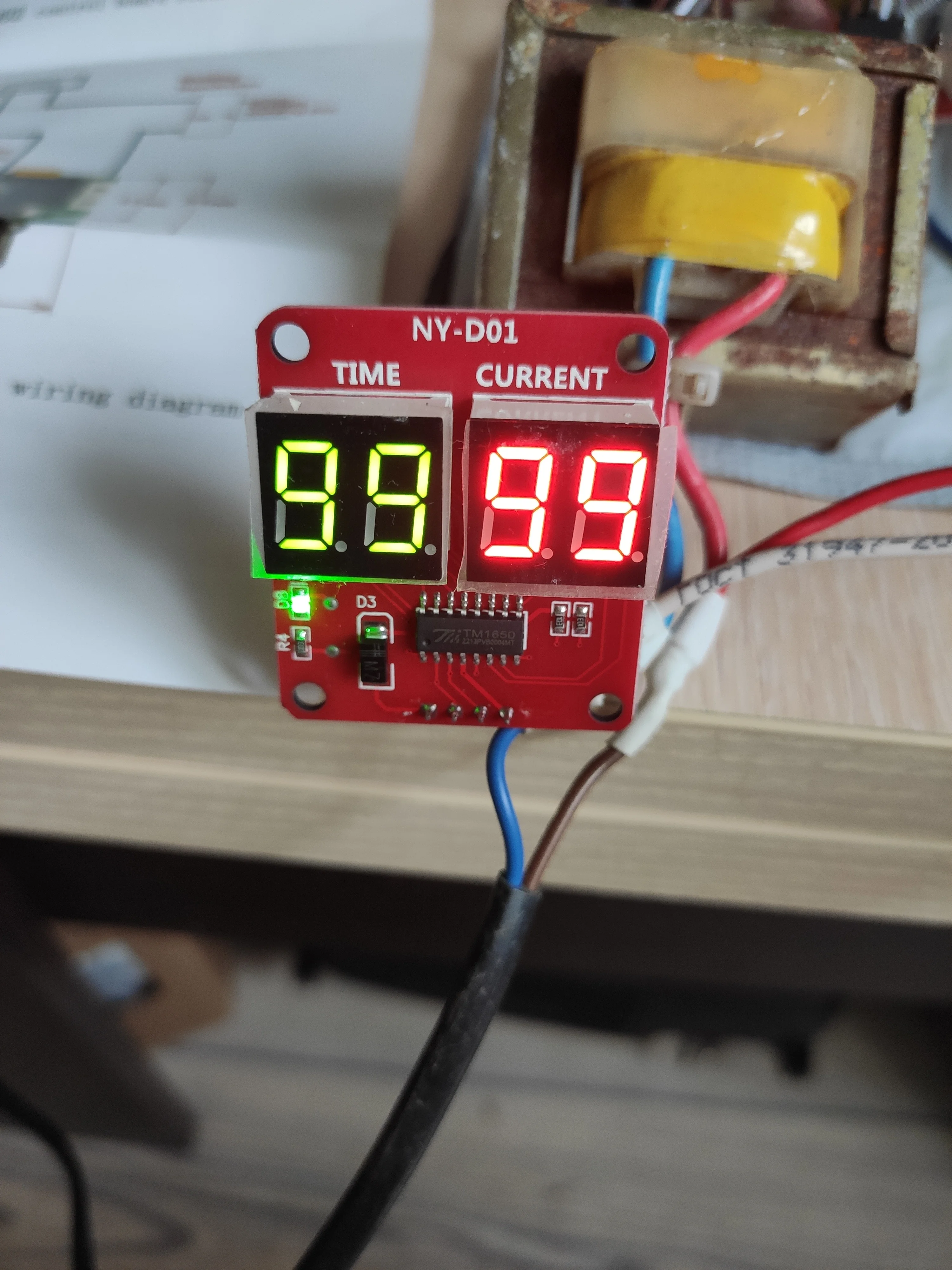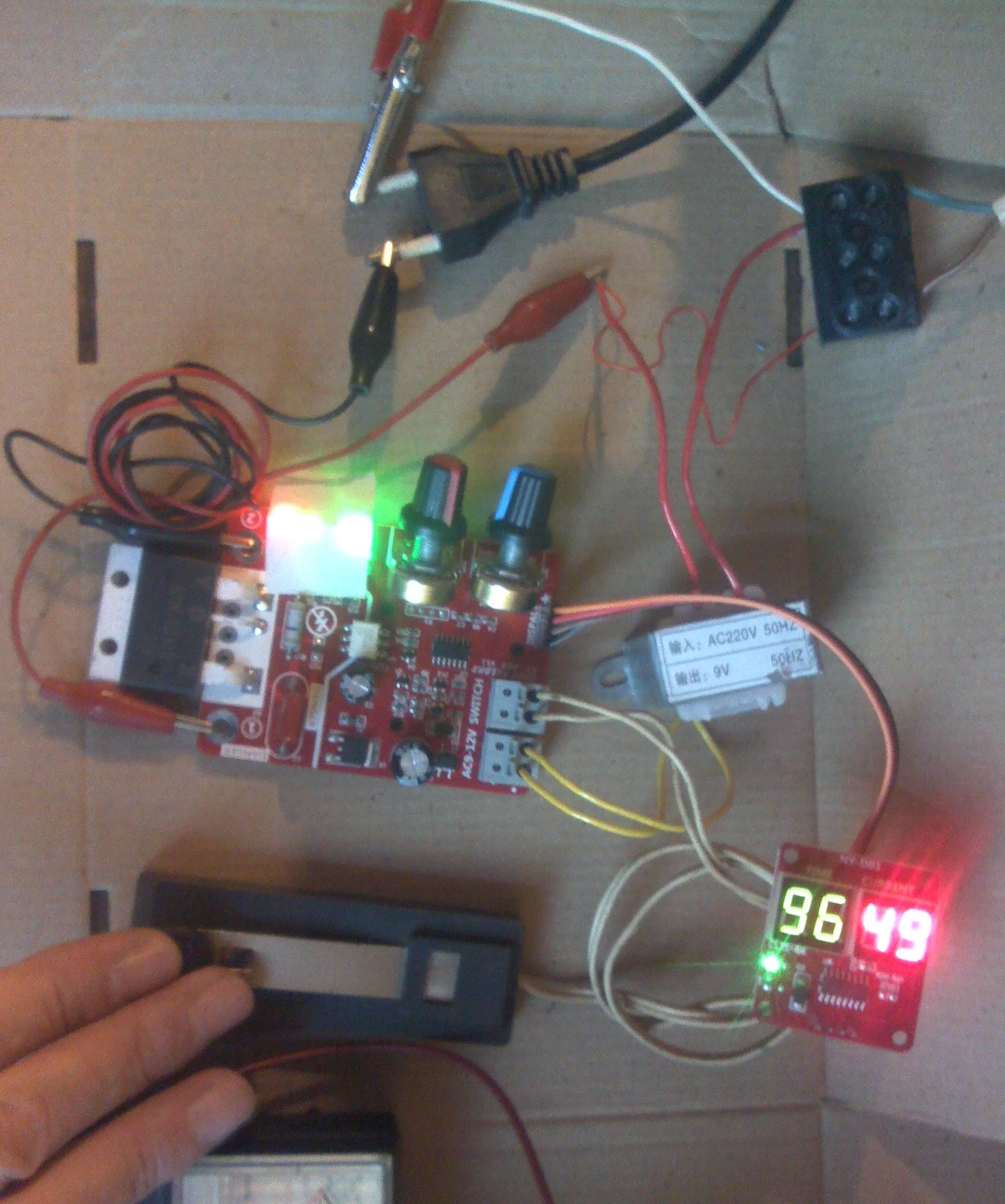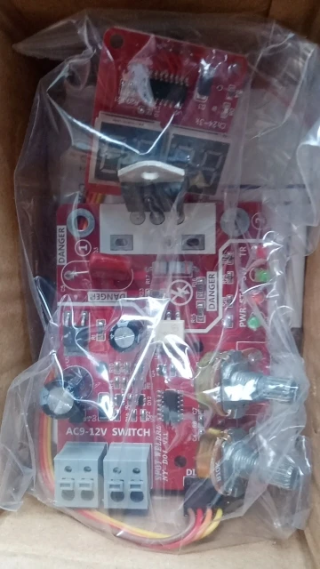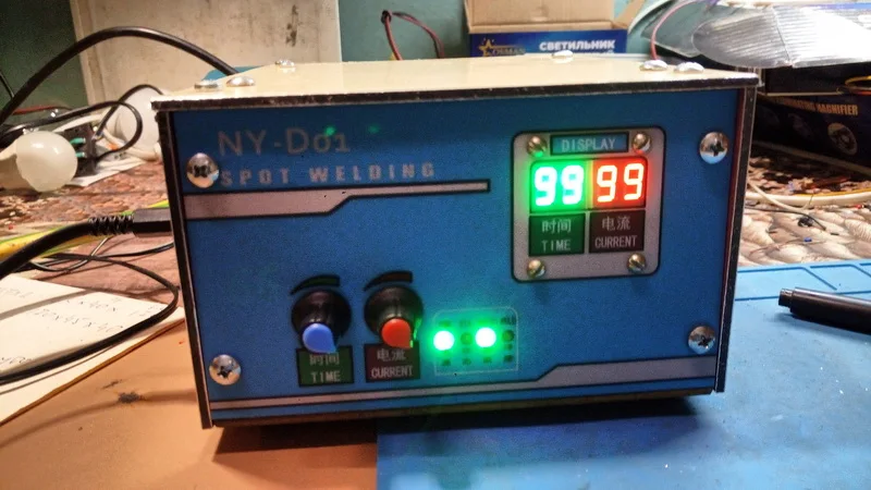 Брал плату с семистором на 100А вместе с трансом на 9В, доставка меньше 2-х недель и не на почту, а в постамат, хотя специально не указывал. Паять было лень, но любопытство пересилило и на скорую руку собрал на "крокодилах", в качестве нагрузки настольная лампа 100Вт. Регулировка переменниками, вот цифры на индикаторах: ВРЕМЯ ИМПУЛЬСА от 01 до 99 ( что за единицы измерения, не знаю, но лампу видно с 15, а на 99 это 2-3сек.) МОЩНОСТЬ (или ТОК) от 20 до 99 (вероятно, процентов мощности) - на 20 лампа ещё не светится, на 99 в полный накал. Транс на 9В, обмотки: первичка 2,69кОм, вторичка 12,7Ом; На ФОТО: 1) Дежурный режим (на плате горят 2 зелёных светодиода, прикрыл бумажкой, слепят камеру) 2) Замыкание ключа (загорается ещё красный светодиод на плате) 3) Вспышка лампы (цвета изменились, тени в другую сторону) Вывод: всё рабочее, можно брать.ANDREY M. 30 июня 2022