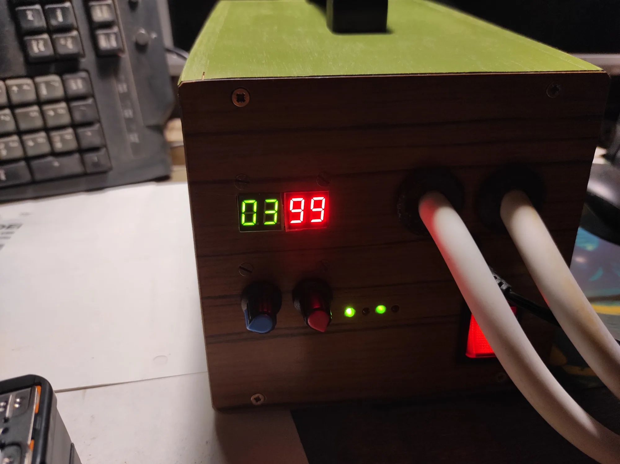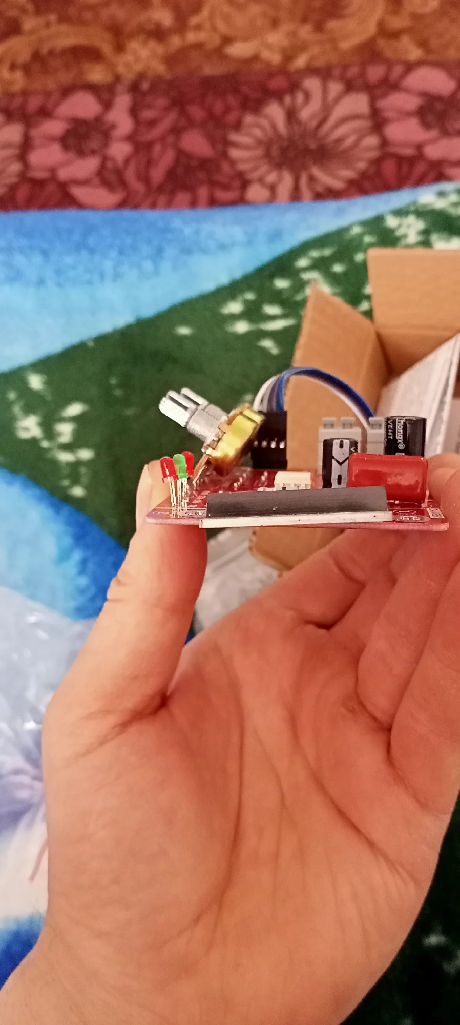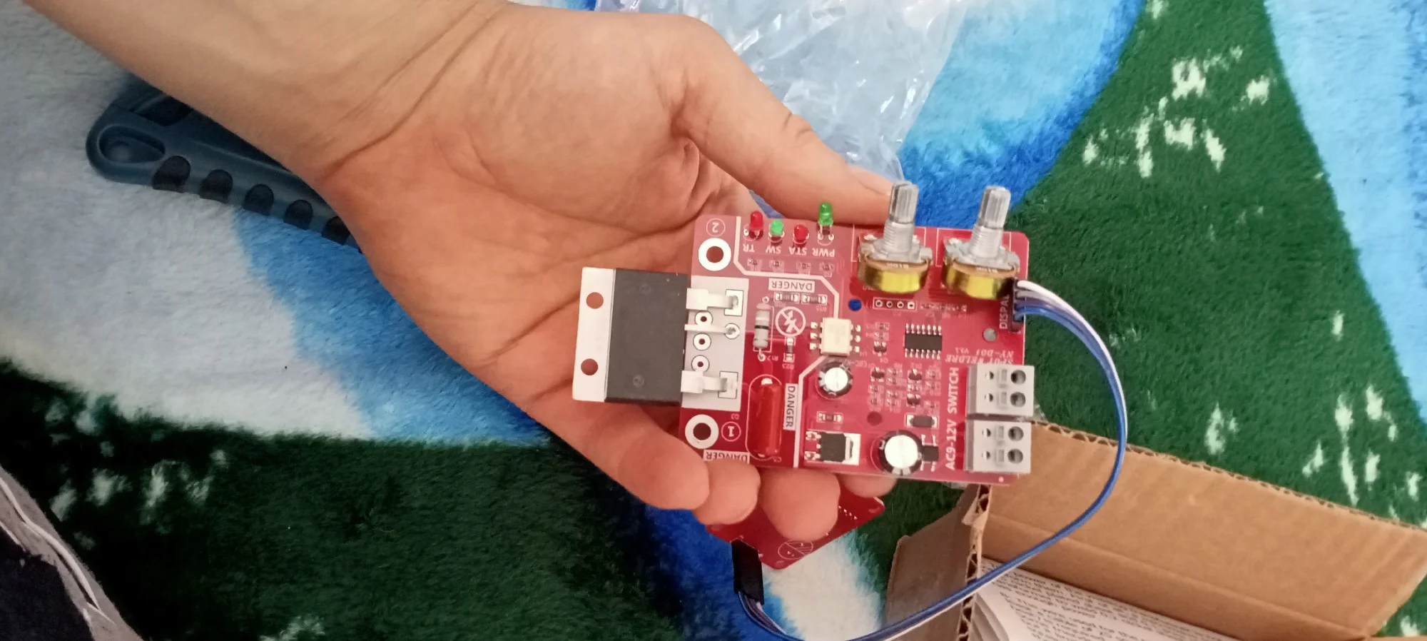 Брал плату с семистором на 100А вместе с трансом на 9В, доставка меньше 2-х недель и не на почту, а в постамат, хотя специально не указывал. Паять было лень, но любопытство пересилило и на скорую руку собрал на "крокодилах", в качестве нагрузки настольная лампа 100Вт. Регулировка переменниками, вот цифры на индикаторах: ВРЕМЯ ИМПУЛЬСА от 01 до 99 ( что за единицы измерения, не знаю, но лампу видно с 15, а на 99 это 2-3сек.) МОЩНОСТЬ (или ТОК) от 20 до 99 (вероятно, процентов мощности) - на 20 лампа ещё не светится, на 99 в полный накал. Транс на 9В, обмотки: первичка 2,69кОм, вторичка 12,7Ом; На ФОТО: 1) Дежурный режим (на плате горят 2 зелёных светодиода, прикрыл бумажкой, слепят камеру) 2) Замыкание ключа (загорается ещё красный светодиод на плате) 3) Вспышка лампы (цвета изменились, тени в другую сторону) Вывод: всё рабочее, можно брать.ANDREY M. 30 июня 2022