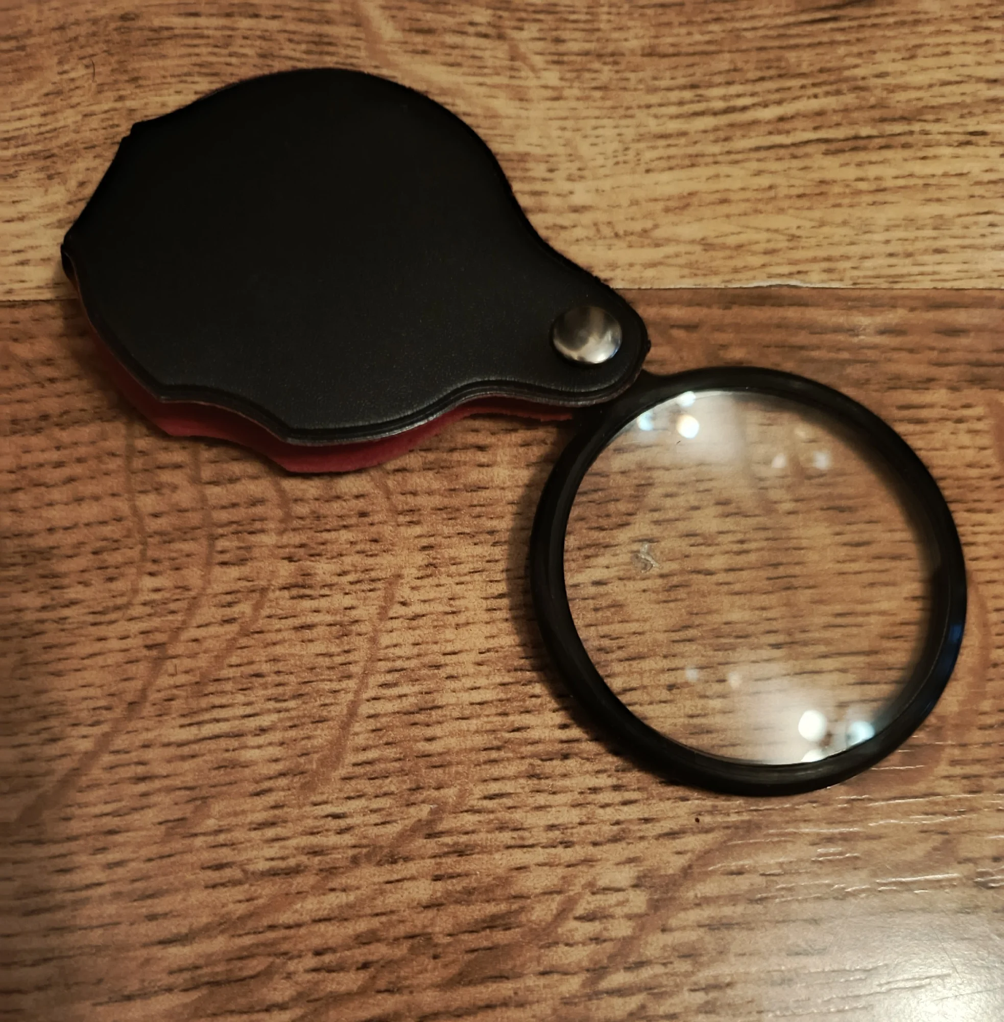Мне понравилось. Чехол ручка мягкий, стекло не толстое. Кратность небольшая, но мелкий шрифт рассматривается отлично.