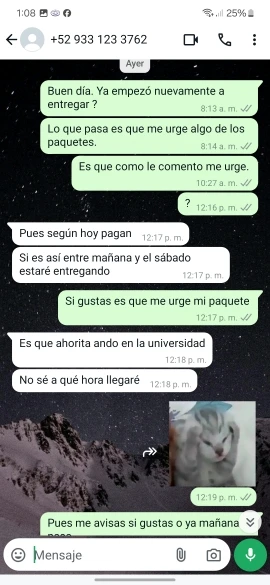 Моя посылка не прибыла ко мне домой, и приложение отмечает, что она доставлена. Однако они так и не доставили мой товар. И Ali express не возвращает деньги, потому что он запрашивает доказательства и отметки о доставке. Но пометив Экспресс-посылкой J & T, они сказали мне, что если я отметлю доставку, но неофициальную доставку, потому что тот, кто ее получил, находится в доме далеко от моего дома, и я не подписывал и не давал ине. Мои товары в соответствии с тем, что они мне сказали, находятся в доме, где они не хотят доставлять их мне. J & T express оставляет товары по этому адресу, и я уже ушел, и они ничего не дадут мне по этому адресу, пока J & T express не заплатит тем, кто доставляет по этому адресу, поскольку они не платит им. Я уже ходил 3 раза, и они не дают мне мои продукты, и нет ответов или решений с J & T express, отвращение к посылке. Что для покупок более $1000 также нужно посмотреть на этот адрес. Покупка, которую они не хотят мне давать, является покупкой более $600 и больше не открывает возврат средств. И никто не дал мне решение