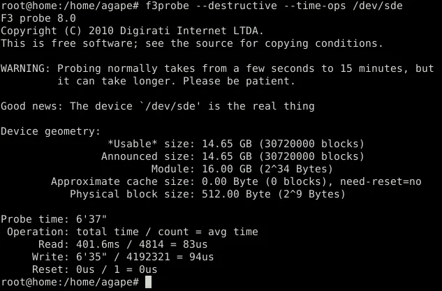 На металлическом корпусе нет ни бита информации о флэшке! Скорость записи очень медленная! 8 Мб/сек! Правда, размер мне попался честный, 16Гб, что равно реальных 14.63Гб. Эту флэшку я тестировал под Linux программой F3. Планирую использовать её для записи загрузочных образов, так что скорость записи не важна. Если в течение срока возможности добавления отзыва она сдохнет, непременно дополню отзыв!