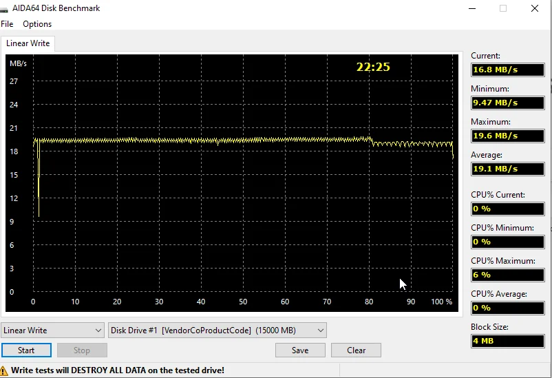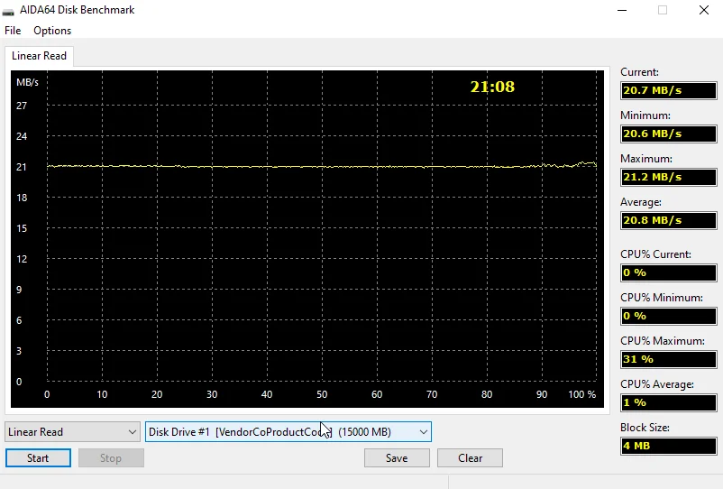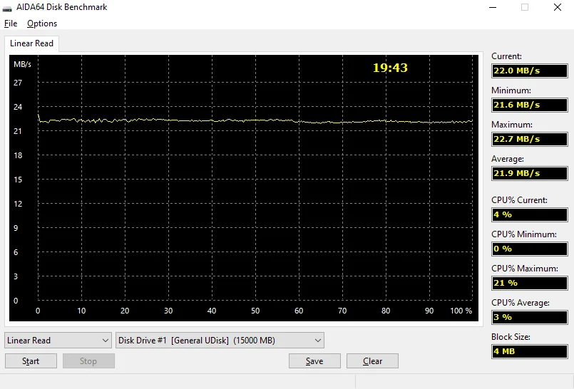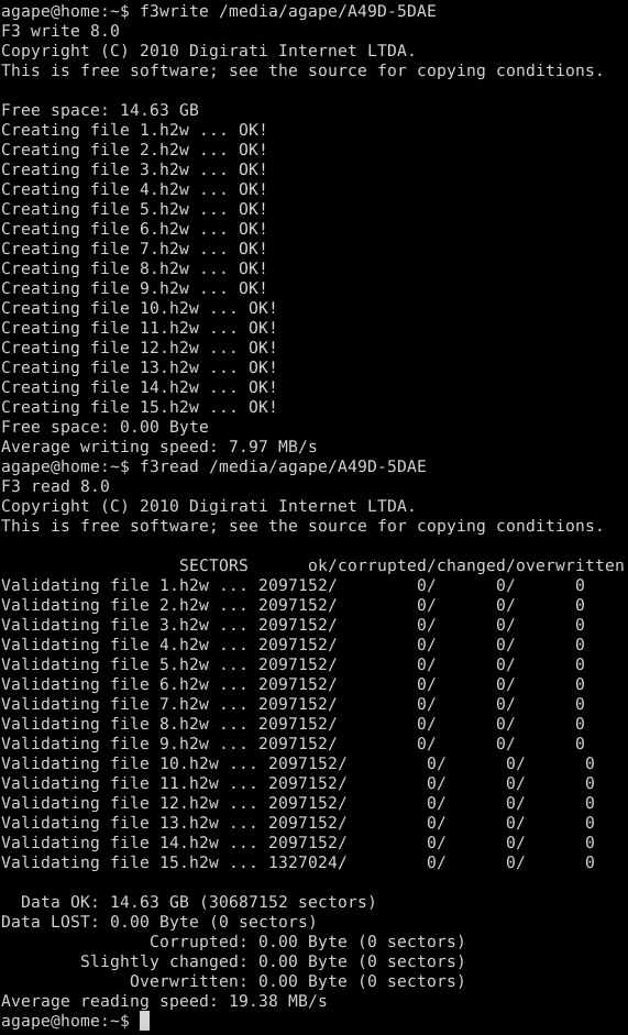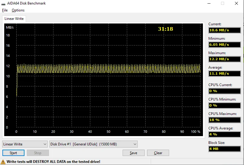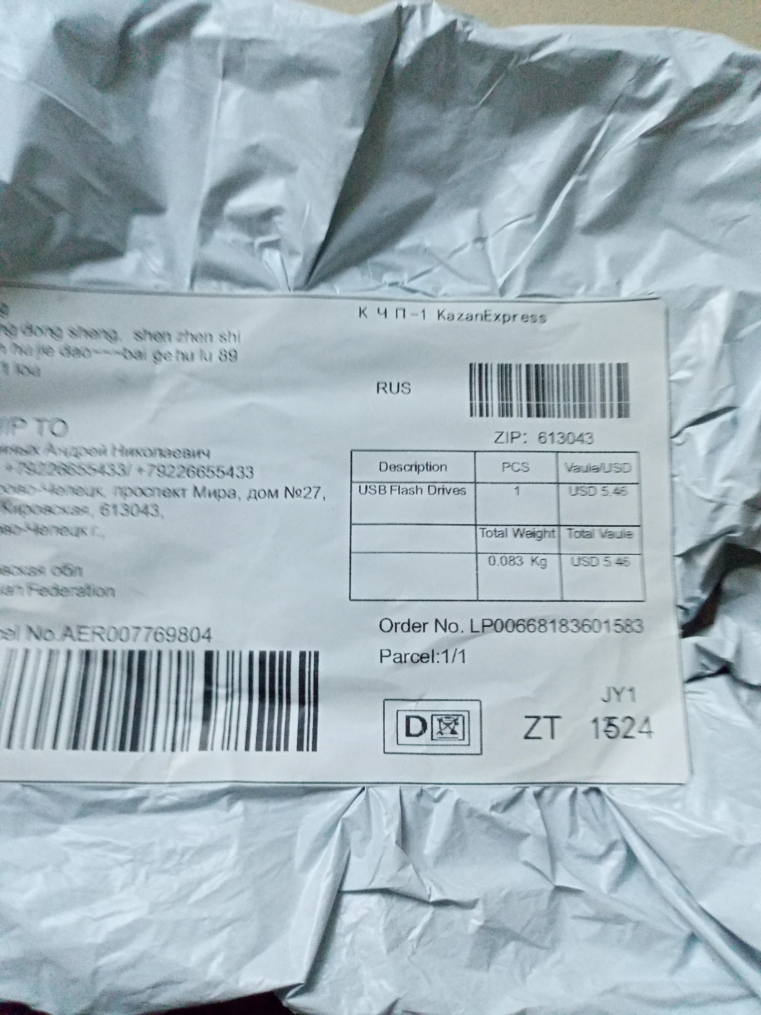 Флешка честная на 14,6 Гб (14983 Mbyte). Скорость записи 18.1 Mbyte/s. В процессе записи блоками по 1 Гб не падала ниже 17.5 Mbyte/s. Полностью записалась за 13:45 мин. Корпус увесистый, металлический (10-11 грамм вместе с кольцом). Продавец положил подарок - брелочек в виде панды. За что ему отдельное спасибо. Флешку почему-то задержали на таможне и затребовали документы подтверждающее покупку. Из-за этого доставка немного задержалась.Vladimir F. 13 февраля 2024