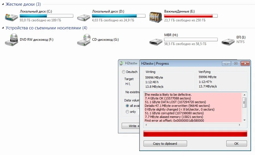 Такой паршивой флешки я ещё не встречал. Кроме того что всего 16 Гб на ней, еще и битые все. Писать на нее равносильно в корзину сразу удалить.VYACHESLAV K. 18 февраля 2025