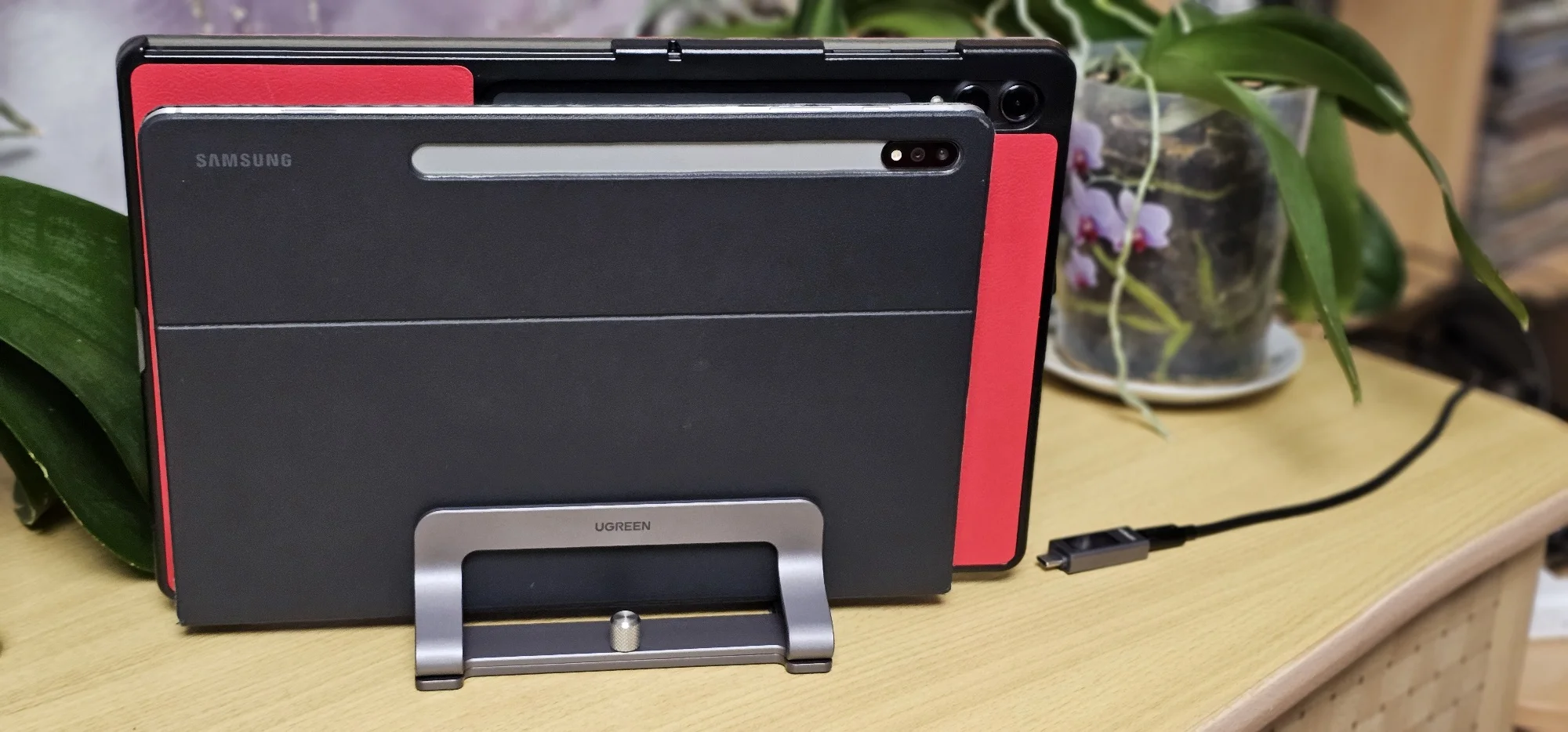 Отличная подставка ! ❤️🔥👍 Два планшета 14 и 12 дюймов уверенно стоят там 💙 . Ugreen как всегда топ 🤩 ! Дошло за 5 дней . Алюминий и силиконовые подкладки , чтобы не поцарапать устройства .