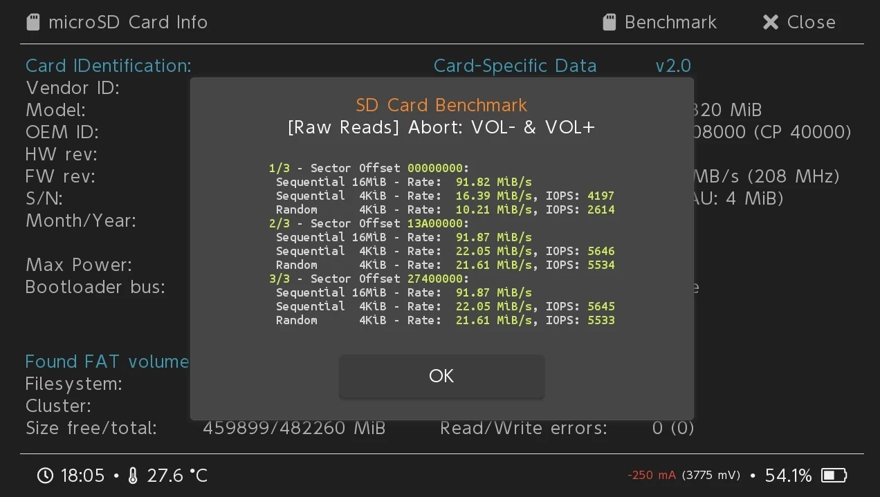 Покупал карту для Nintendo Switch (rev. 2, если кому интересно) на чипе. Пришла карточка быстро, за 13 дней. Упаковка: пакет-пузырка, чего вполне хватает для сохранения в целости. На данный момент в пользовании карточка уже неделю, очень ей доволен! Карточка объемом по факту оказалась ~506Gb (482320 MiB), но я к этому был готов, зная что по разному у всех ведется пересчет в байты и что карта будет из-за этого меньшего объема. Скорость шикарная, ничего не тормозит, при записи игр через dbi скорость выше чем на предыдущей моей карточке Samsung Evo 128. Все классификации, указанные на карточке совпадают, кроме одной! И я до сих пор не понимаю почему так вышло, зачем занижать класс?! И это именно та классификация, которая меня волновала больше всего, ведь от нее зависит скорость работы приложений. Речь веду о App perf class: на карточке указано A1, определяется как A2, что не может не радовать! Итого: для владельцев Nintendo Switch карточку рекомендую, можете смело брать и не беспокоиться о стабильности в играх!!Alexander V. 9 ноября 2023