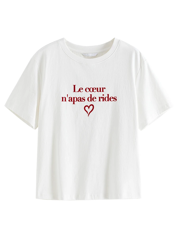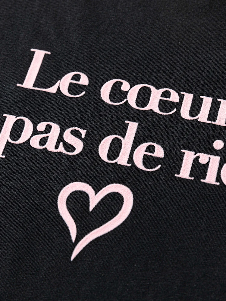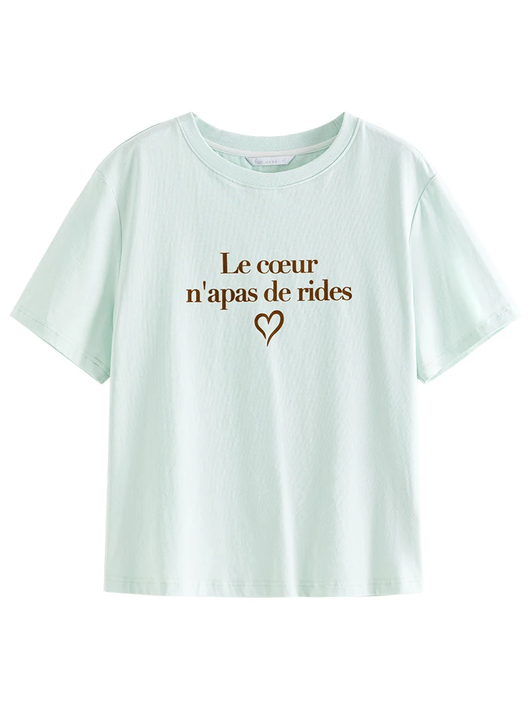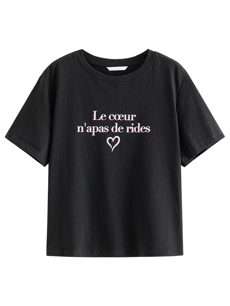 FSLE Women Print T-Shirts Summer Black Short Sleeve Tees Letter Print Female...