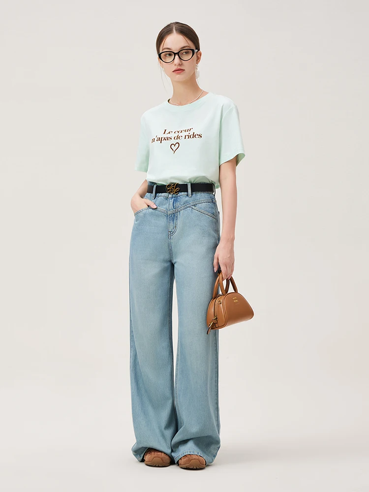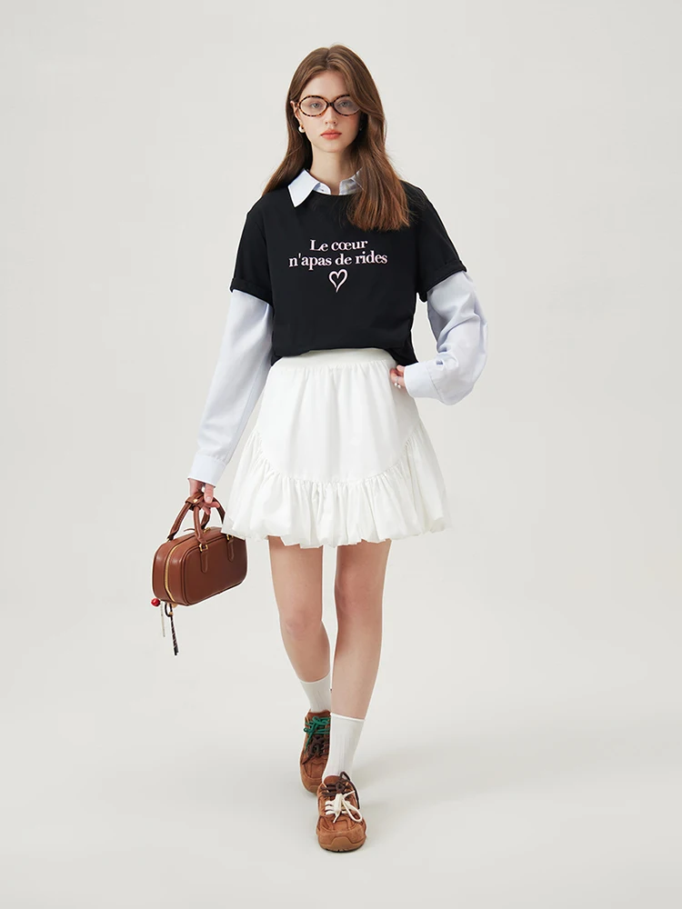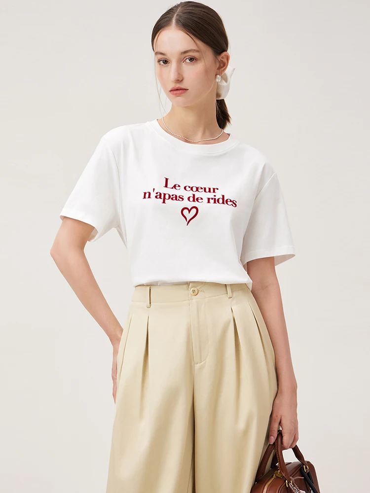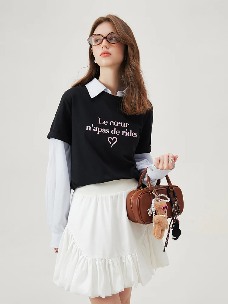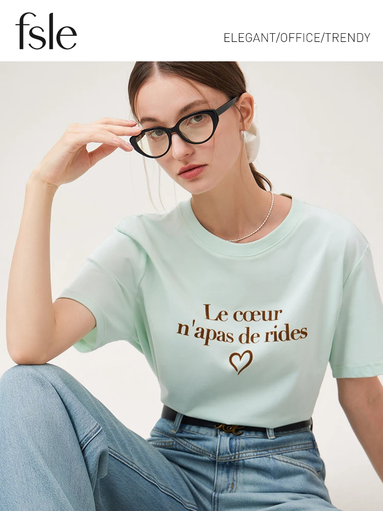 FSLE Women Print T-Shirts Summer Black Short Sleeve Tees Letter Print Female...