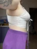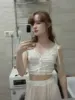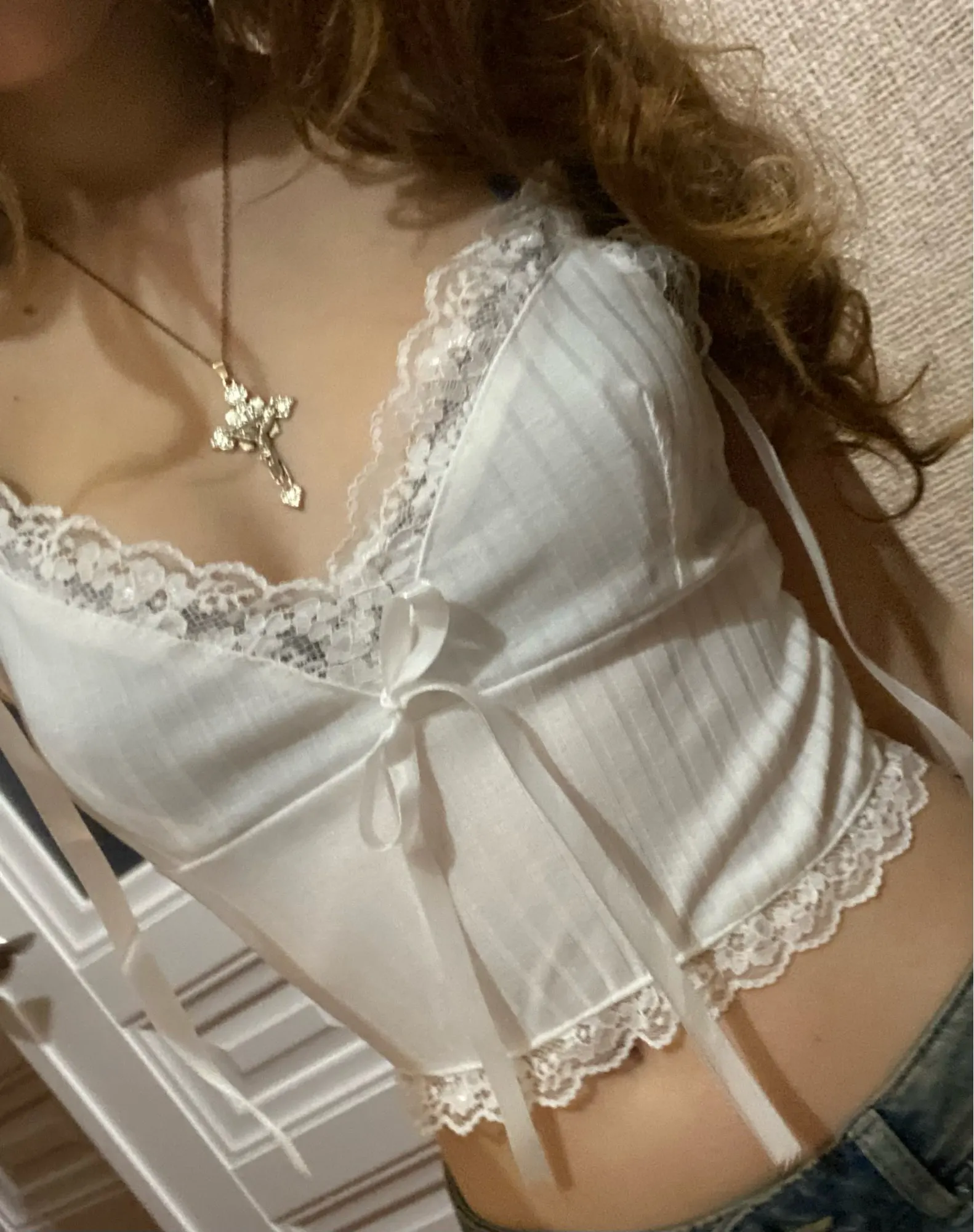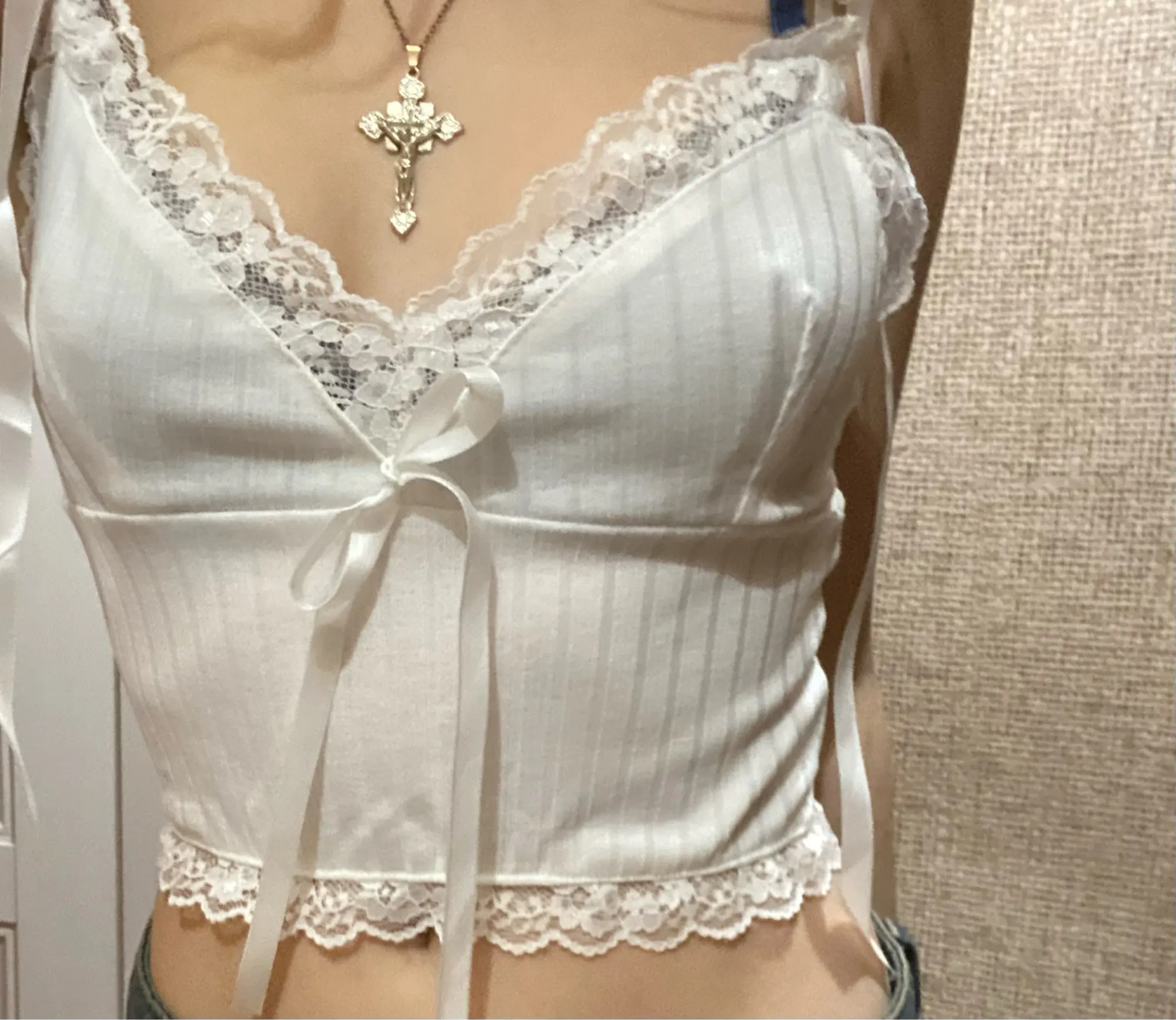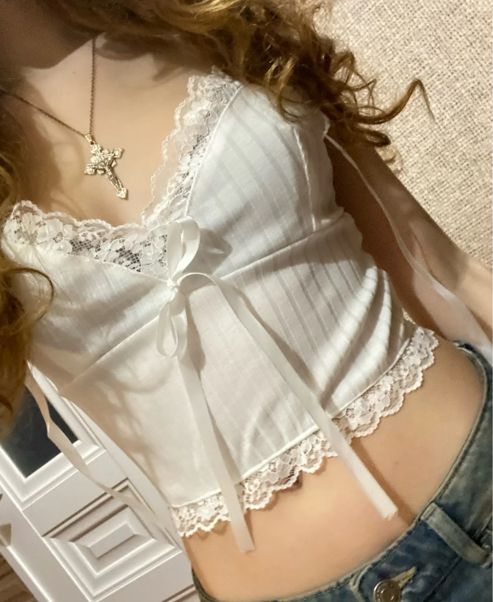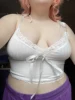 Lace Trim Crop Top Aesthetic White Bow Cute Sweet Mini Vest Knitted Basic...