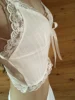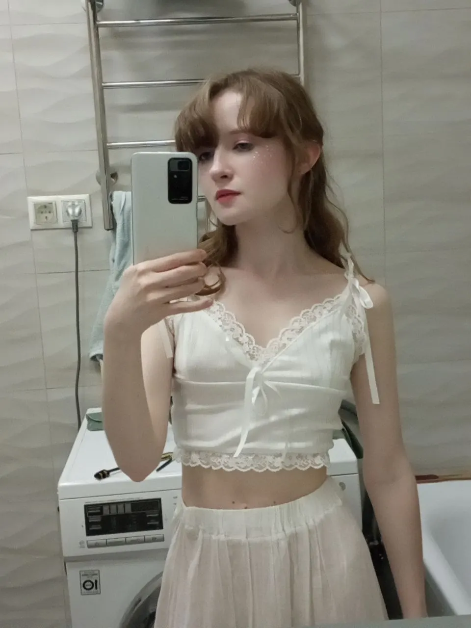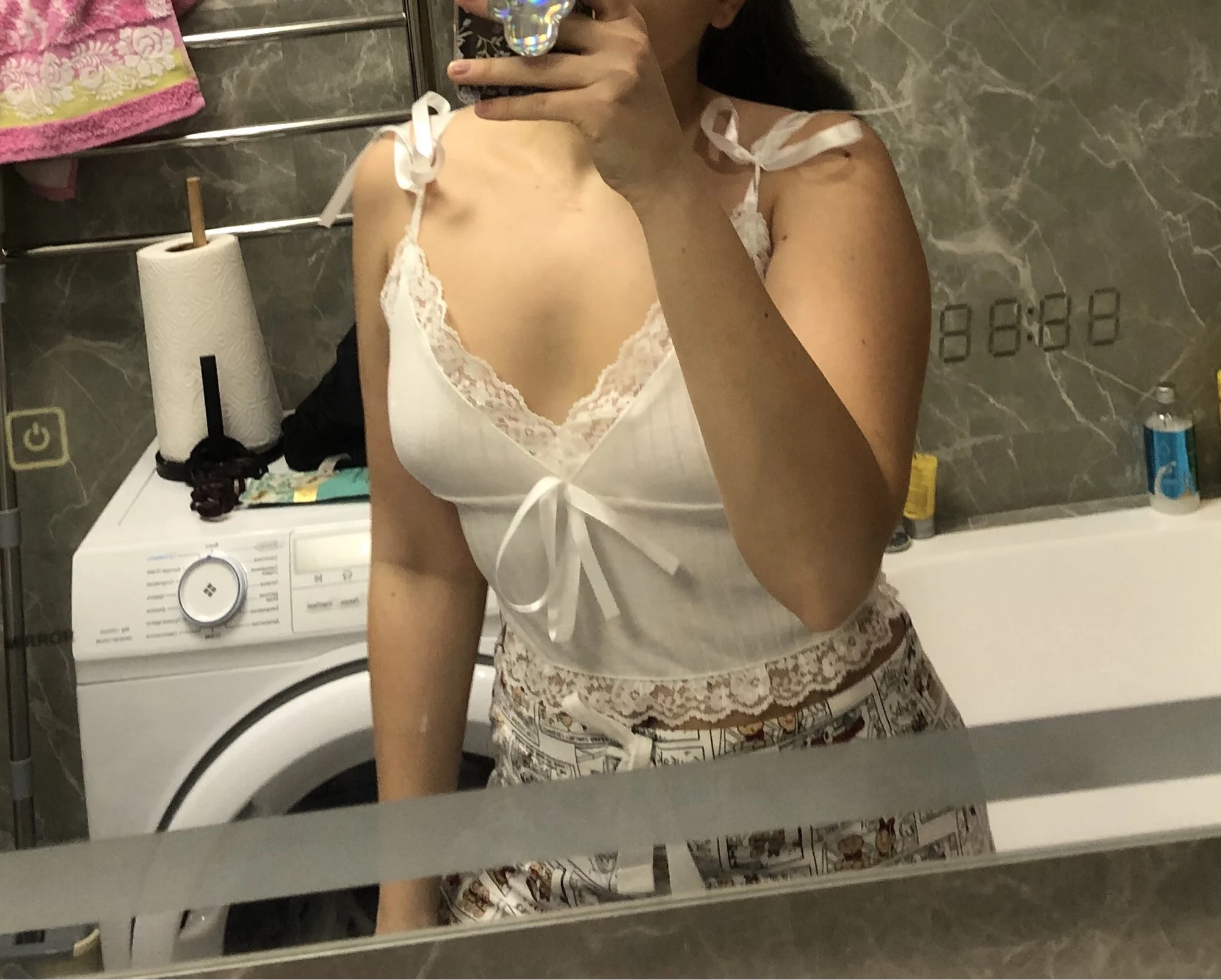 любимый топ, безумно красивый!! выглядит как дизайнерский, так и не поверишь что я его за 300 рублей купила... но начнём по порядку. плюсы: + очень красивый + качество, хоть это и полиэстер, но к телу приятно, и ощущение как будто хлопок +кружева очень красивые и миленькие, так же как и ленточки +грудь не просвечивает + мило смотрится + цена + цвет, прям насыщенно белый минусы: - очень глубокий вырез... у меня обхват груди 84, заказала с, и вырез прям такой большой, мне если честно не очень комфортно, у кого грудь большая то может прям сильно видно быть... но это уже на ваше усмотрение. также на спине довольно большой вырез, но для лета как раз подходит буквально через несколько ношений края ленточки начали расходиться, пришлось подрезсть, но скорее нужно поджигать. также от кружева отделяется нитка. ещё резинка внизу постоянно подворачивается, приходится поправлять. у меня от 64, и на самом деле сидит прям плотно, кажется что начиная от 67 нужно м заказывать.. - сложно разобраться с завязками... я так сама себе и не смогла завязать бретели, прошу кого-нибудь завязать, а они потом ещё и спадают... ну либо я придумала такой выход, вот эти две передних лямки связываю на шее, а две задних просто сзади завязываю и всё думаю, что этот топ не для повседневного ношения, а больше как нарядный, а то если слишком часто его носить мне кажется он долго не протянет.. но все эти минусы перекрывает красота данного топа!! всё равно рекомендую заказать