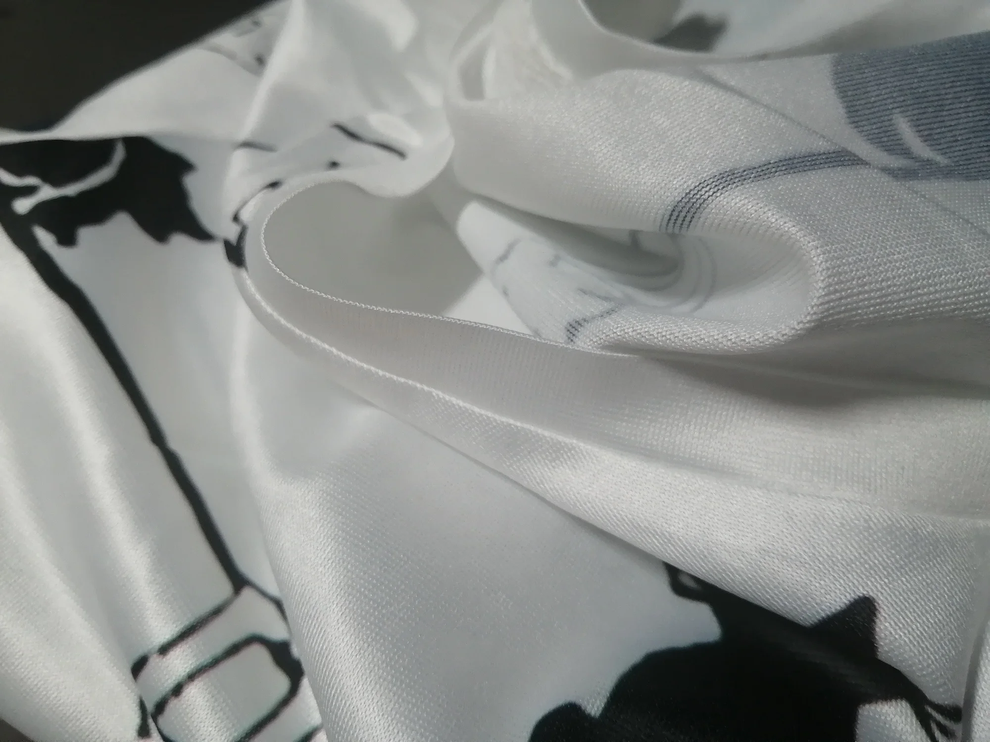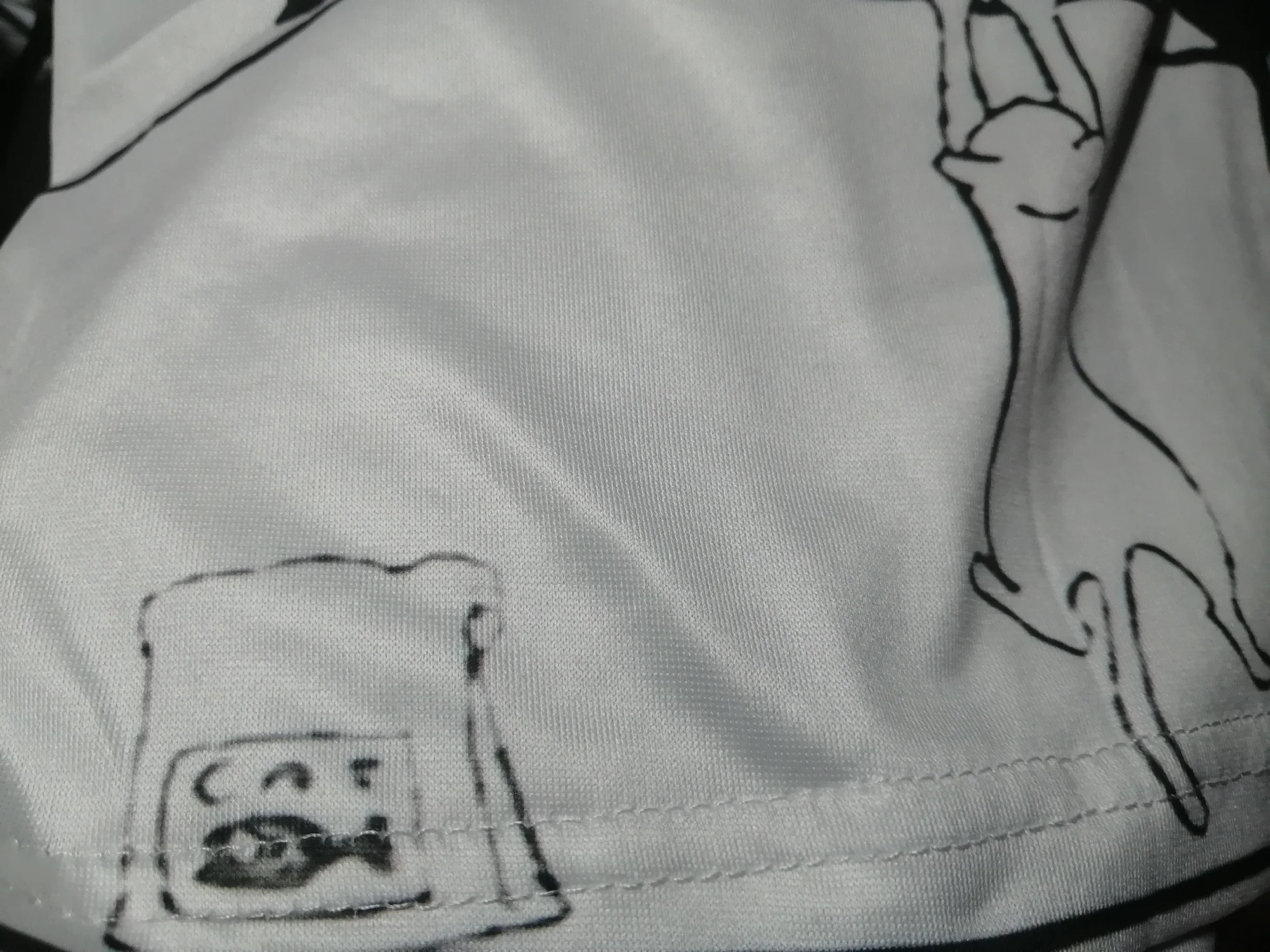 Неприятная к телу тонкая синтетика, в которой тело не дышет, страшно повышает потоотделение. Какой бы ни был привлекательный рисунок, комфорта при носки не будет. Принт нанесен печатный способом. Очень надеюсь, что не облезнет при стирке и не окрасит другие вещи. Ни каких нашивок с рекомендациями стирки и составом ткани нет. Размер соответствует. Качество пошива - удовлетворительное. Доставка в течении дву-трех недель.