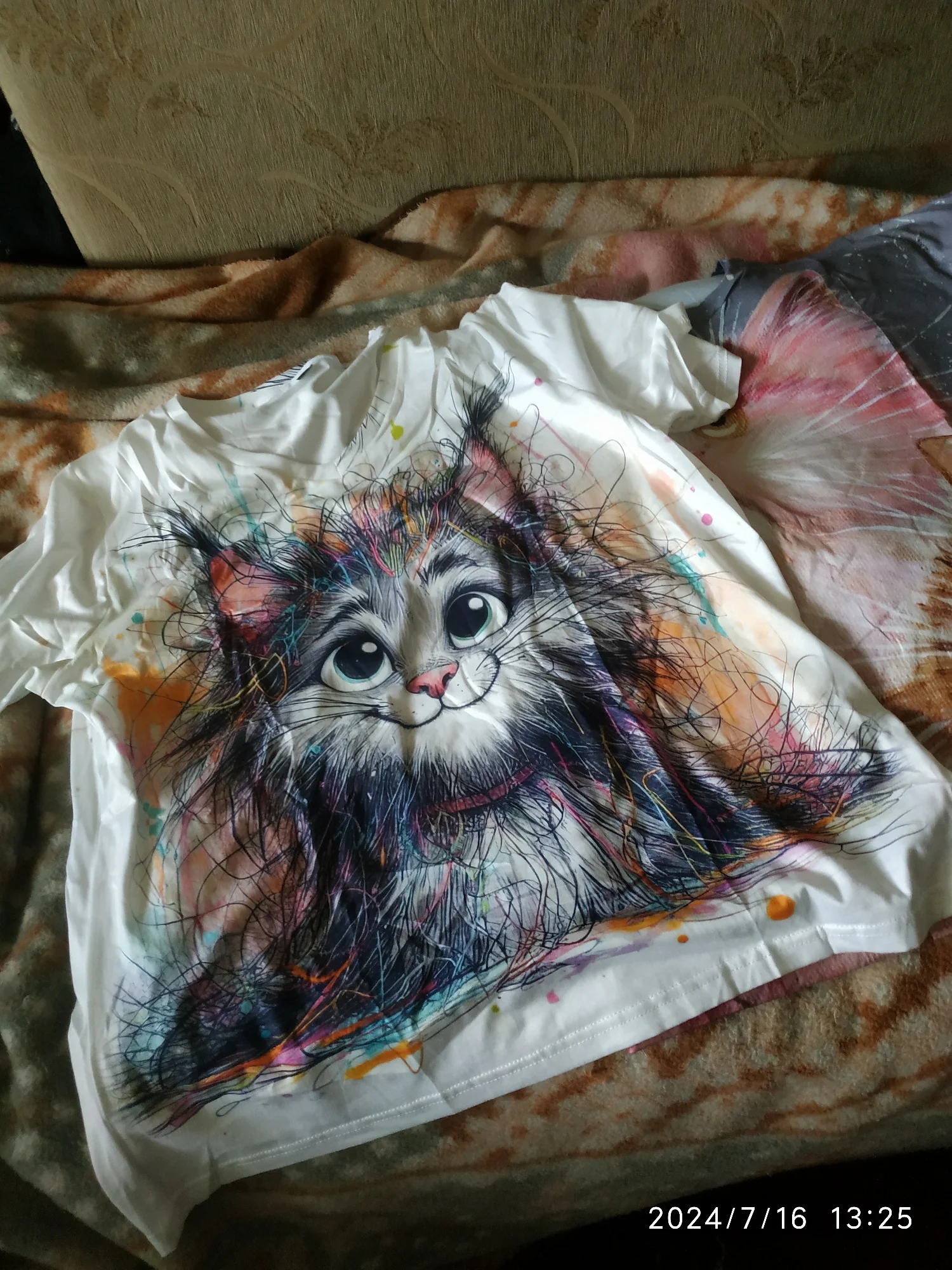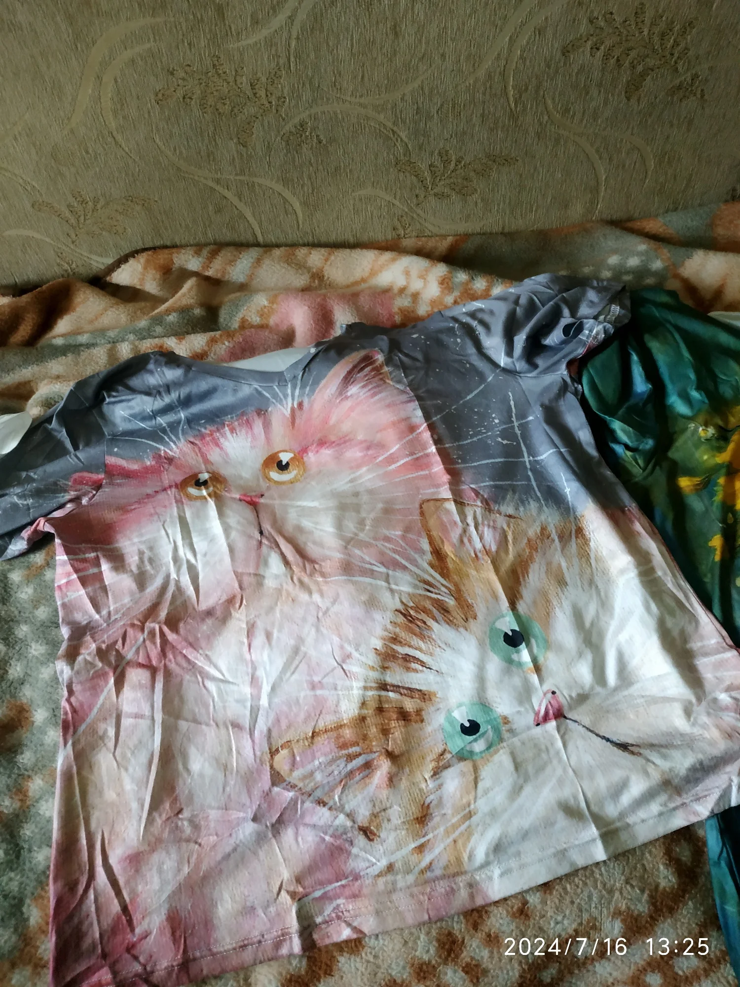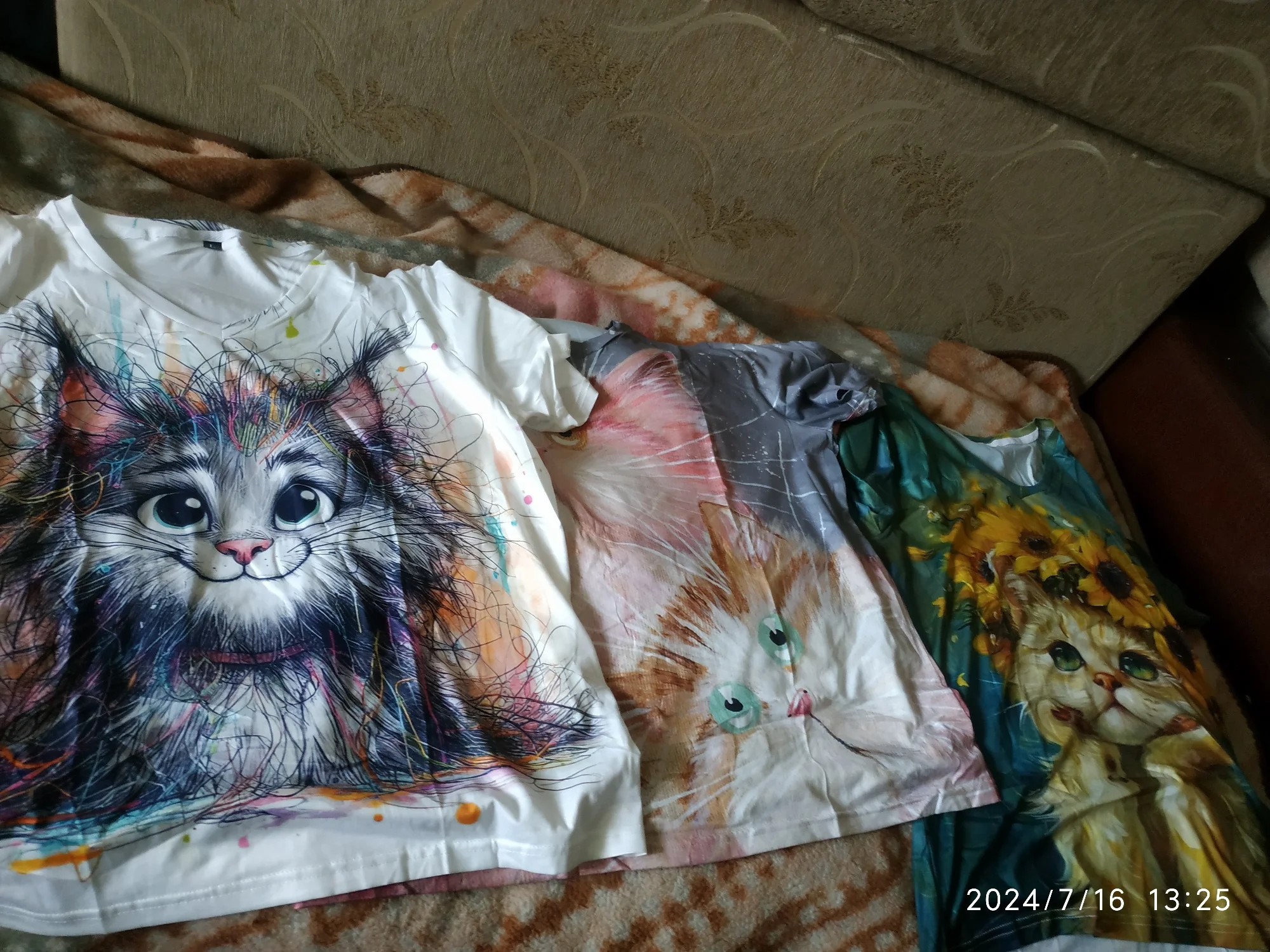 Доставка во время,футболочки классные.Кончно не хлопок,но телу приятные.Тоненькие,оверсайс.Рисунок спереди и сзади, очень красивые котики.Как в описании.4373 u. 16 июля 2024