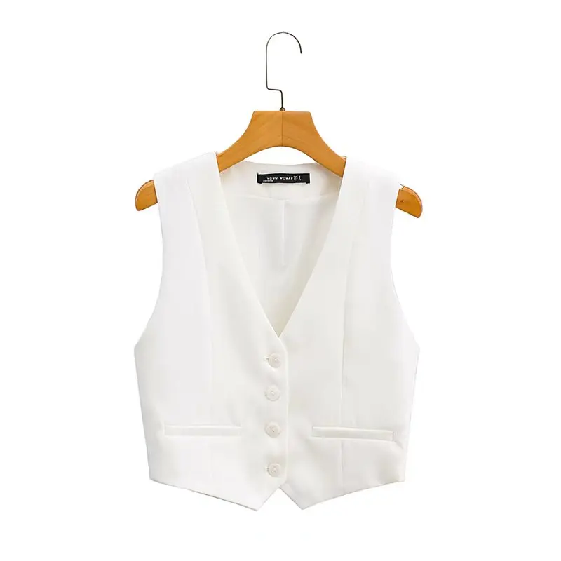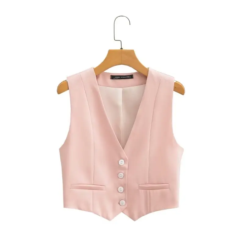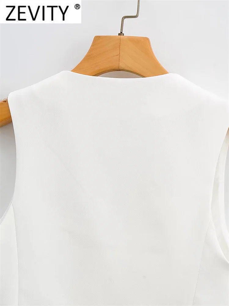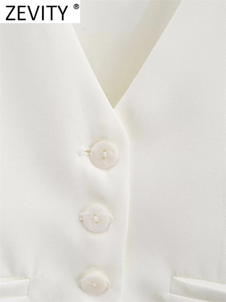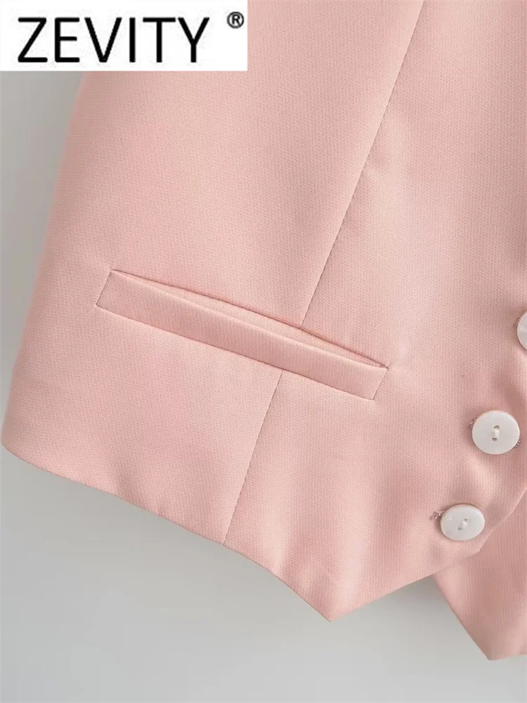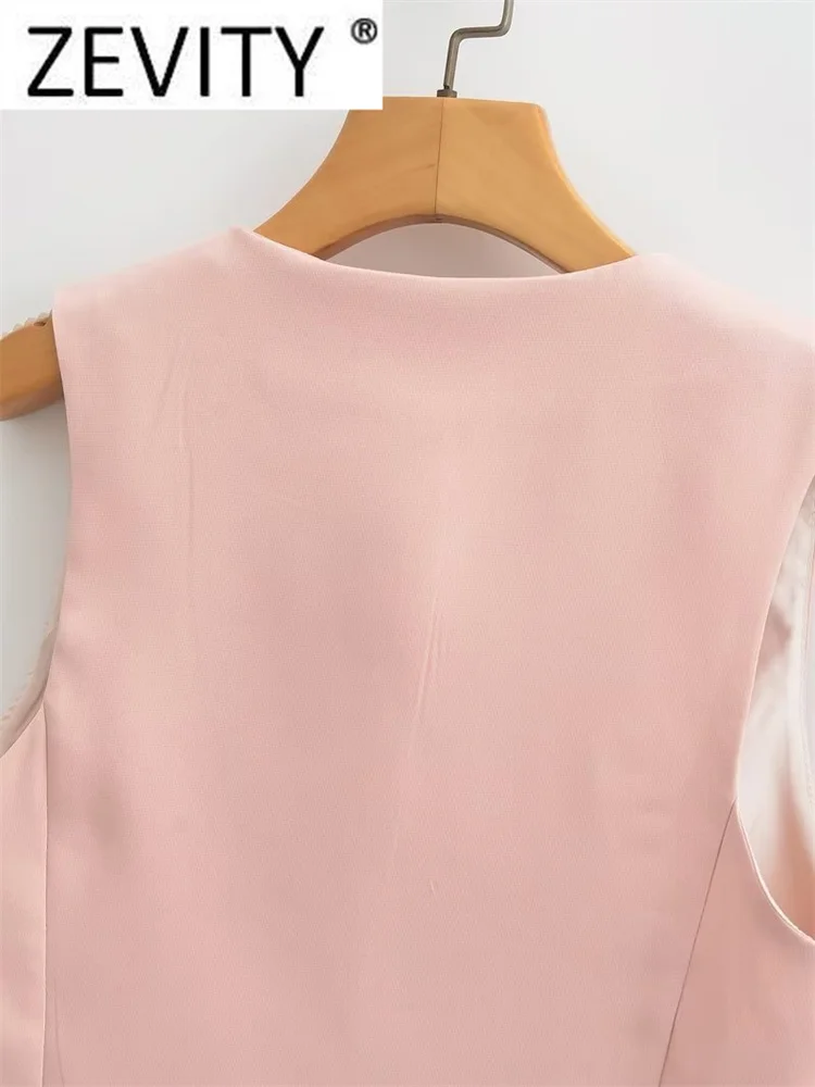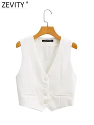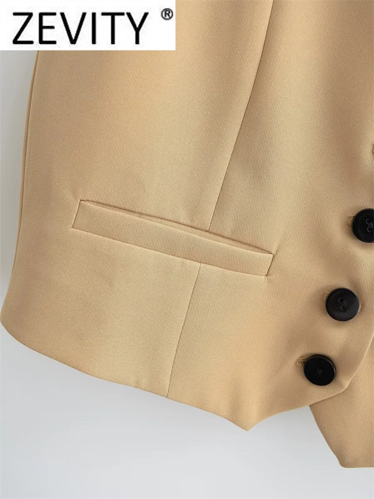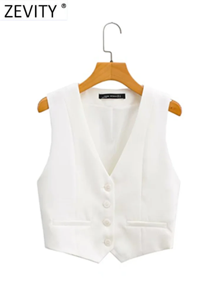 Zevity Women Fashion V Neck Single Breasted Short Vest Office Lady Sleeveless...