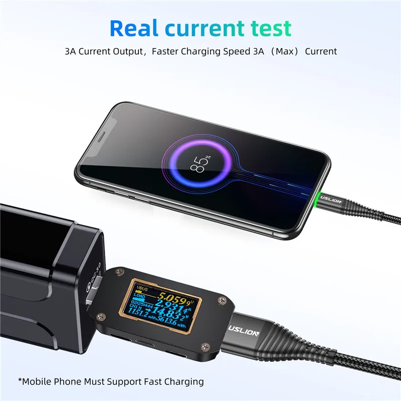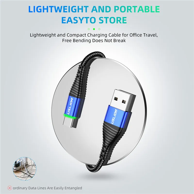USLION 0,5 м/1 м/2 м светодиодный 3A USB-кабель типа C, провод для быстрой зарядки для Samsung Galaxy Xiaomi Huawei Note 7, кабель USB-C для передачи данных, шнур зарядного устройства