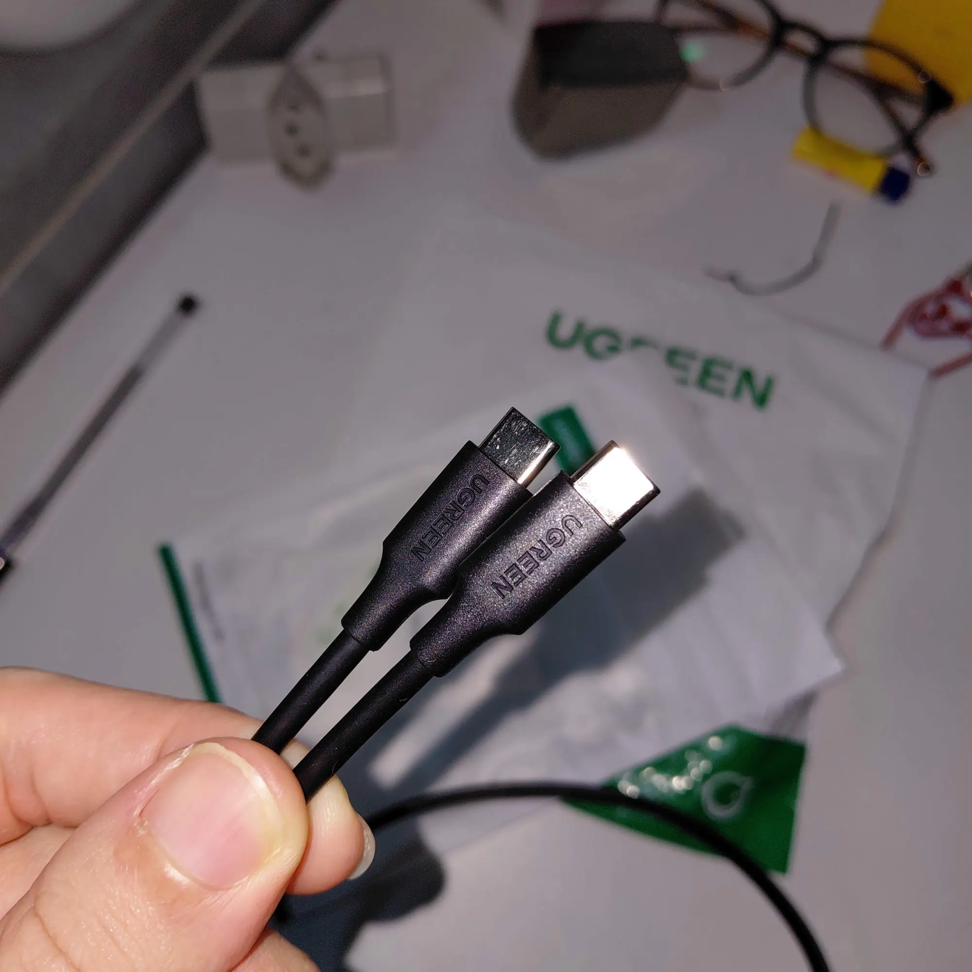 Тут два варианта, или это подделка, или Ugren скатилась до качества подвальных фирм. Кабель очень толстый и дубовый, буквально стоит колом. Весь кабель согнут волнами и его не реально выпрямить даже нагревая феном. Такое ощущение что капроновая обмотка нанесена на скрученный кабель. В общем за 250₽ я бы это купил, а так меня обманули. Это определённо не стоит своих денег!