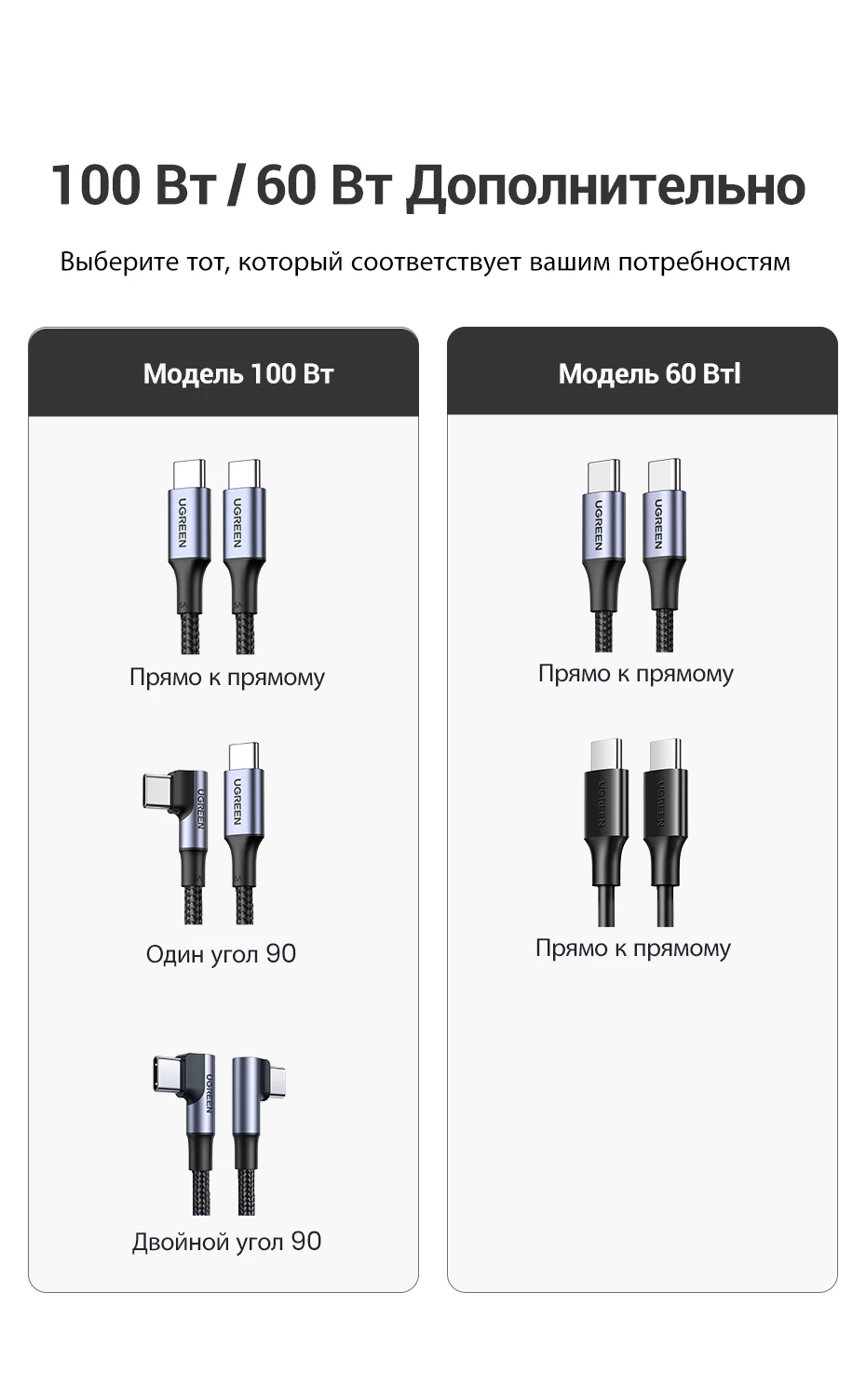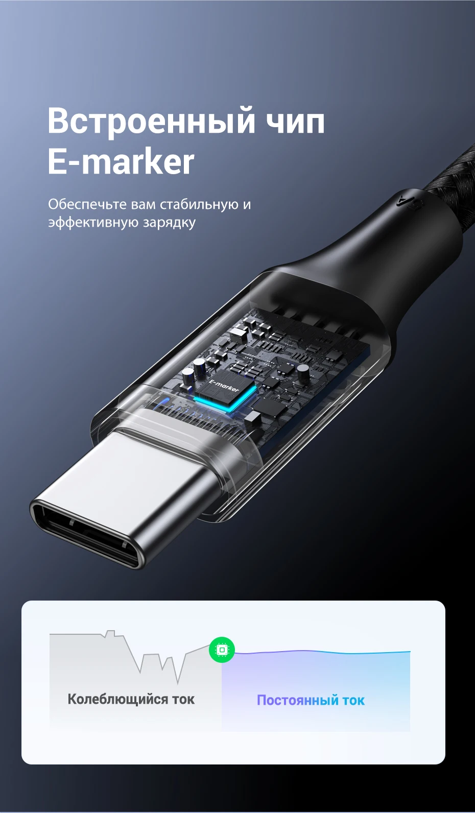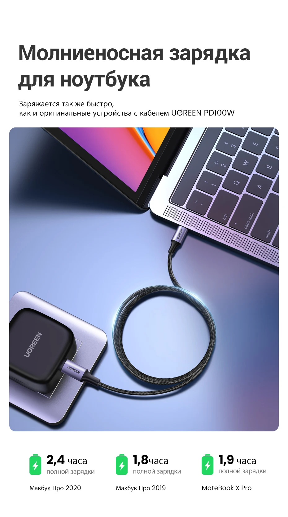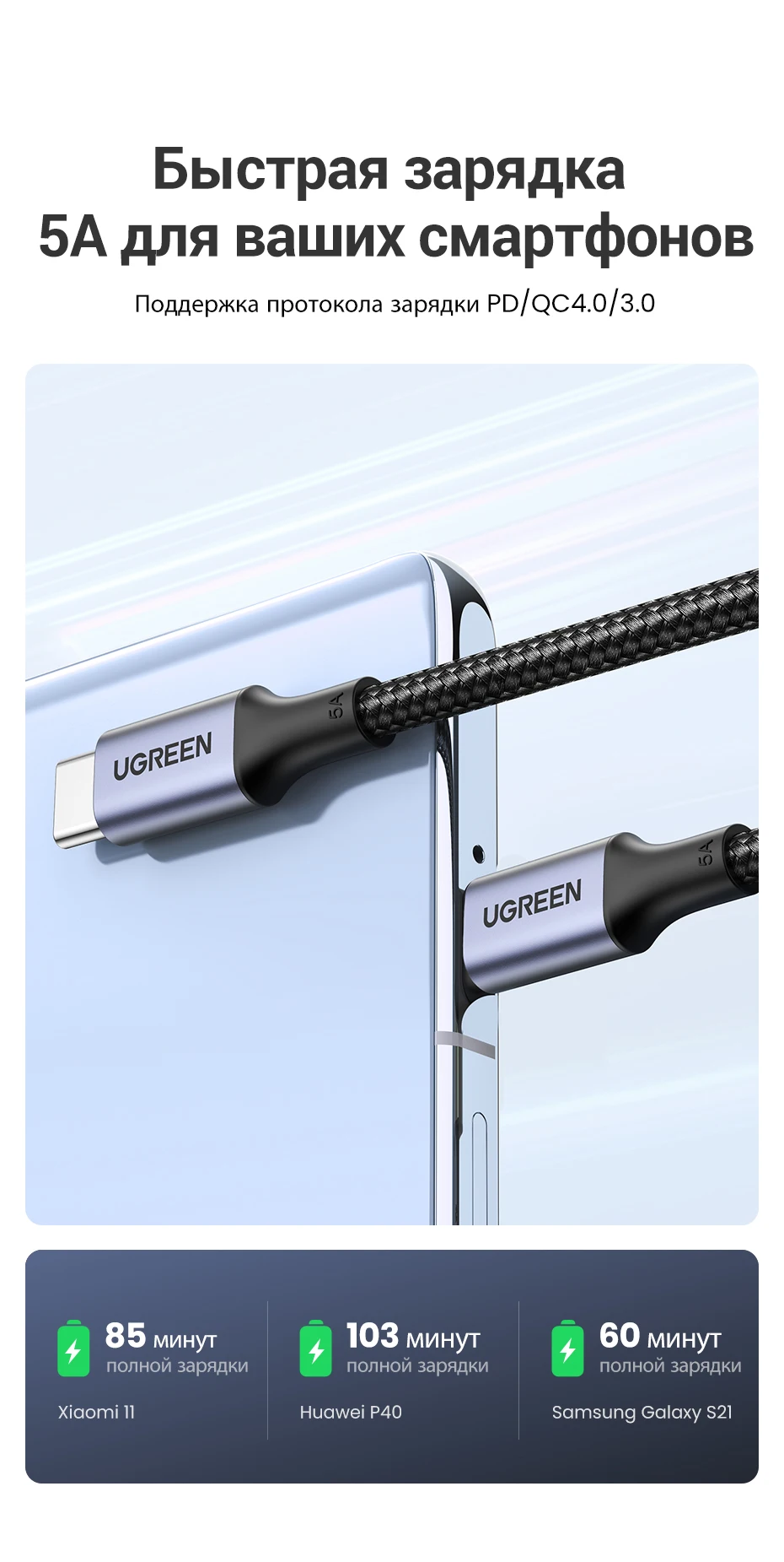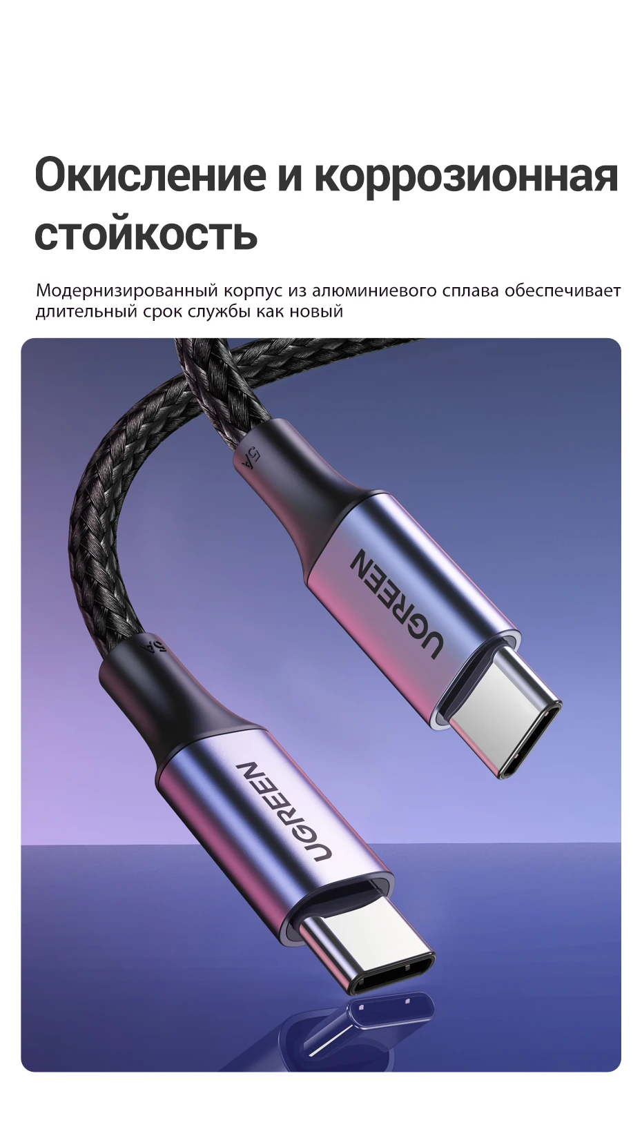 UGREEN кабель-Переходник USB C на USB C кабель Встроенный E фонарь заднего номерного знака "Умный" чип, который обеспечивает безопасную зарядку до 100 Вт (20V 5A) выходная мощность для ваших ноутбуков/мобильных телефонов/планшетов на полной скорости.