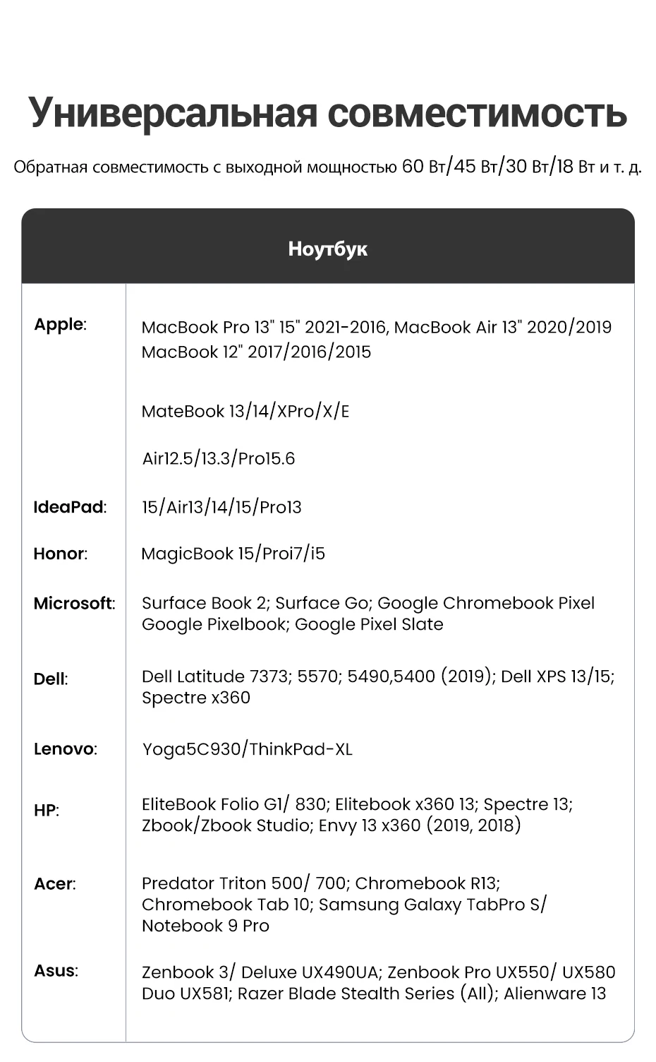 Оснащенный оригинальным зарядным устройством ваших устройств, вы будете наслаждаться высокой скоростью зарядки, такой как быстрая зарядка MacBook Pro 2020 до 39% за 30 минут, 65 минут полной зарядки Samsung Galaxy S20 Ultra 5G