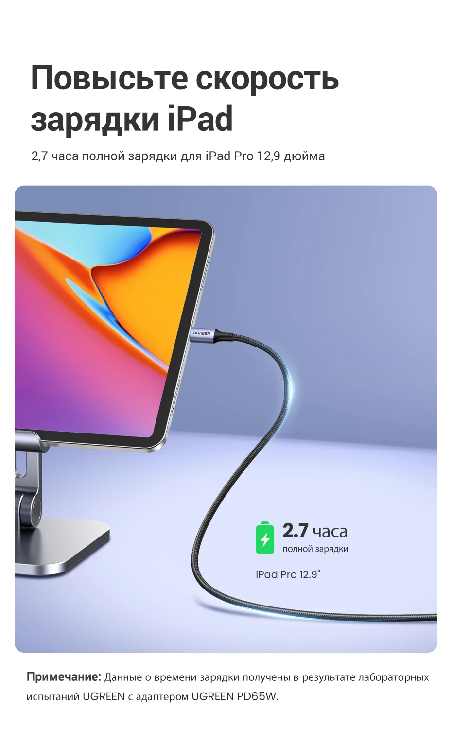 2. Скорость зарядки зависит от устройств и зарядного устройства. Пожалуйста, заряжайте с помощью оригинального адаптера питания для достижения лучшей производительности