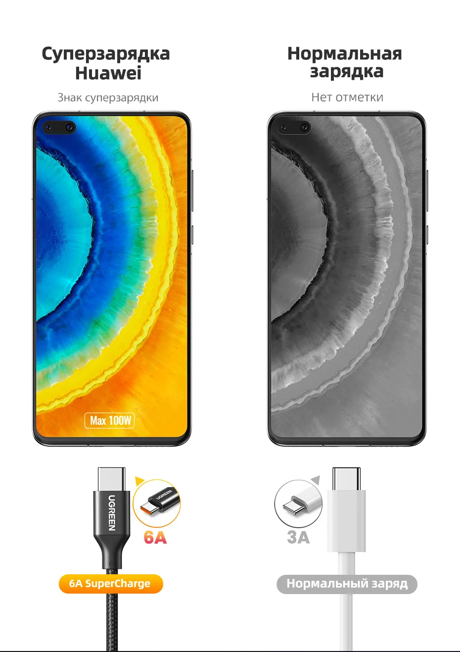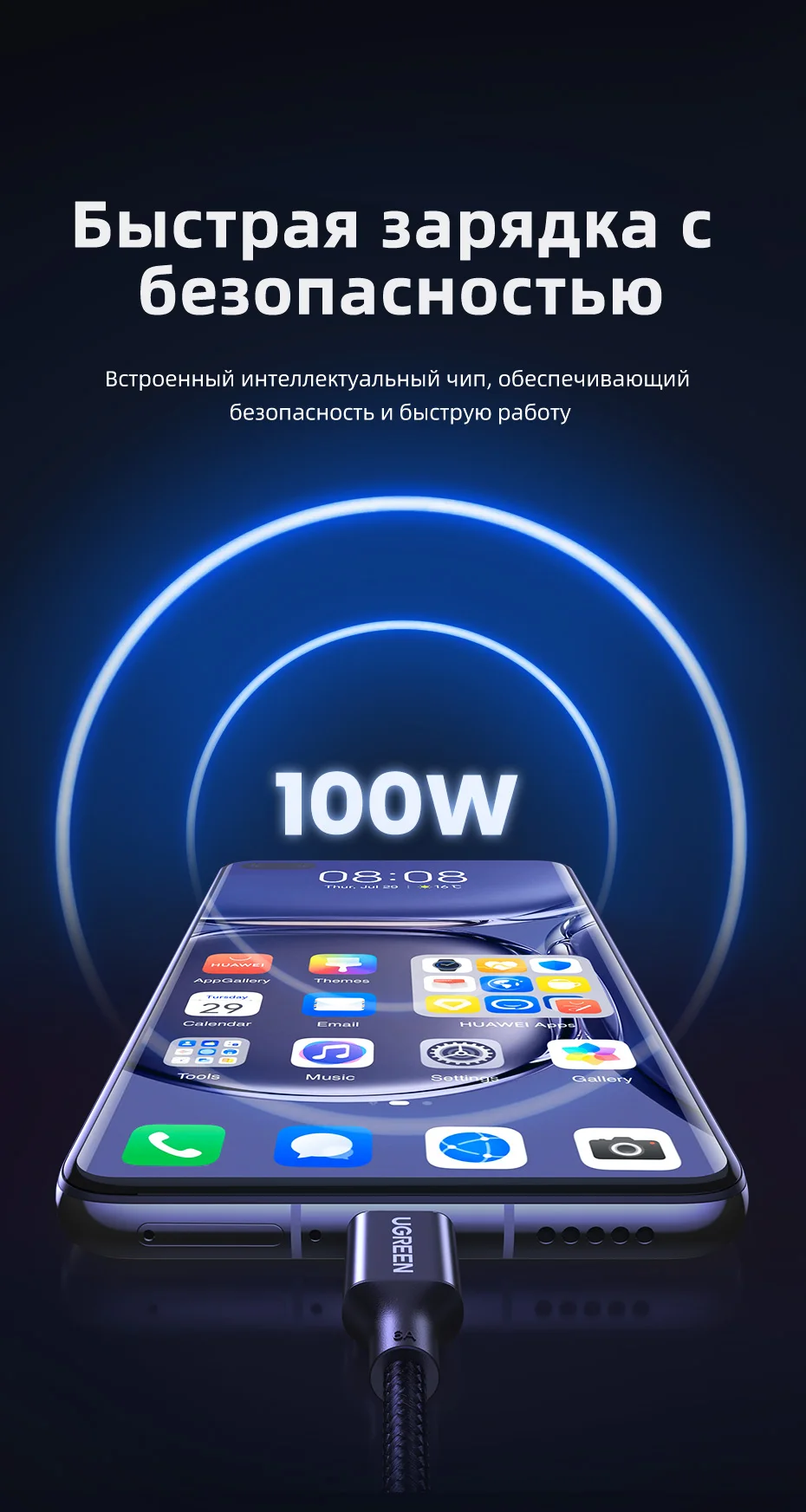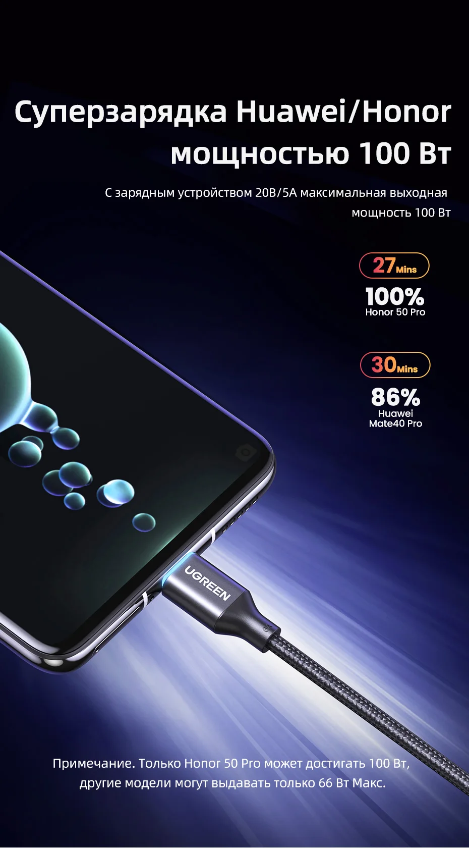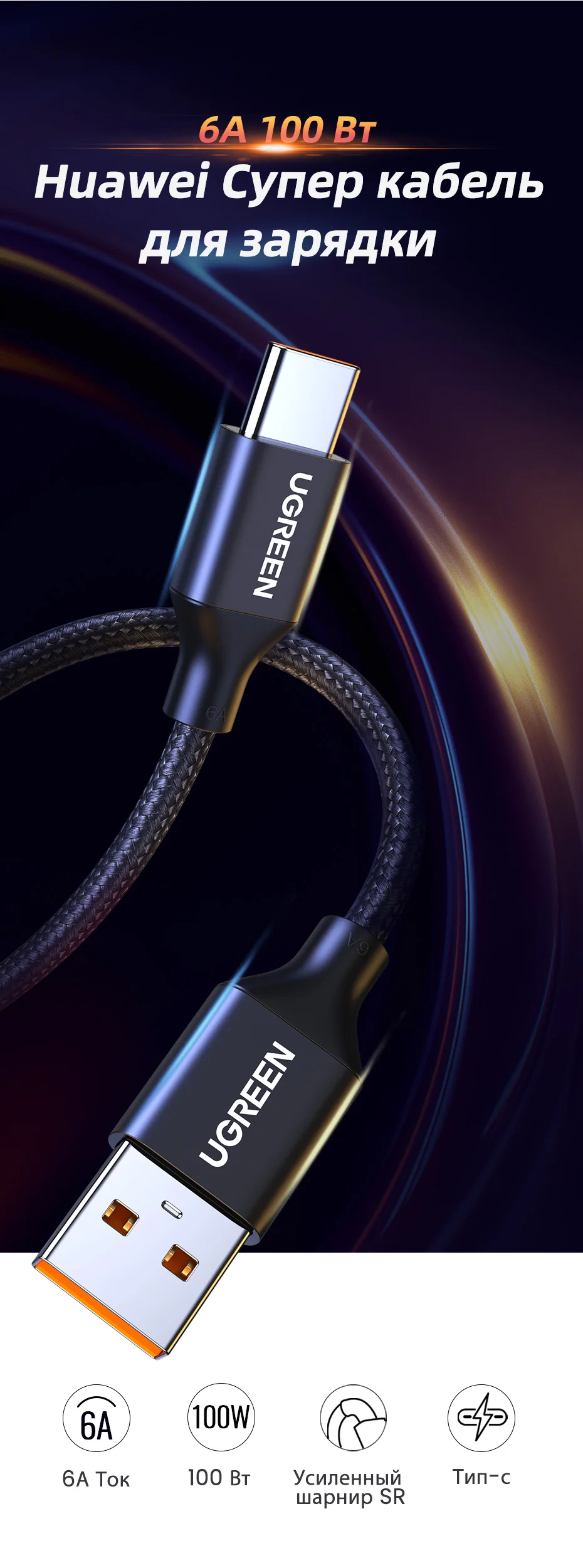 UGREEN 6A USB Type C кабель для Huawei Mate 60 Honor 100W/88W быстрая зарядка USB C кабель для Xiaomi USB C супер зарядка