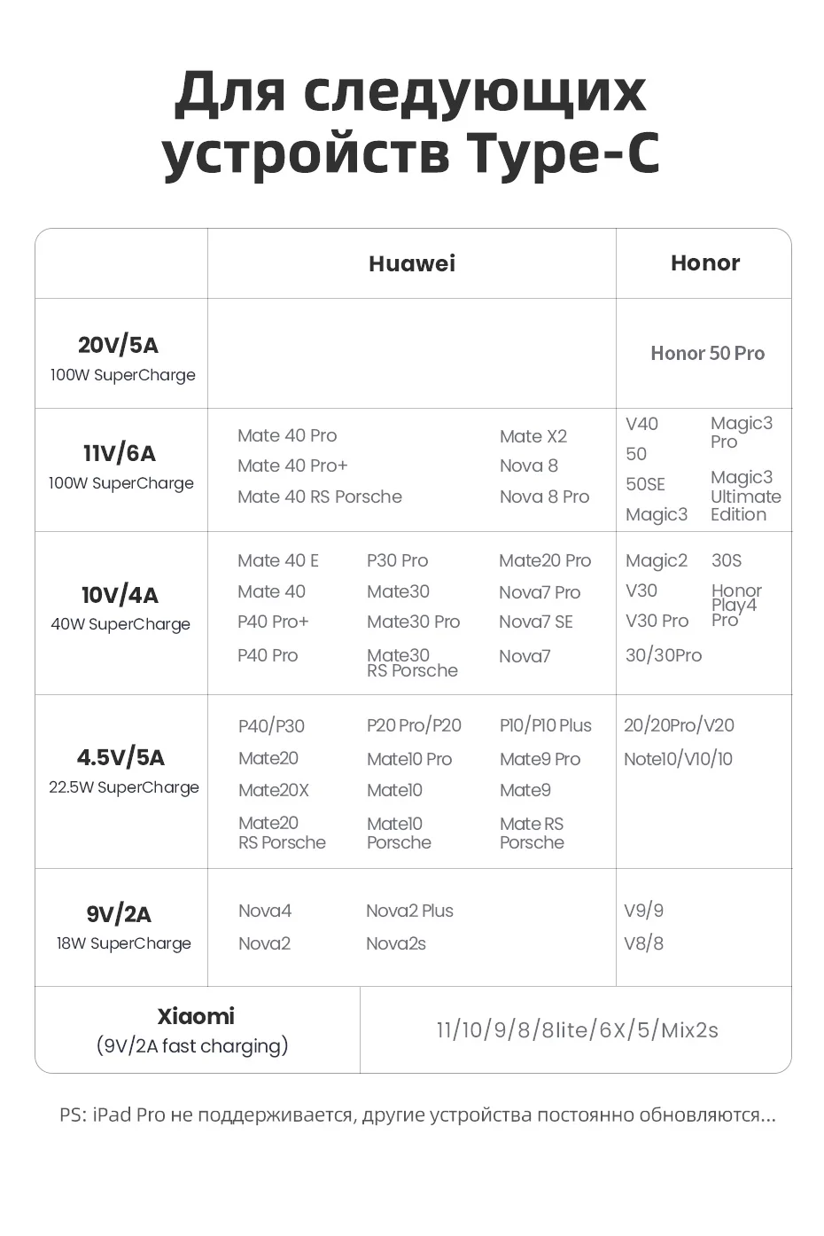 2. О бренде Xiaomi, поддерживается только быстрая зарядка 27 Вт, Turbo Charge не работает, совместимы со следующими моделями: 12 Pro, 12 X, 12, 11, K50, K50 Pro, Notell, K40S, 10.