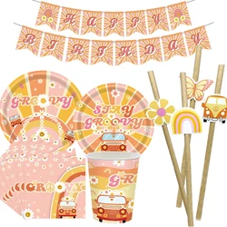 1set Hippie Stay Groovy Disposable Tableware Paper Straws Banner For Kids...
