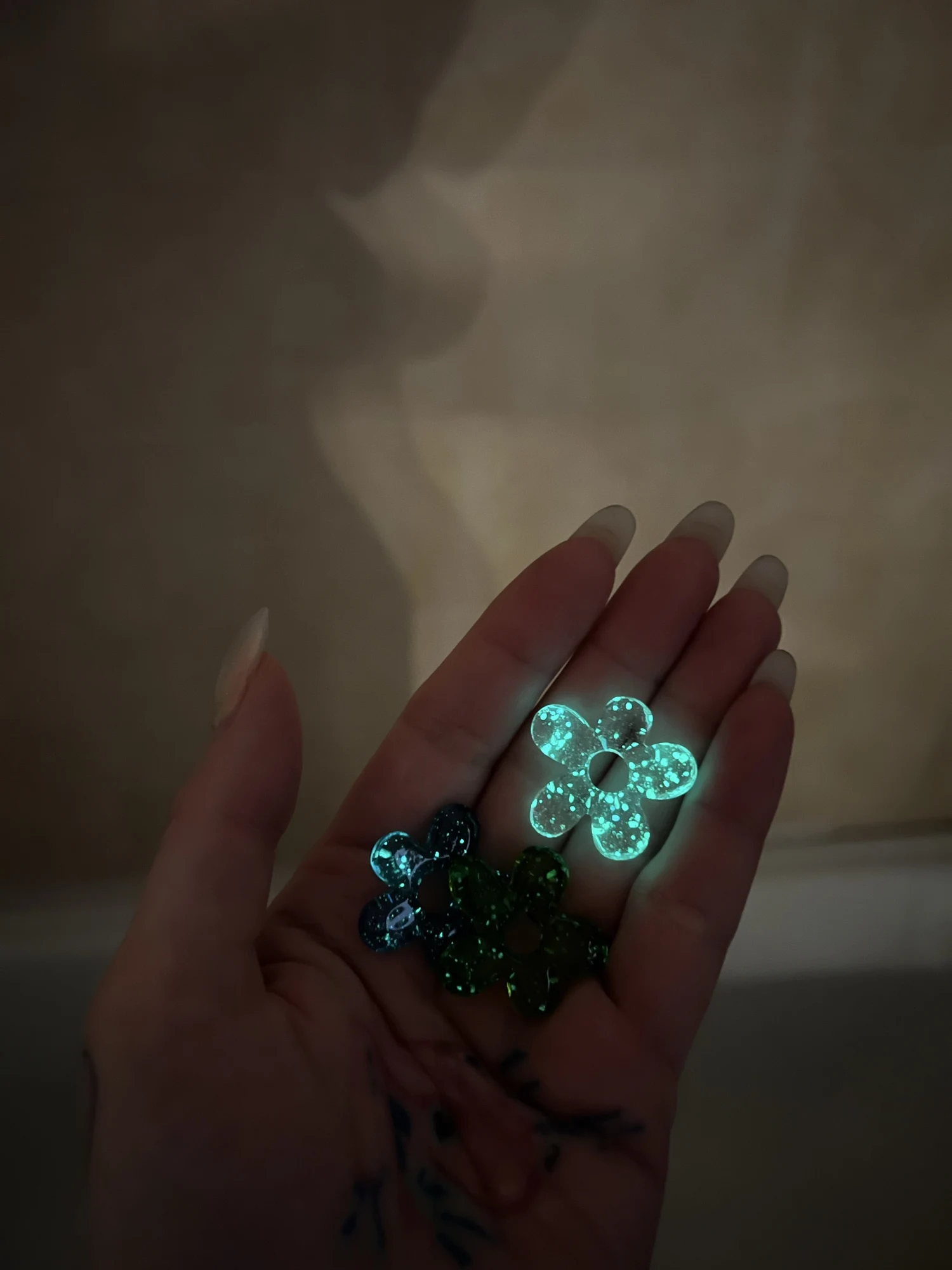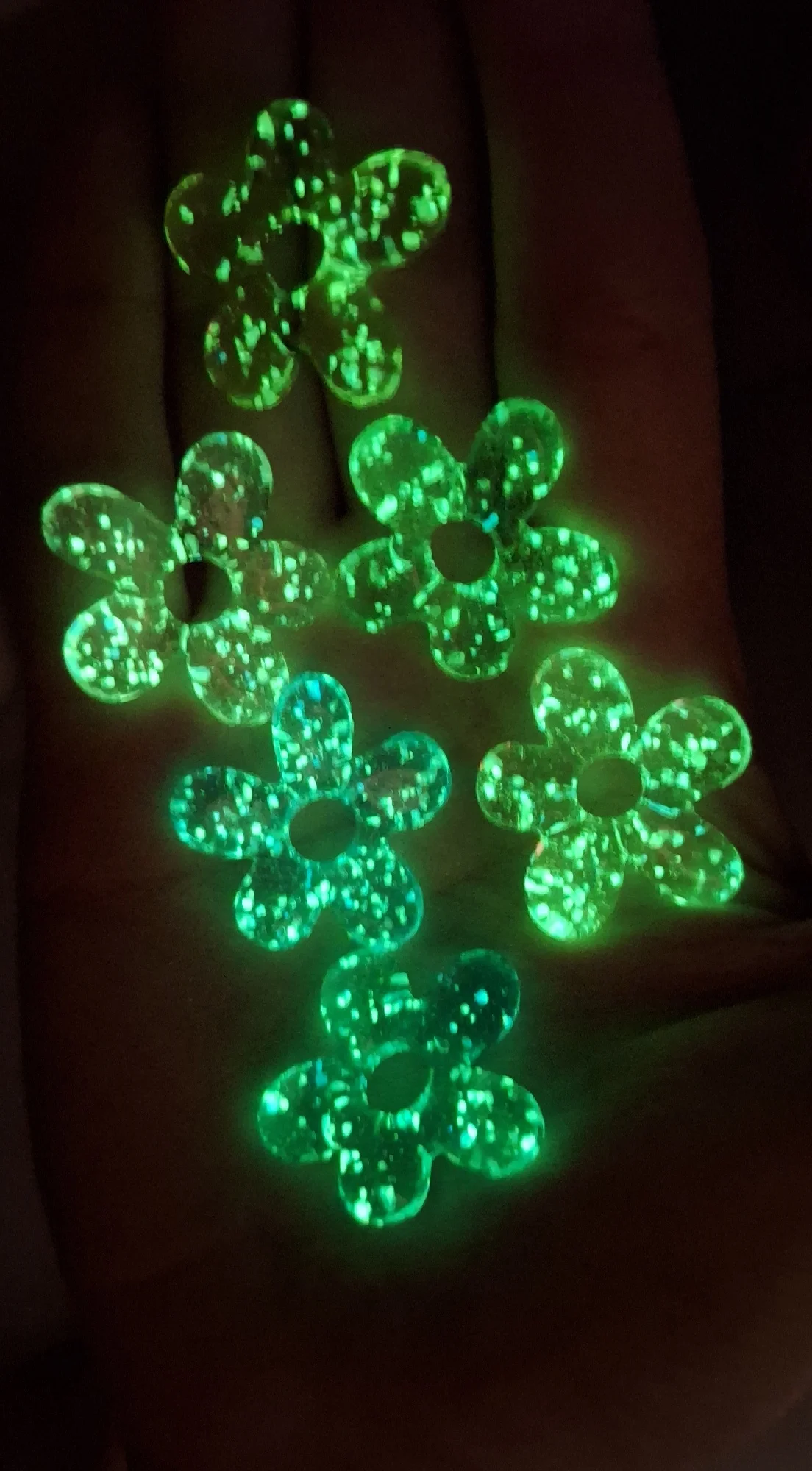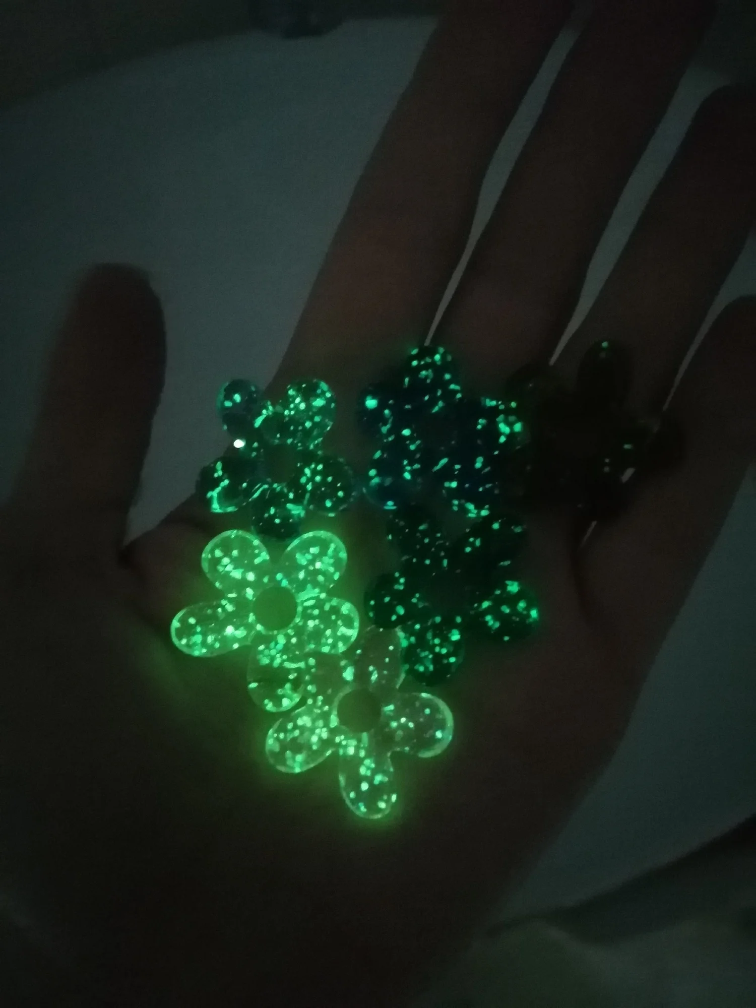 Не поняла по описанию, что светятся в темноте. Красивые, отличная упаковка, пришли целые