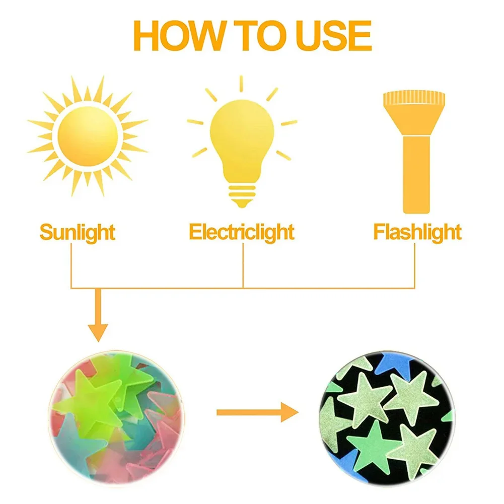 100Pcs/Set Stars Luminous Wall Stickers Glow In The Dark For Kids Baby Room...