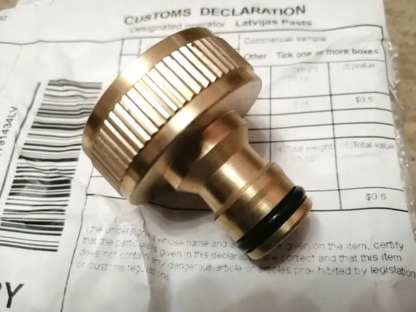 Разъём очень хорошего качества изготовления. Поверхность гладкая, резьба ровная, материал - латунь. Места подсоединения не подтекают. Шланг к нему подсоединяется и отсоединяется легко. Доставка до Архангельской области 18 дней. Товар и продавца рекомендую.
