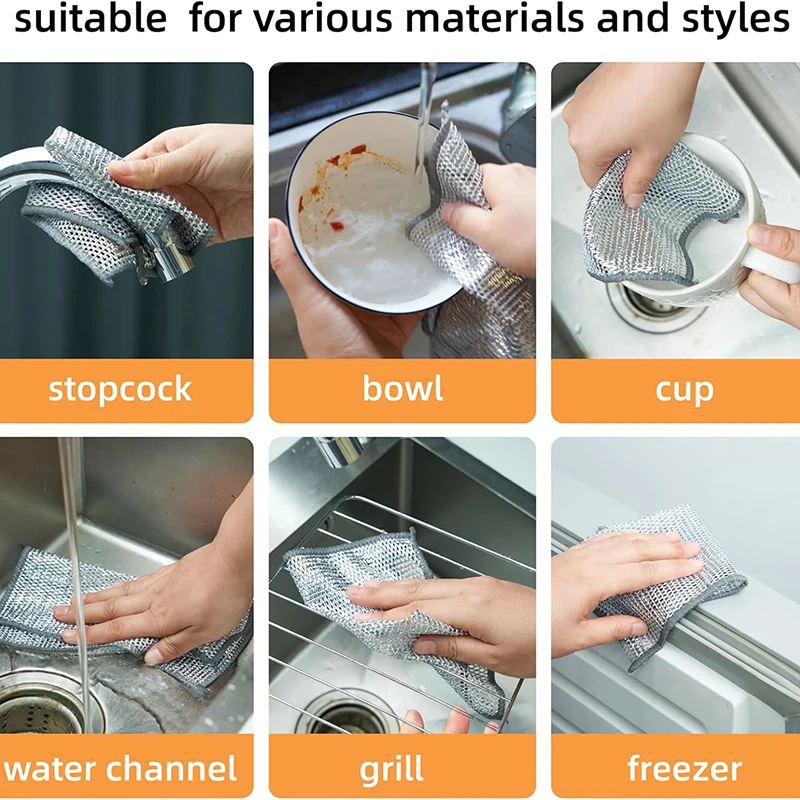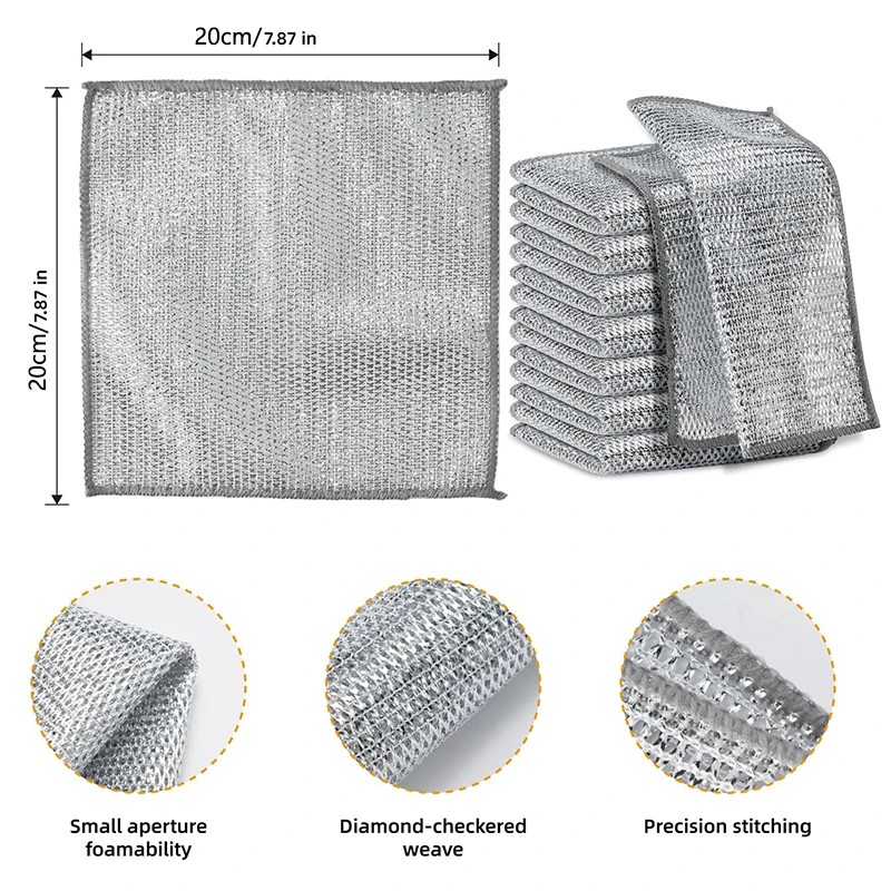 1/5/10pcs Magic Dishcloth Silver Wire Cleaning Cloths Kitchen Dish Pot Washing...