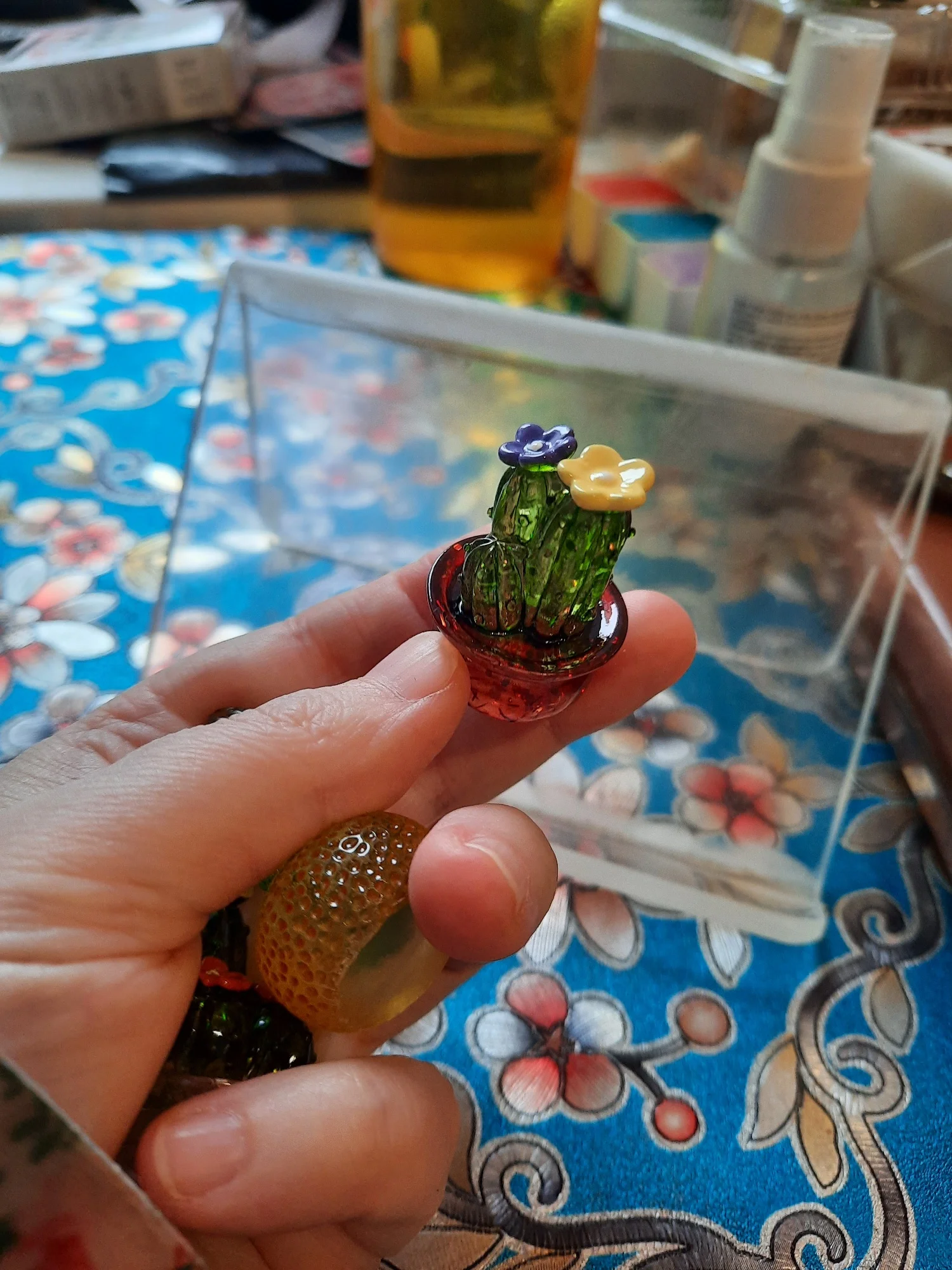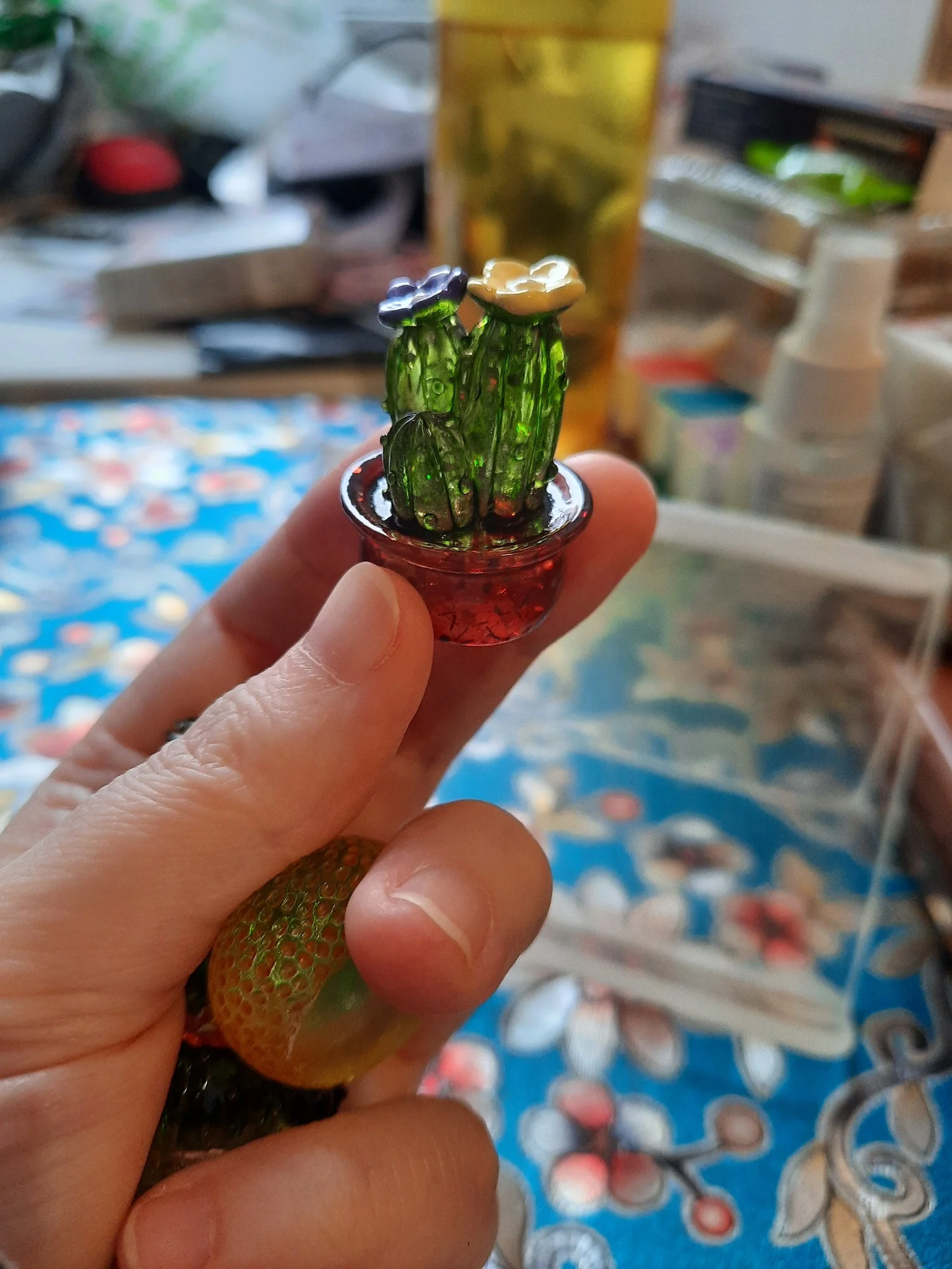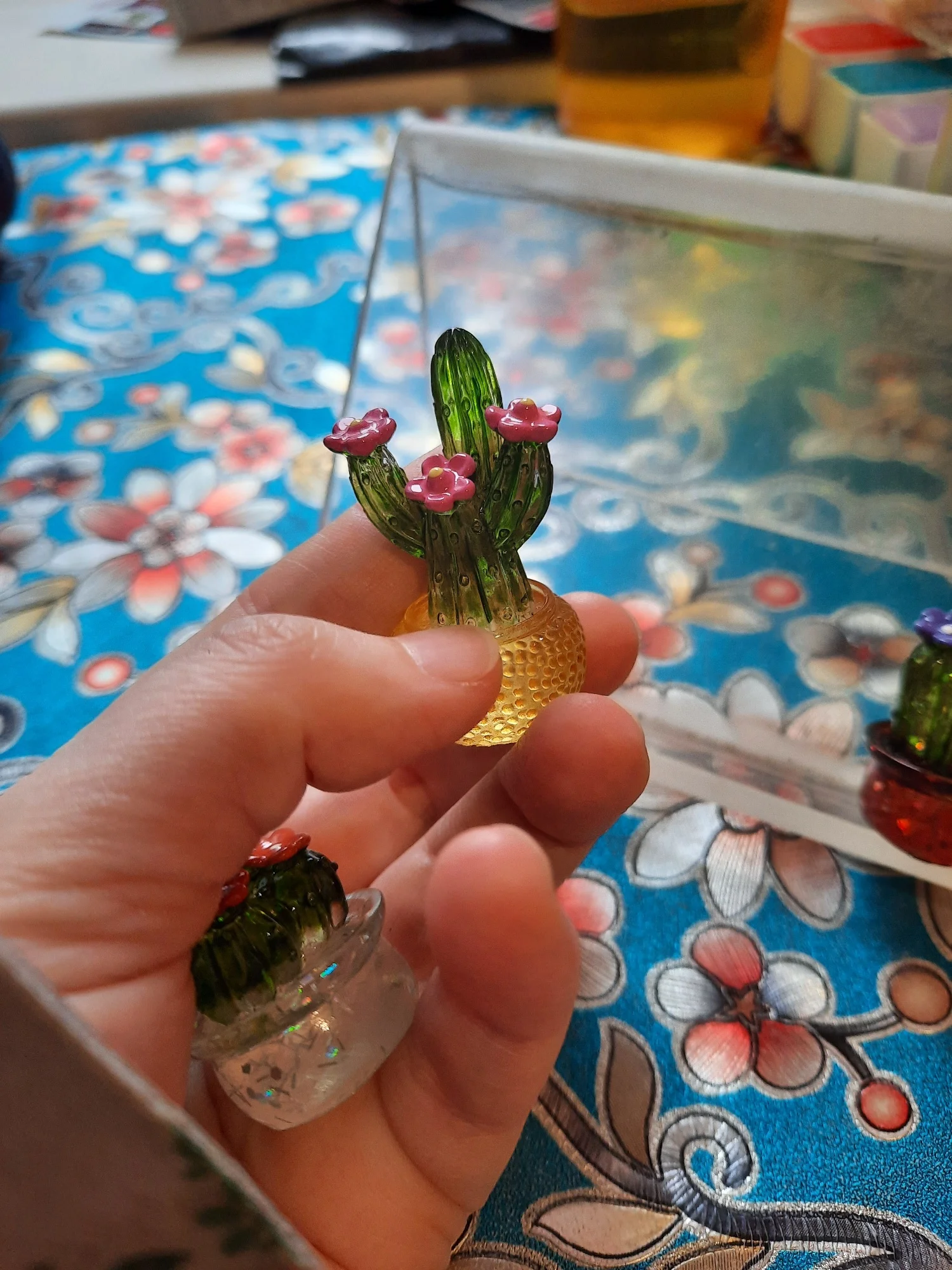 Миниатюрные кактусики в горшках. Это красотища! Все целое! заказано ещё. Благодарю продавца!