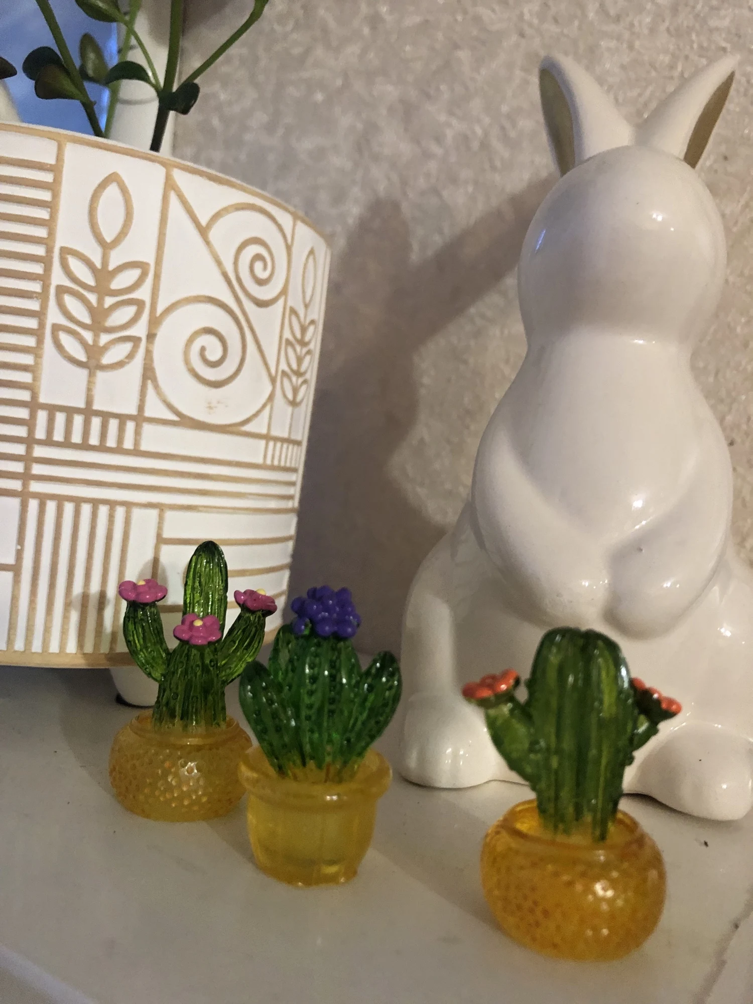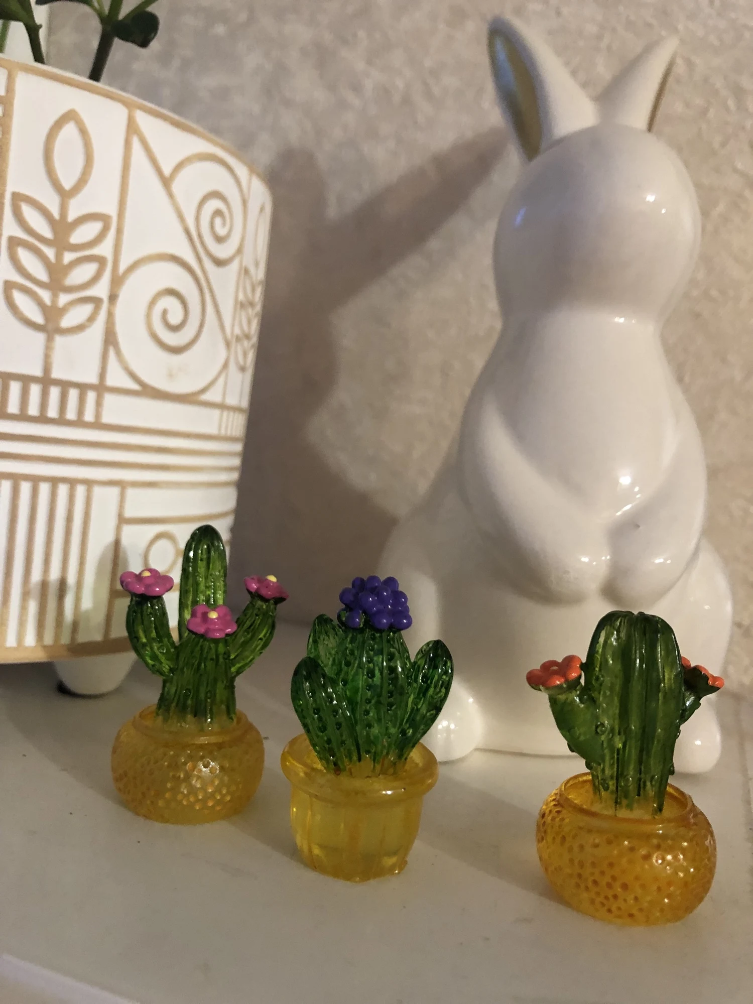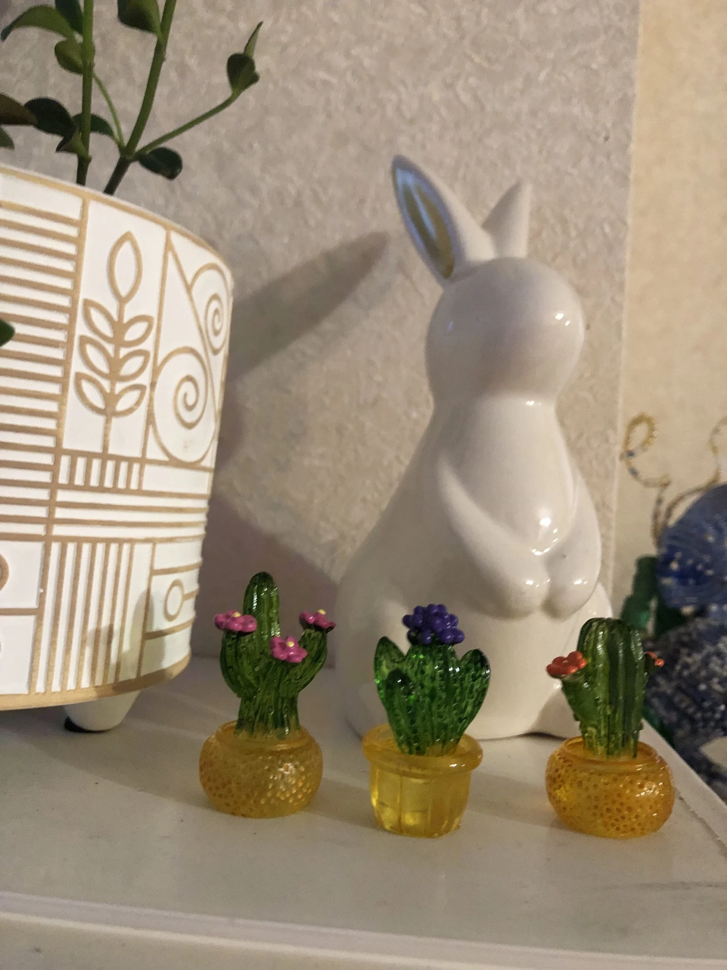 Миниатюрные кактусики в горшках. Это красотища! Все целое! заказано ещё. Благодарю продавца!