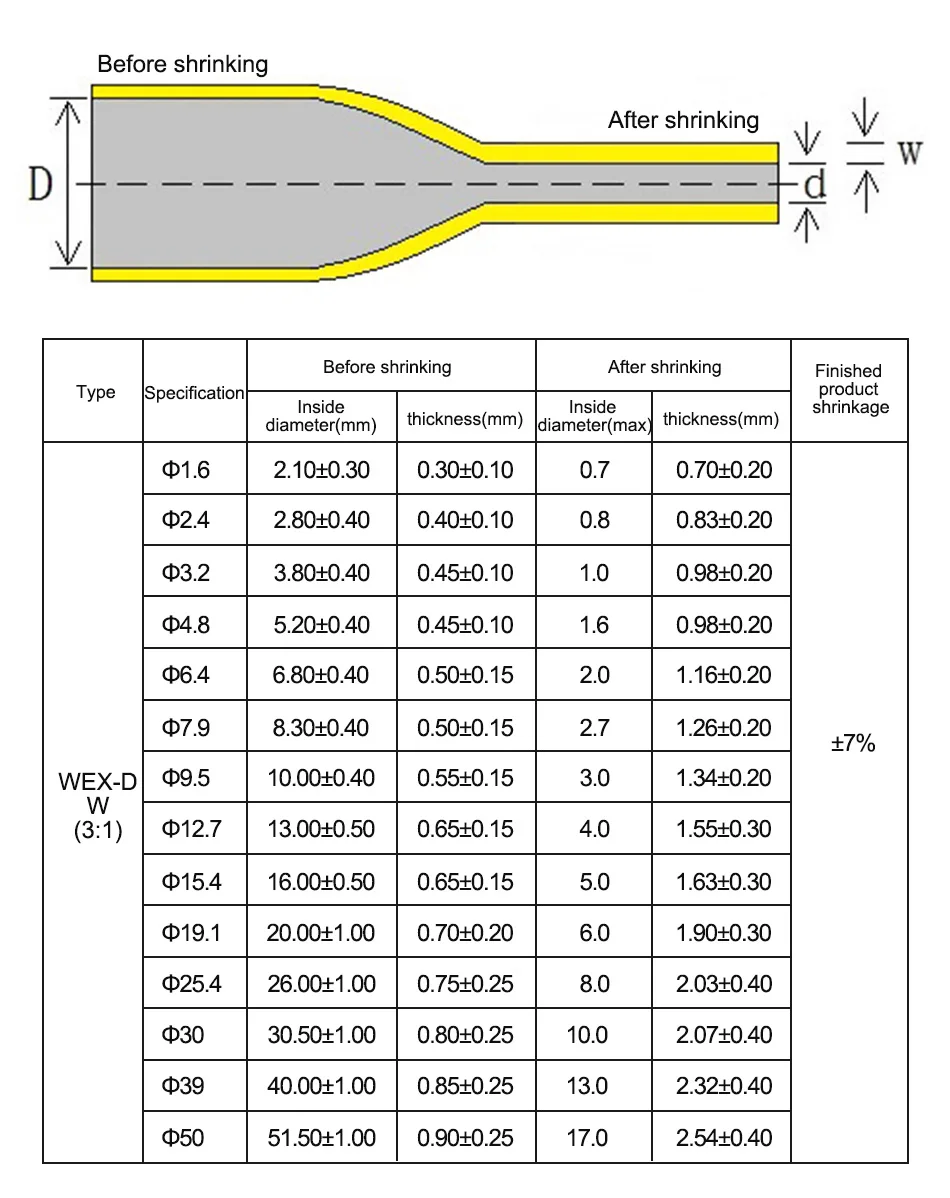 (1). 3:1 shrinkage ratio, suitable for irregular shape insulation and sealing.