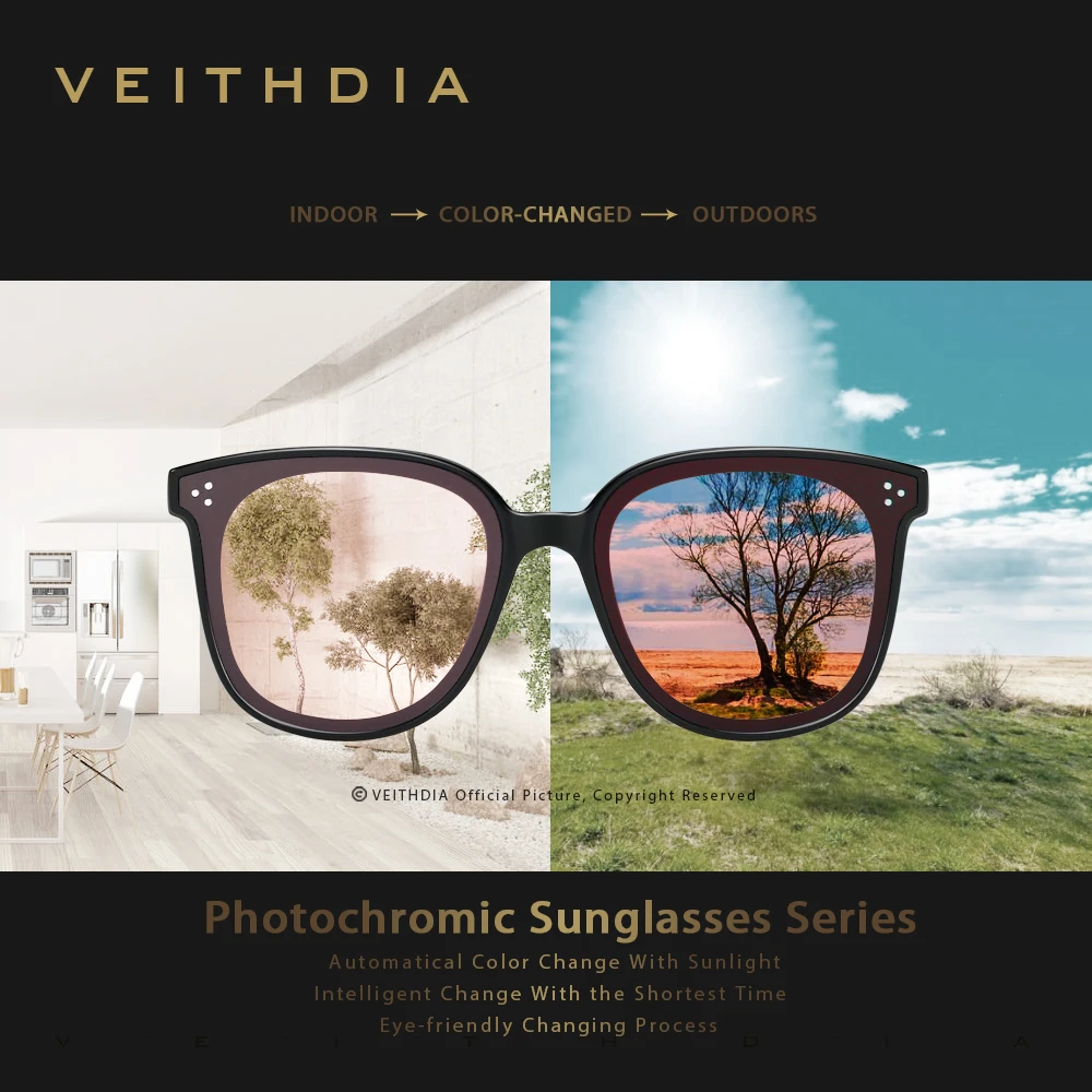 VEITHDIA Brand Square Photochromic Sunglasses Unisex Polarized Mirror Lens...