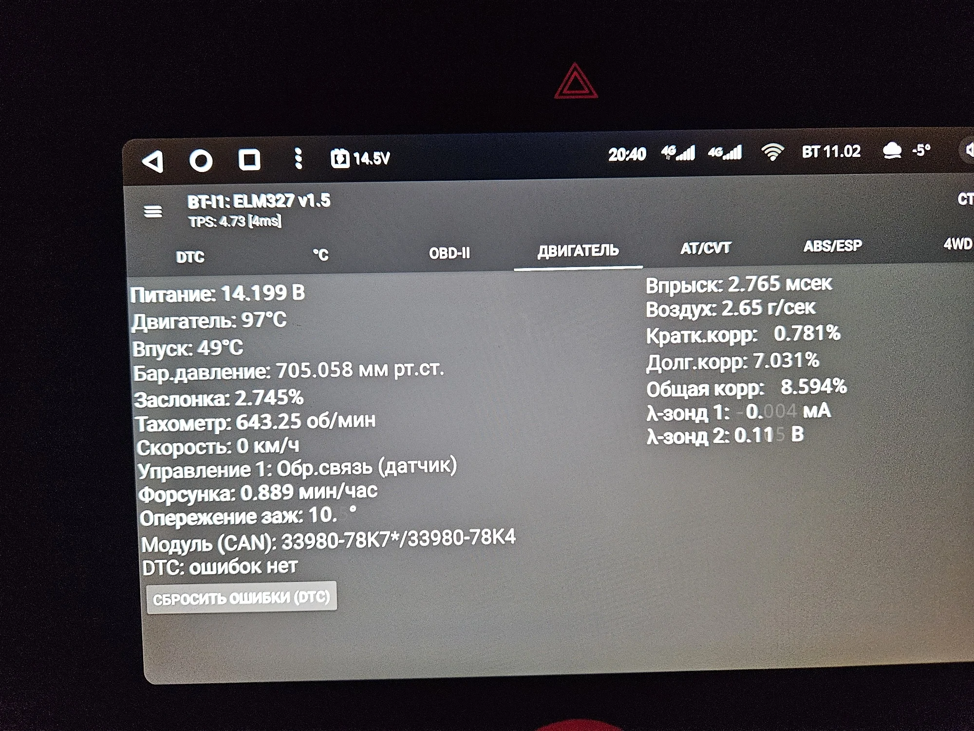 2. Очистите коды неисправностей и выключите MIL (индикатор проверки двигателя)