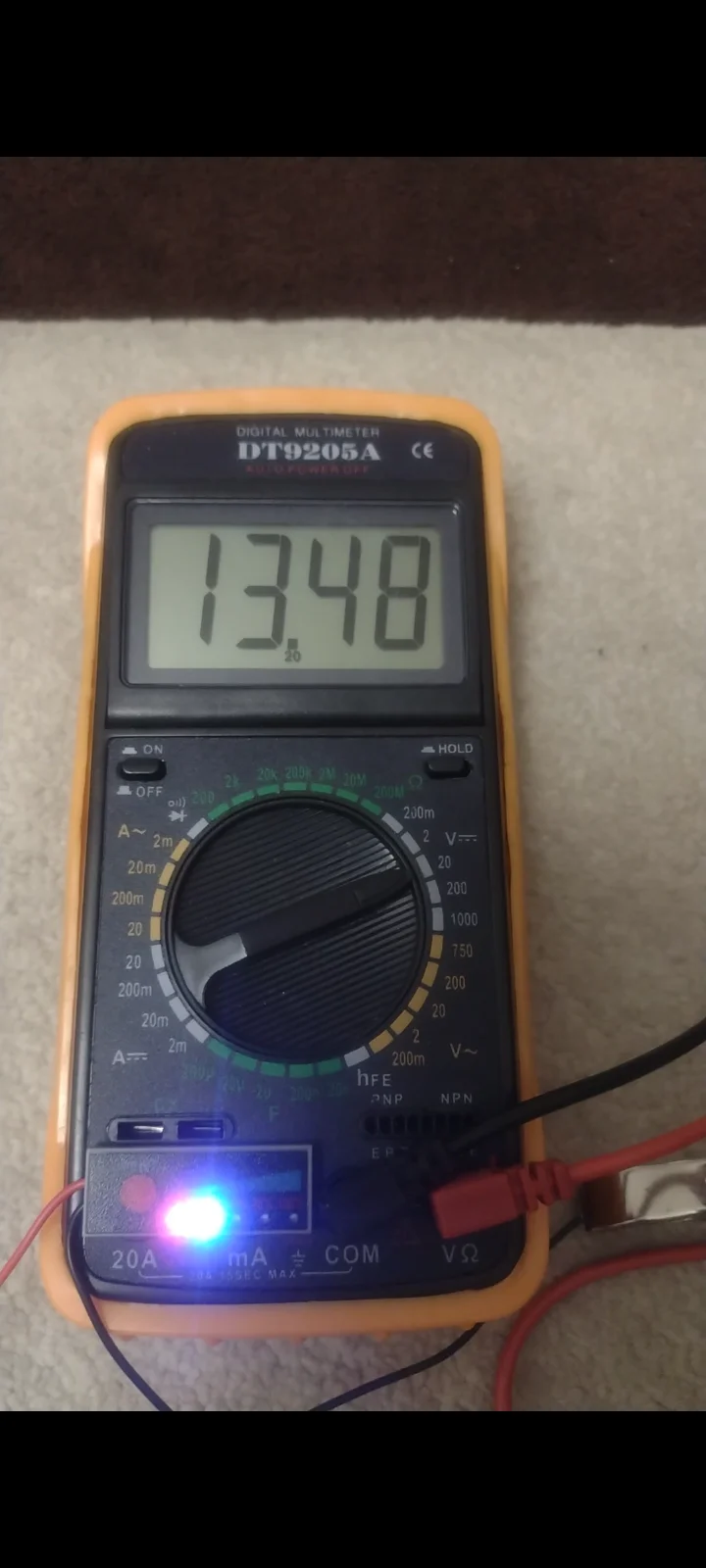 Когда напряжение аккумулятора превышает N×3,5 В, загорается третий синий индикатор.