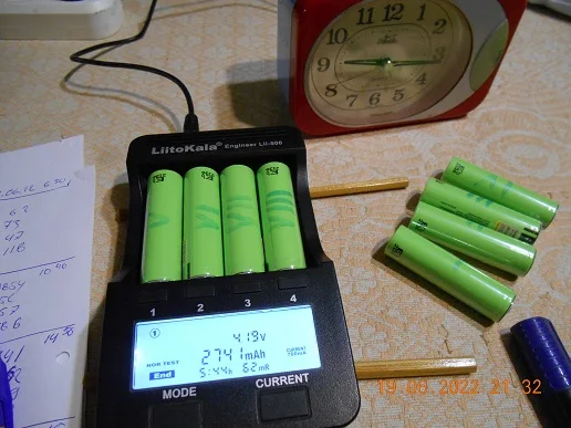 В Яросл. обл.-почти за 1 месяц.Последний из очень немногочисленных топ магазинов,торгующий "Литокалой" разочаровал. Уже не знаю, где закупаться.Решил попробовать желтые (появились недавно: как бы высокотоковые-10А, очень похожи на 26650 и 21700, по отзывам- емкость до 3500). Зеленые же раз от раза все дохлее - из 20 ни один не дотянул до 3000мА при полном тесте литокалой-500 на токе 0,7А.На фото 4 с мин емкостью и 1 с наибольшей. Так как покупал не себе, бодаться в лом,но и прощать не собираюсь.Обошлись по 150, ждал долго снижения, поднимались за 400. Магазин надо менять.Alexey B. 26 июня 2022