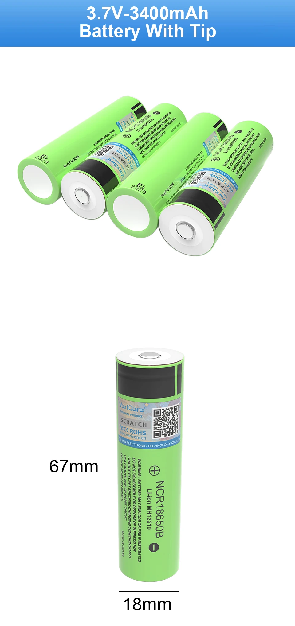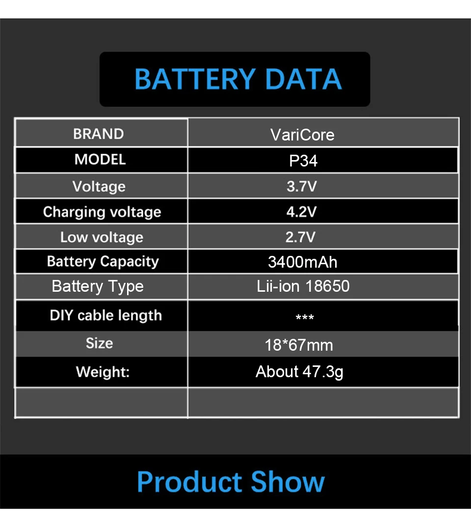 Новая литиевая аккумуляторная батарея VariCore NCR18650B 3,7 В, 3400 мАч, 18650 с заостренными батареями (без печатной платы)