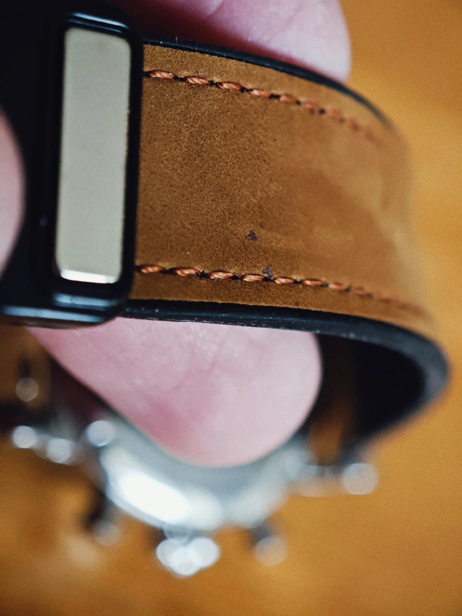 Очень, очень качественно изготовленный ремешок. Швы и стежки очень ровные, приятный на ощупь, хороший магнит. Я думаю изготовить более качественно уже невозможно. Я однозначно рекомендую к покупке!