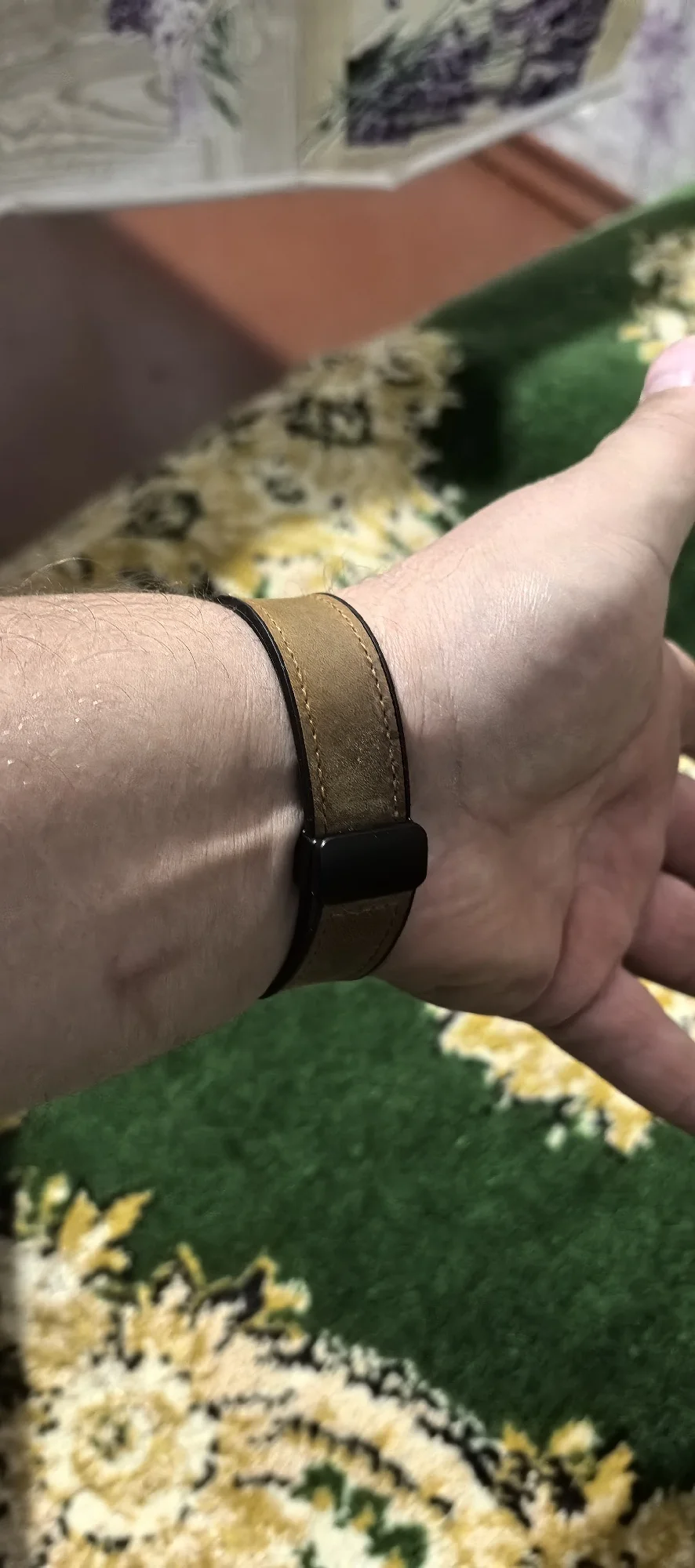 Долго присматривался к этому ремешку, считал что магнит не буде держать, но решил попробовать и не прогадал. Ремешок очень понравился, отрегулировал под запястье, отрезать не стал лишнее. На руке не чуствуется, сохнет быстро, дкржит отлично, открытий случайных не было. Единственный минус в месте строчки спустя время появился дефект, в принципе не мешает, но неприятно.EVGENIY K. 16 мая 2025
