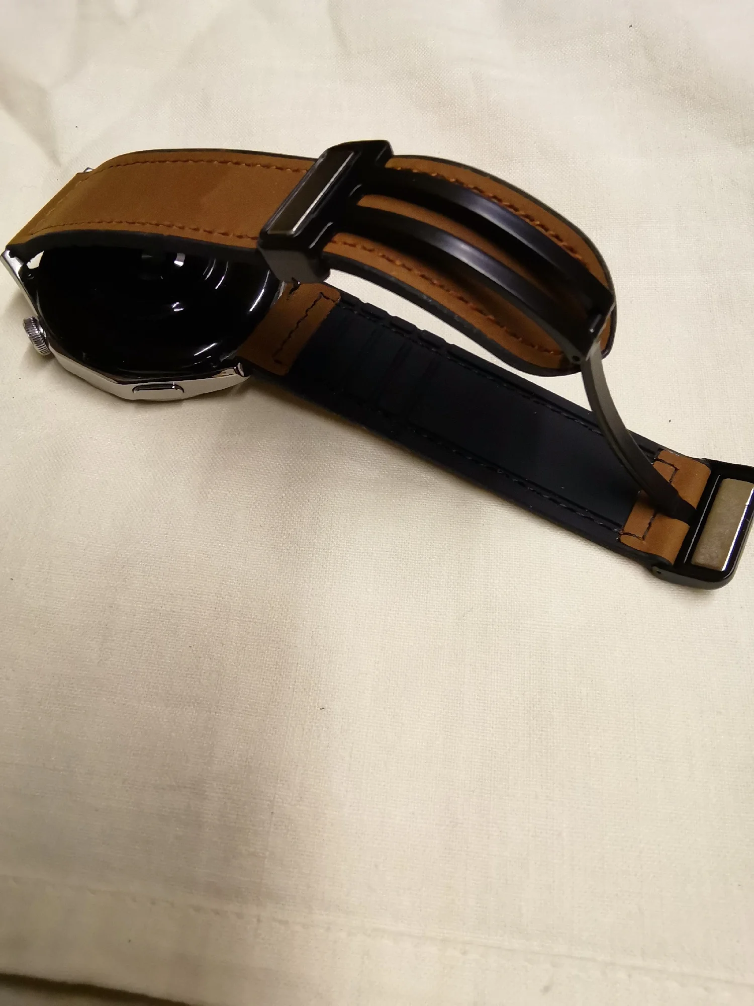 Кожаные ремешки с застежкой-бабочкой для Huawei GT3 Pro-это пропуск, если вы хотите обновить свои умные часы. Этот тип ремешка придает часам более элегантный и тонкий рулон, идеально подходящий для тех случаев, когда вы хотите, чтобы ваш Huawei выглядел больше как традиционные часы и менее спортивно. Самое лучшее в коже-это превосходное и комфортное ощущение на ощупь. Кроме того, со временем кожа адаптируется к вашему запястью, что делает его еще более комфортным. А брошь-бабочка не только крута своим дизайном, но и очень практично надевать и снимать часы без осложнений. Да, убедитесь, что ремешок совместим с GT3 Pro, потому что вы не хотите удивляться. И хотя кожаный ремешок может быть немного дороже, чем силиконовый или нейлоновый, он того стоит для Классного прикосновения, которое он дает вашим часам.