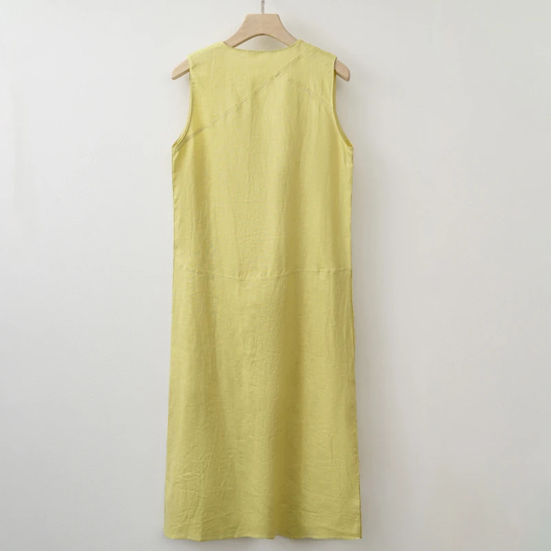 2025 летнее женское однотонное льняное модное платье без рукавов с v-образным вырезом и разрезом, платье-майка