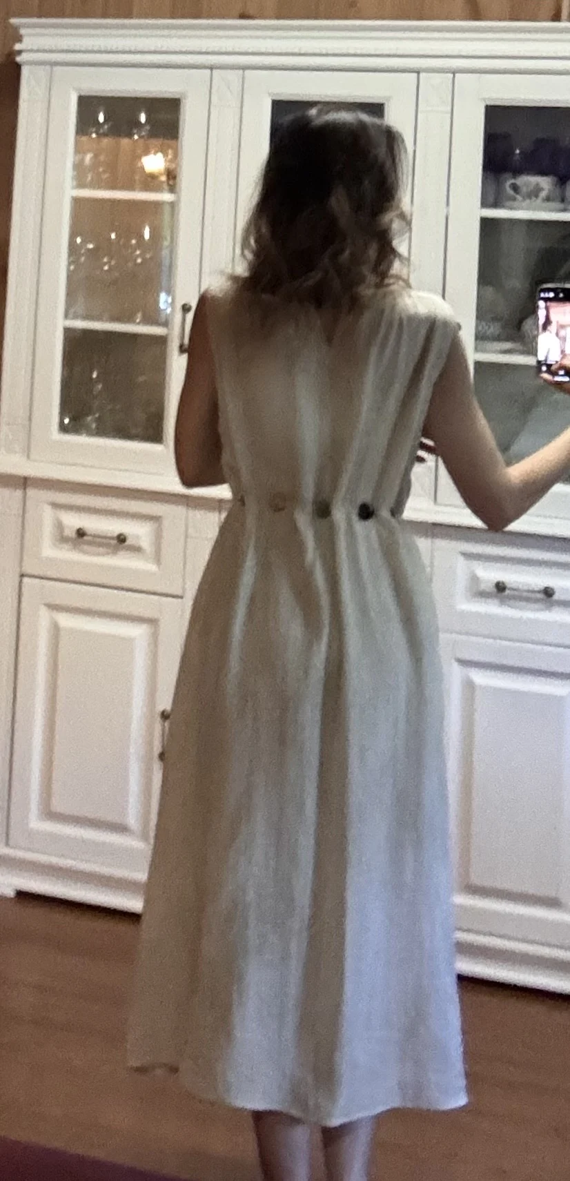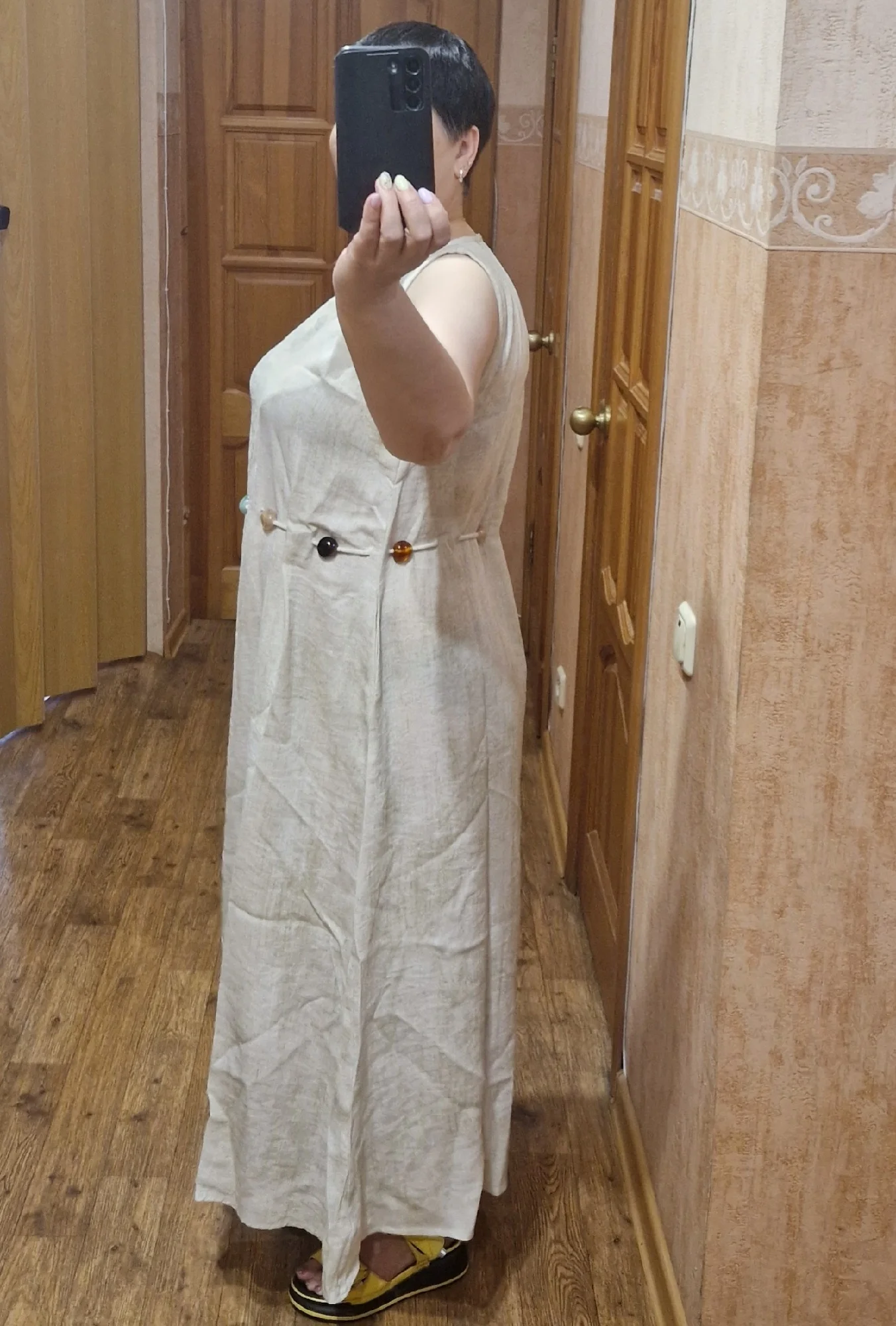 Заказ пришёл за две недели, упакован в пакет пупырку. Платье качественное, пошив и ткань на высоте. Материал лён, не лёгкий и шелковистый, приятный к телу. Оригинальная фурнитура на поясе, все камушки разного цвета. Мои параметры рост 162, ОГ 105, ОТ 85, ОБ 105. Взяла М и не жалею, ни больше ни меньше не нужно. Очень довольна покупкой, рекомендую товар и продавца.