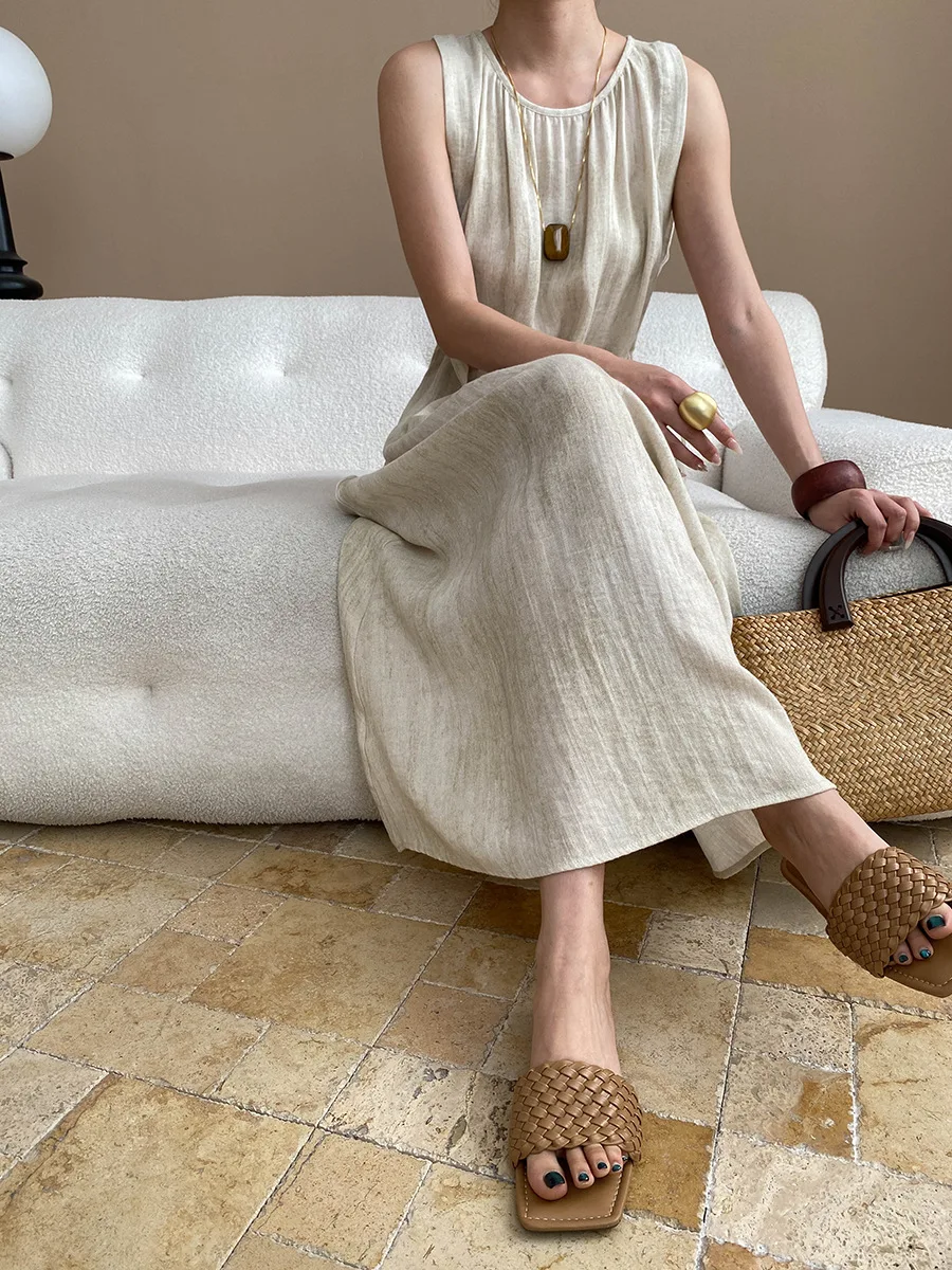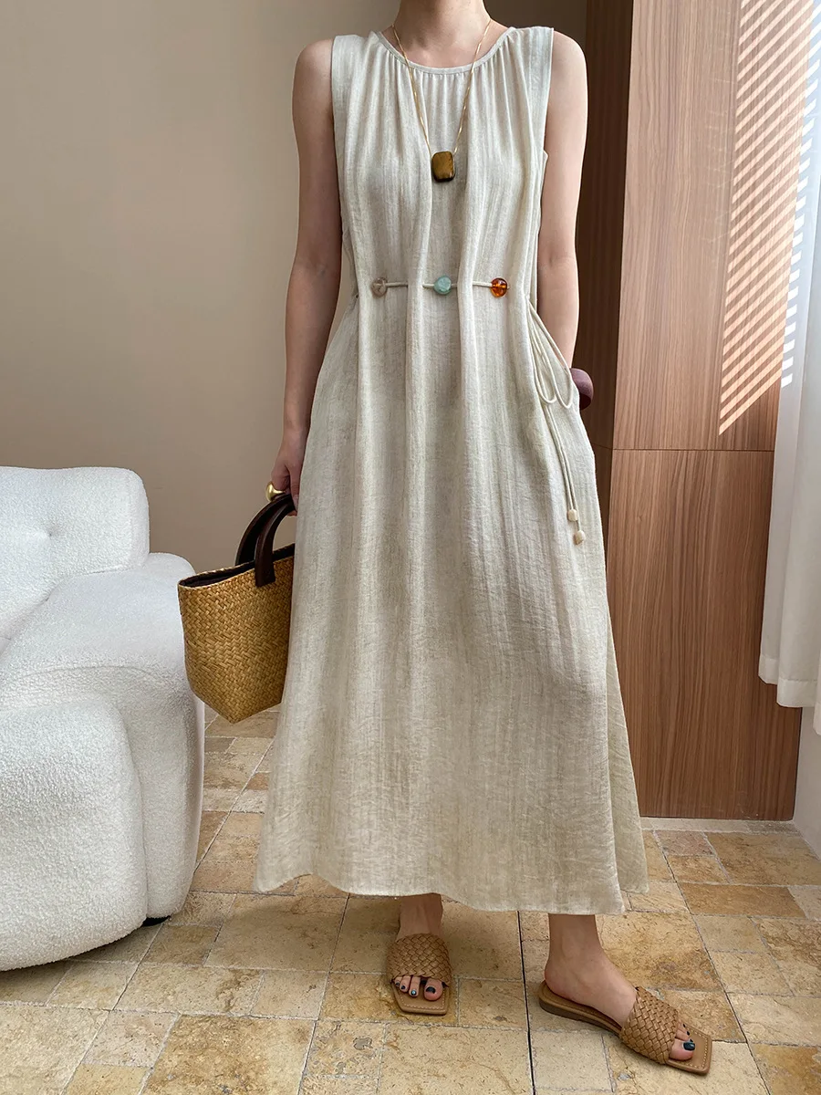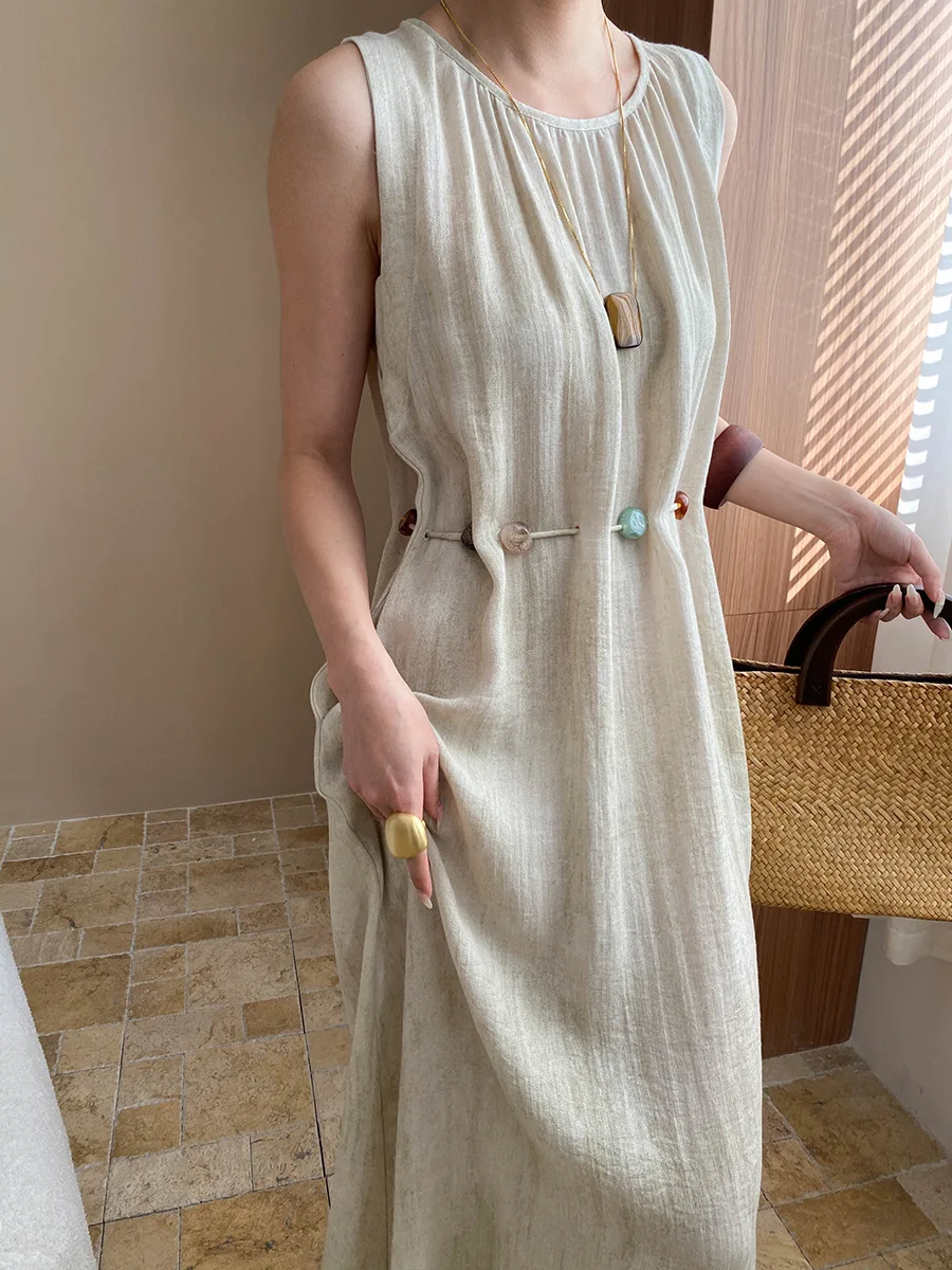 Spring and summer women's casual solid color round neck sleeveless loose dress
